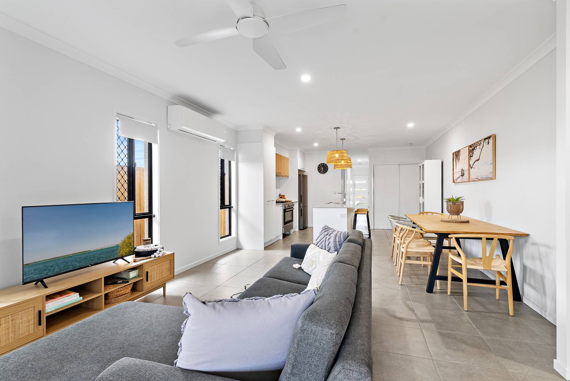 - Open plan kitchen, living and dining area