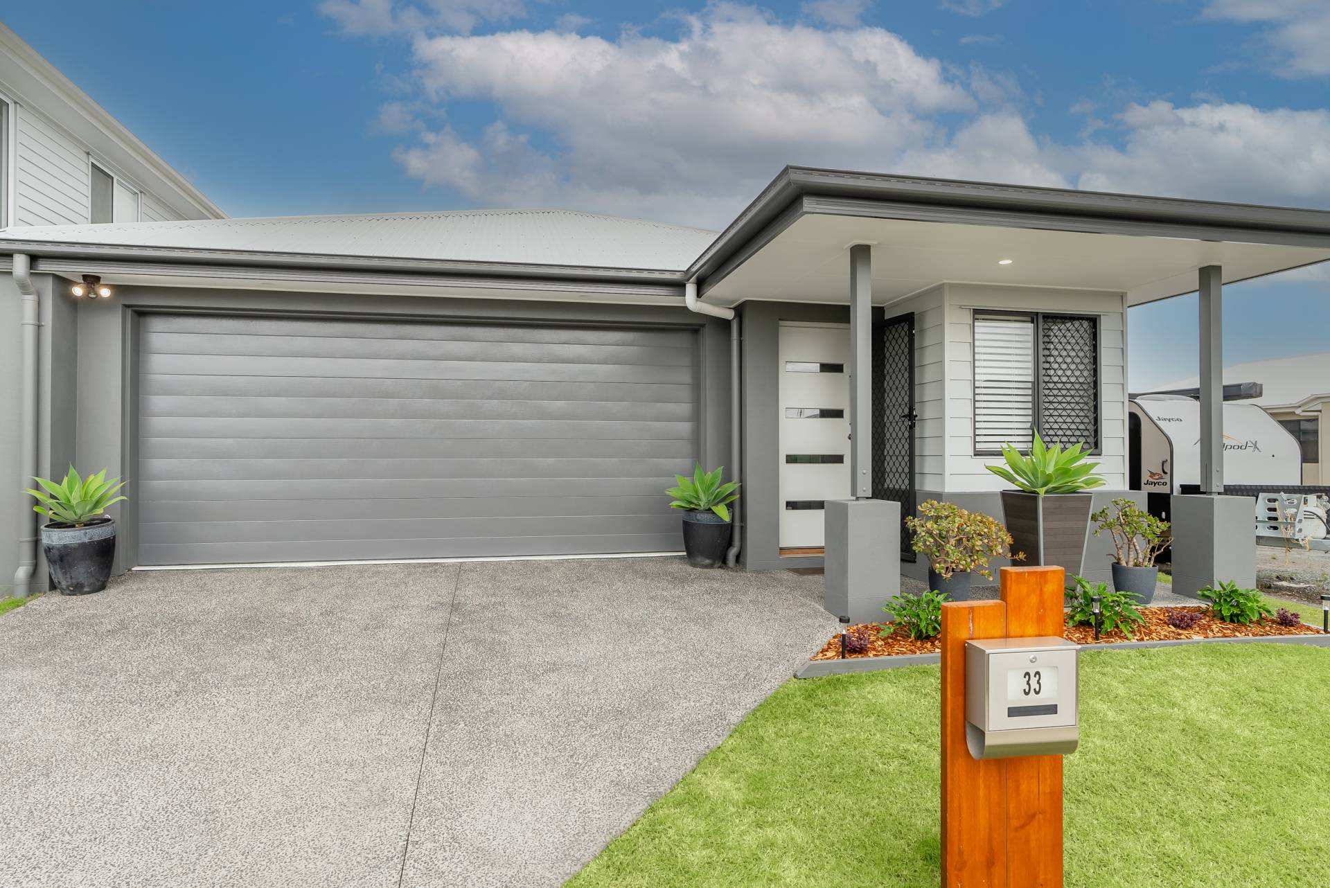 - Landscaped gardens including turf, stone and front gardens