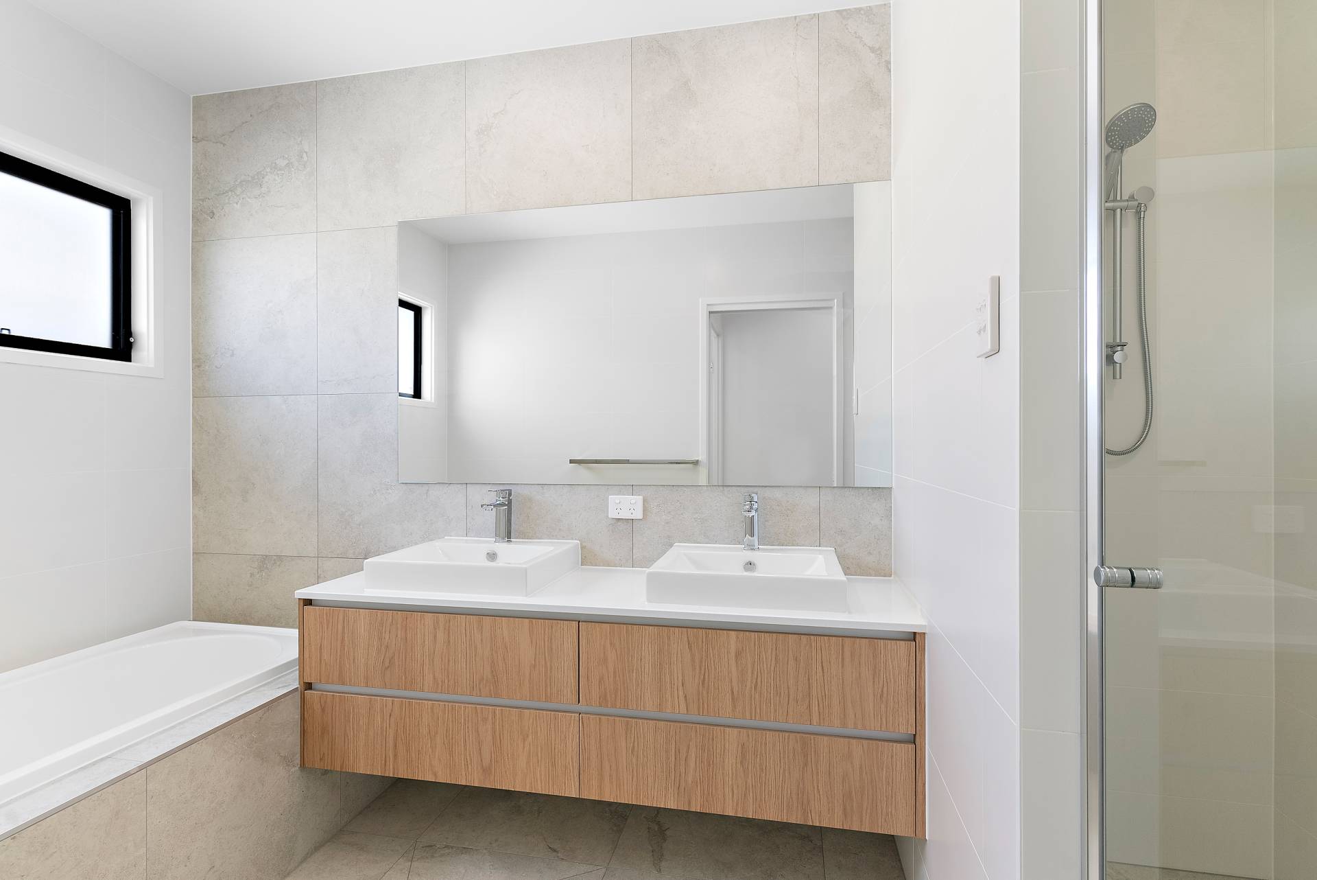 - Well-appointed main bathroom with shower, bath, floor-to-ceiling tiles, double vanity and seperate WC