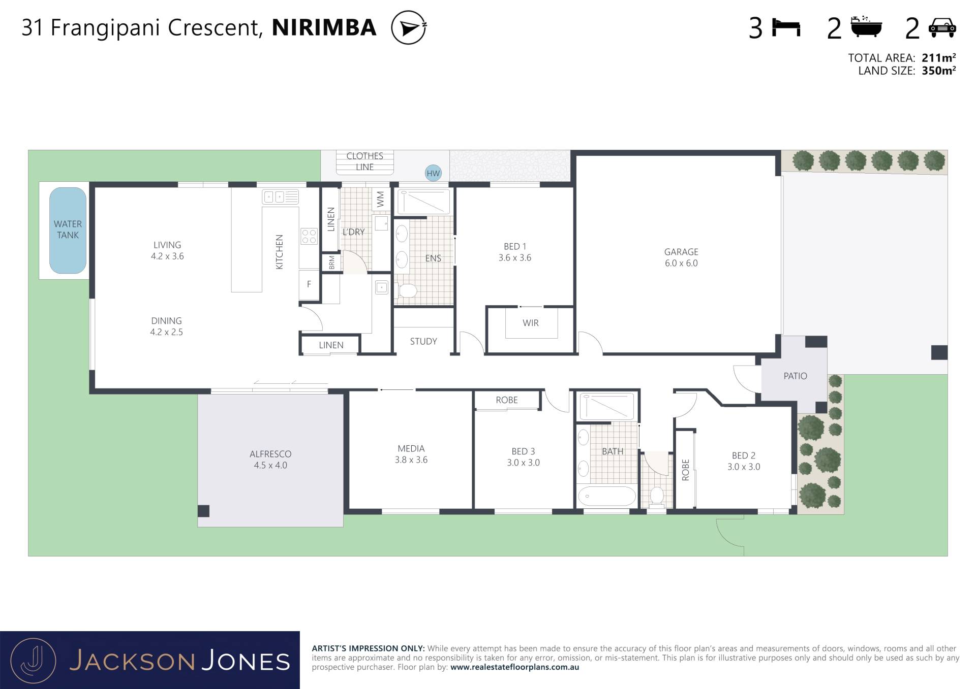 3 bedrooms | 2 bathrooms | 2 car garage + media