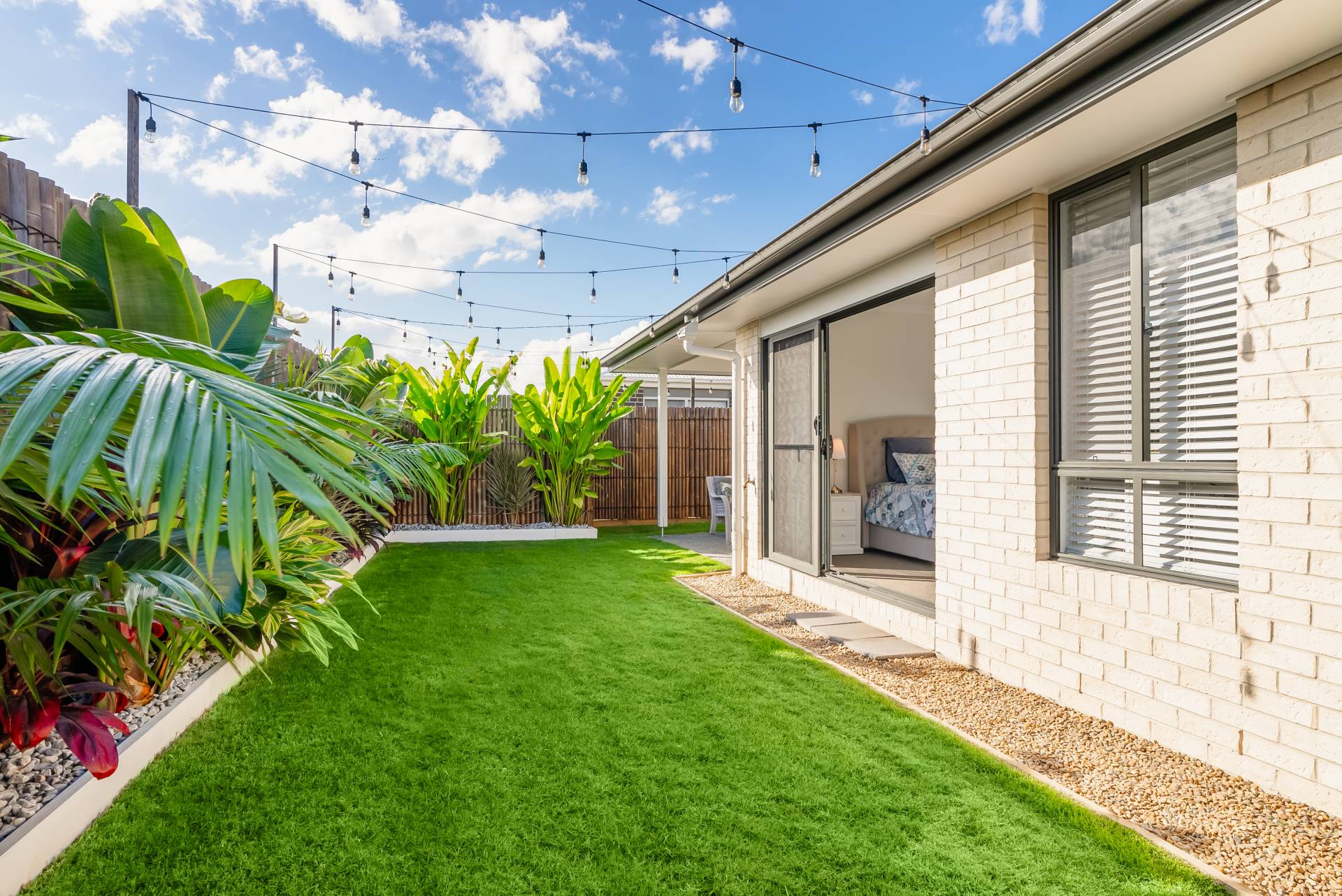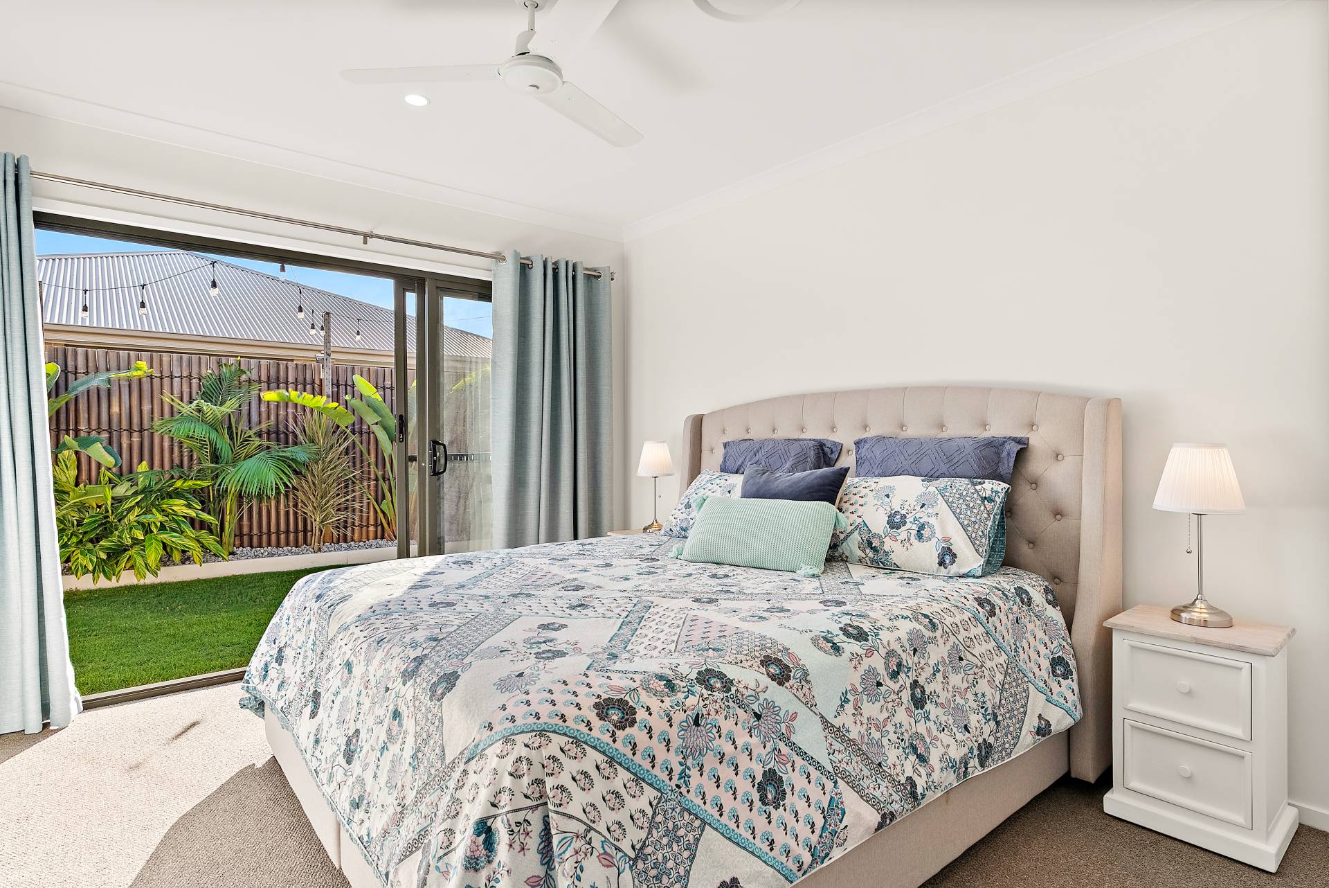 - Primary suite with three-stacking doors opening onto the beautiful garden, ensuite, and walk-in robe