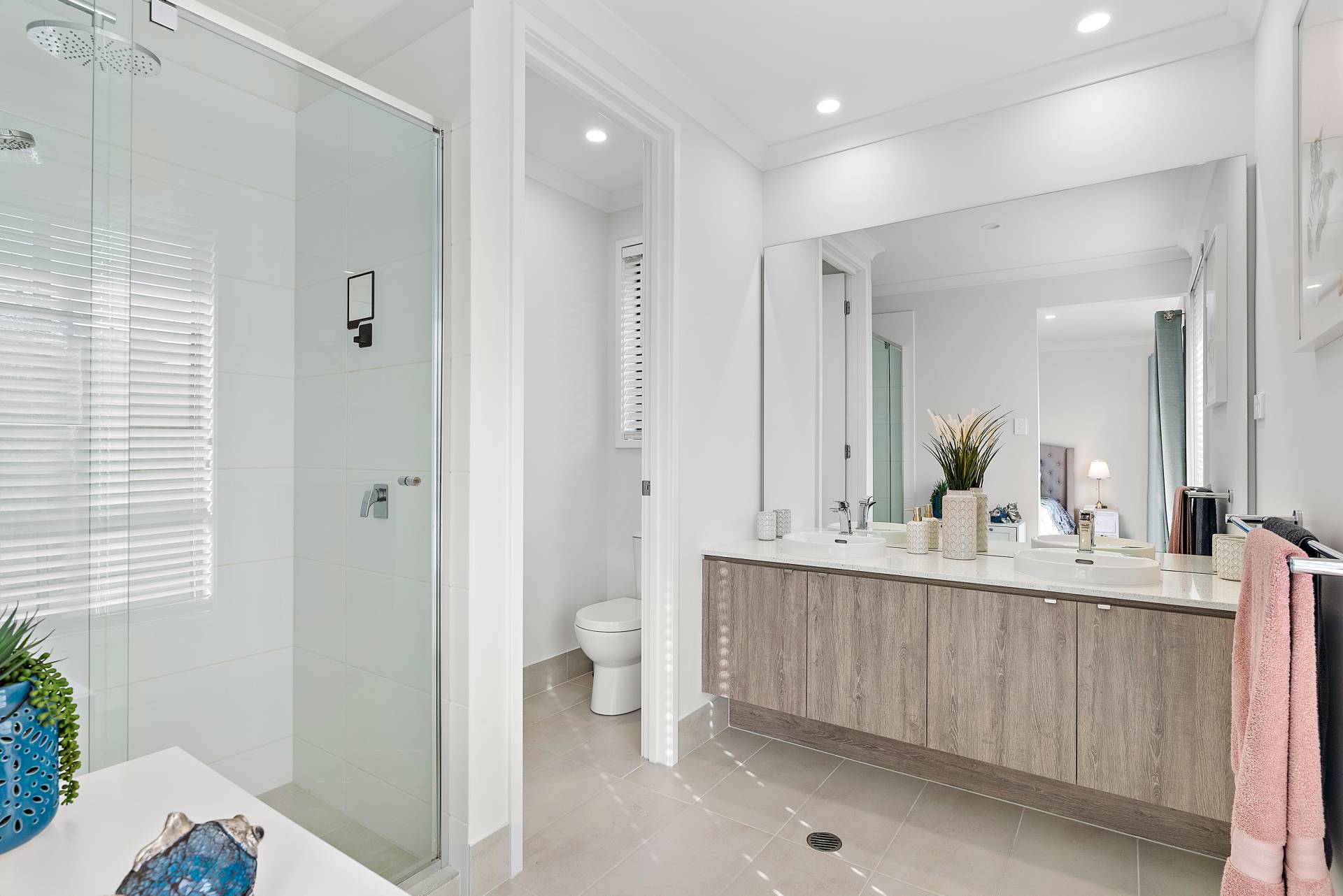 - Ensuite bathroom with natural light, double vanity, shower, and separate toilet