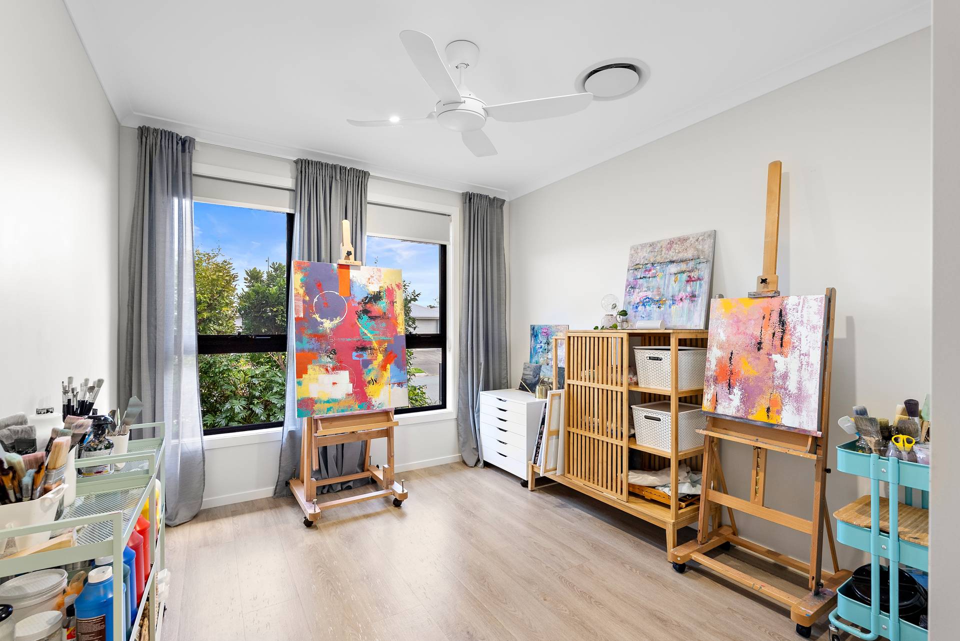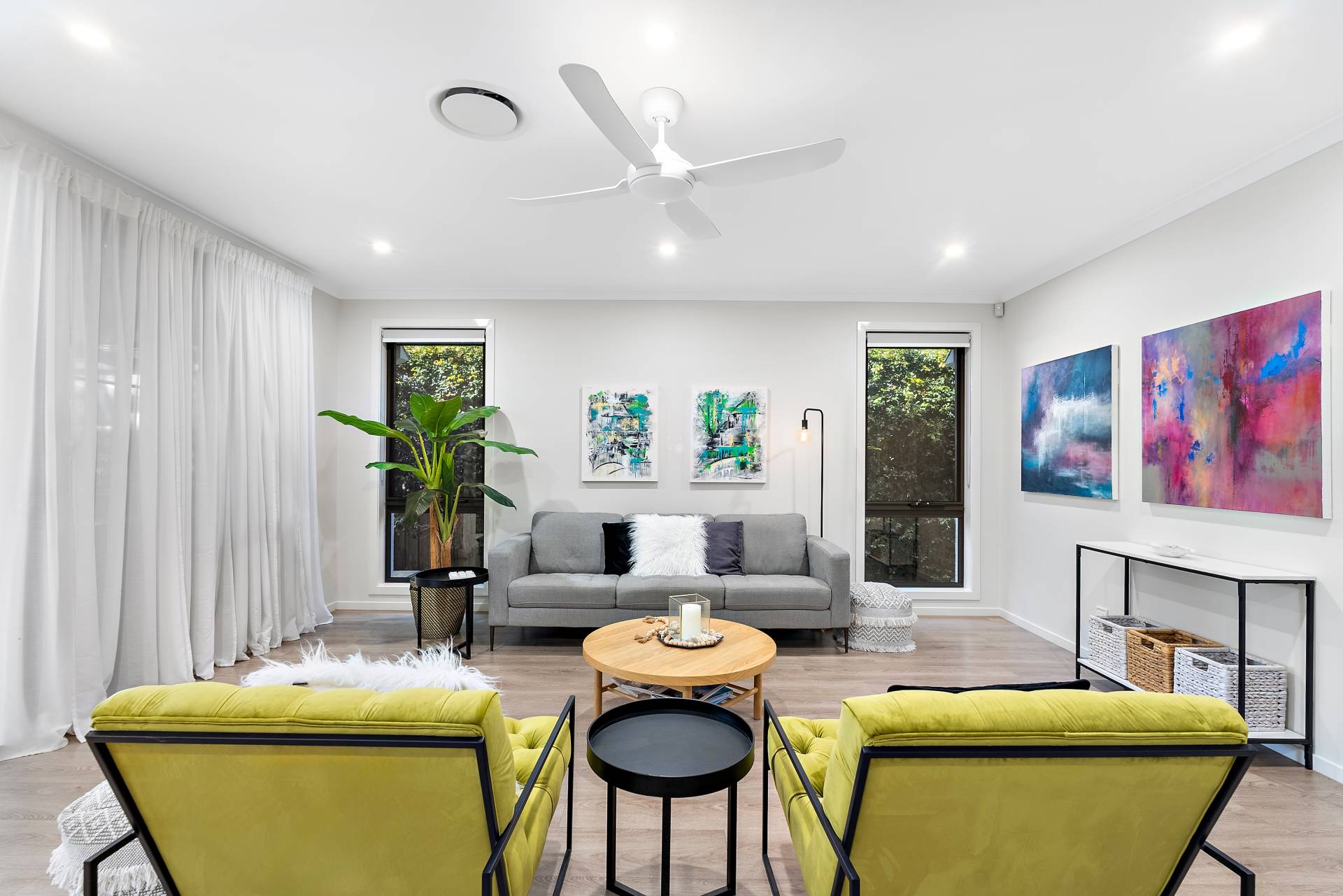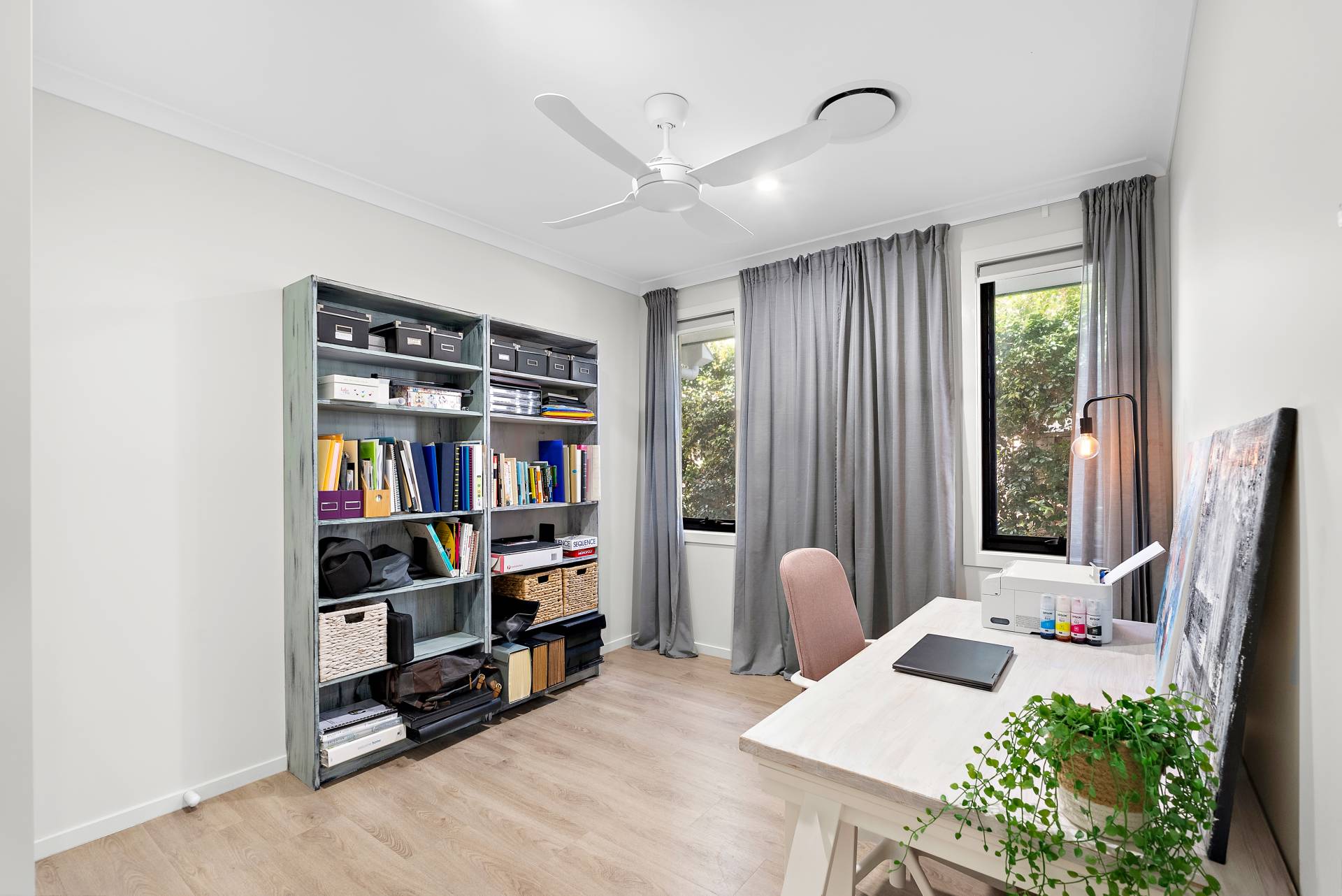 - Three generously sized bedrooms off the third living space, each with built-in wardrobes and ceiling fans