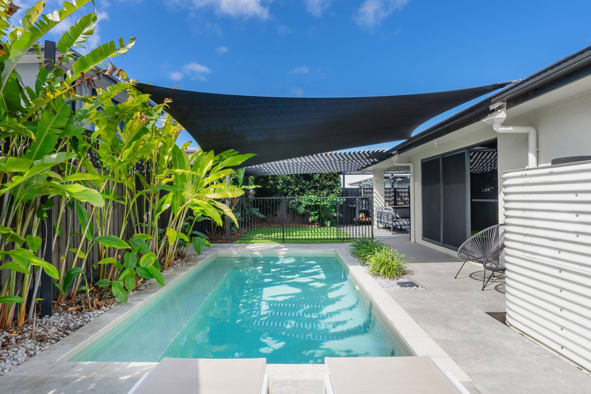 Courtyard Fenced Outdoor entertainment area in-Ground Pool Ducted vacuum system Water Tank Solar Panels