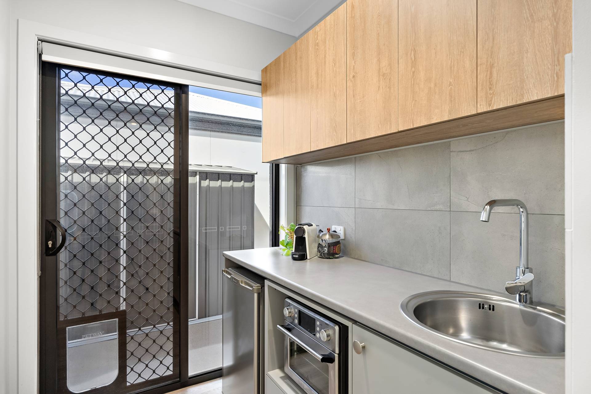 - Kitchenette and sliding glass door (for separate access via side gate), making this space ideal for children or guests