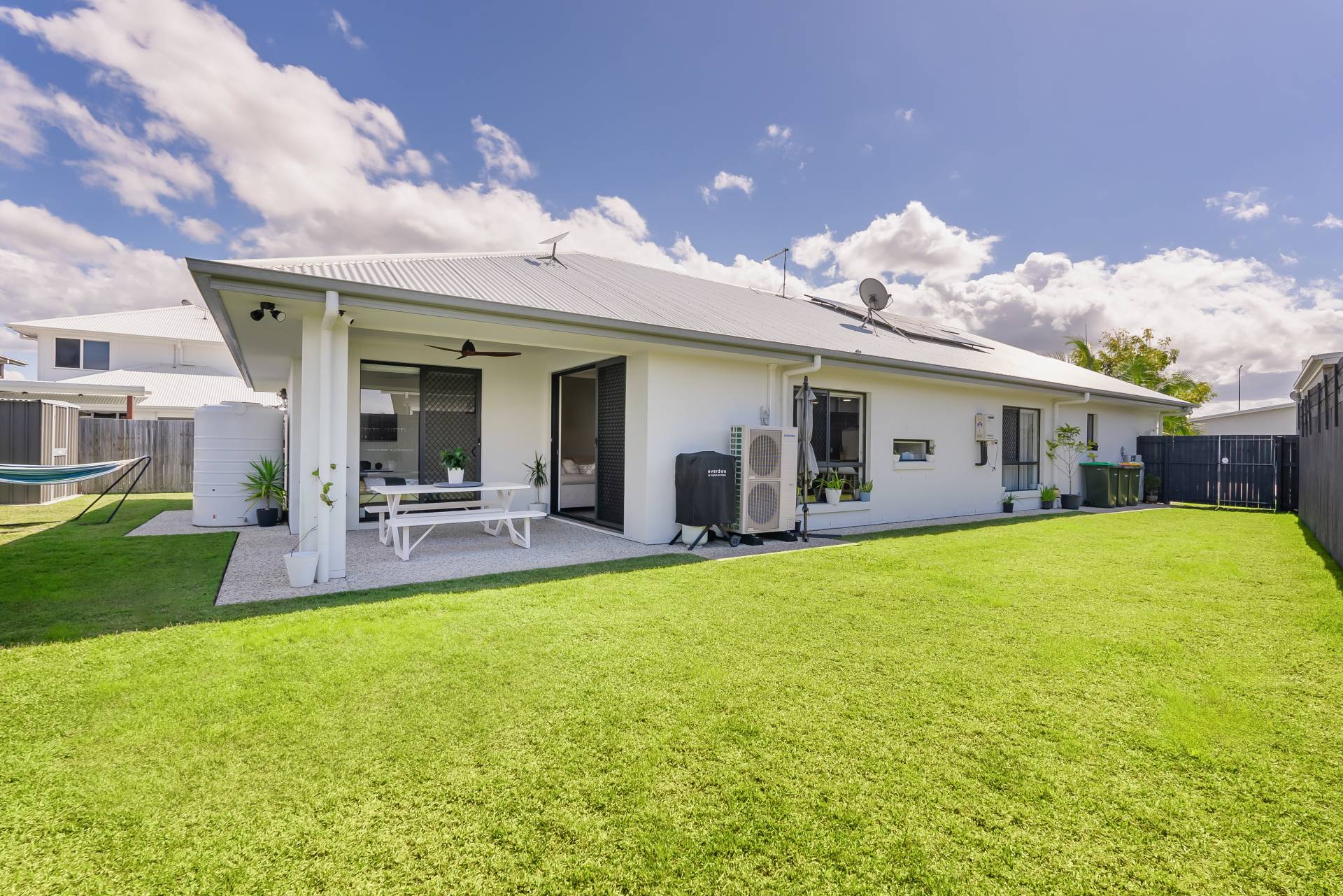 Fenced Outdoor entertainment area Water Tank Solar Panels