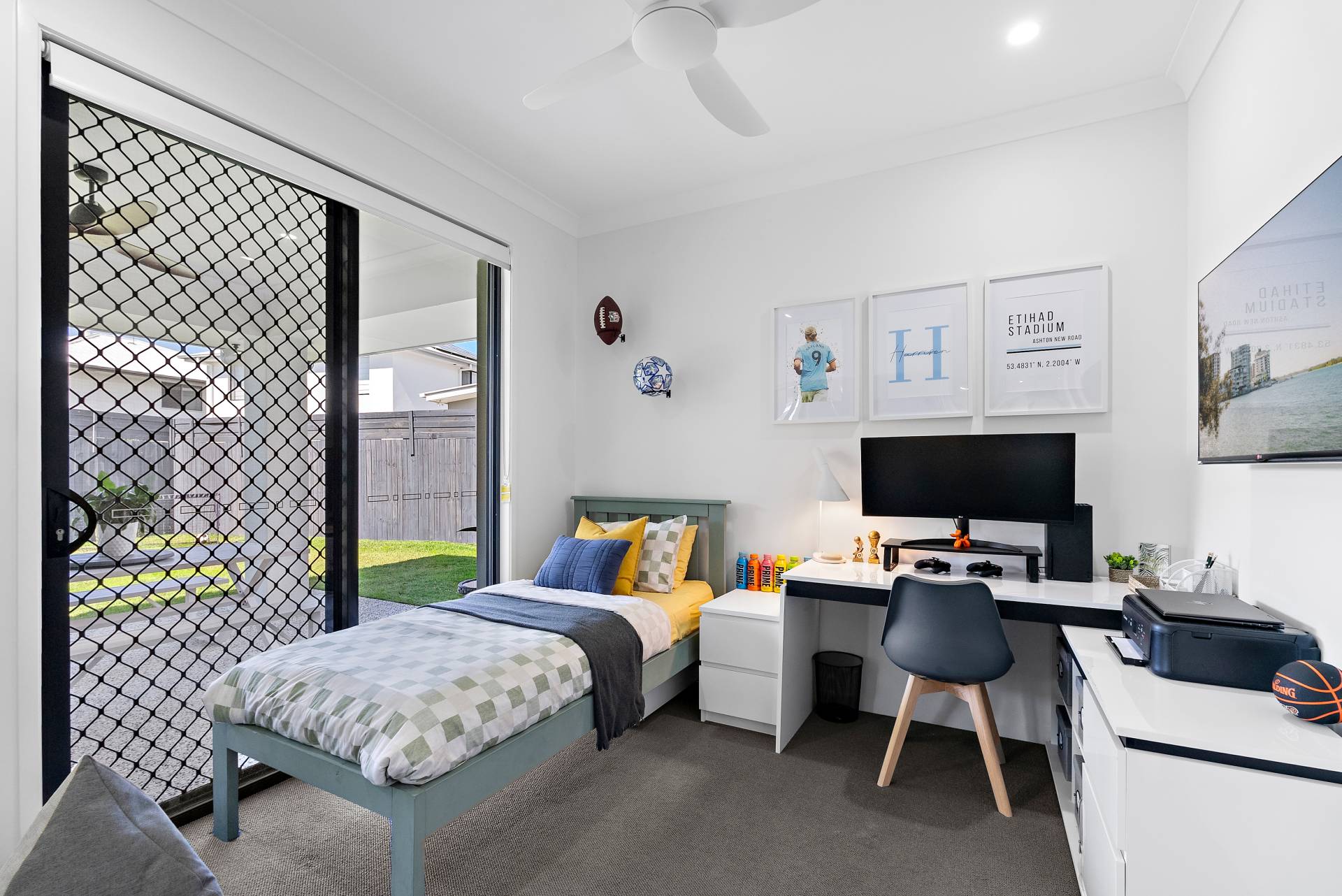 “Alexa, switch to movie night!” The dedicated media room is the ideal setting for family movie nights, hosting friends, or providing a children's retreat. This remarkable home truly has it all. Five generously sized bedrooms are each equipped with built-in wardrobes and ceiling fans for optimal comfort. The luxurious master suite is a true retreat with a lush garden view. VJ paneling frames this haven of relaxation, complemented by bedside pendant lighting. Complete with an ensuite bathroom featuring dual basins for added convenience and a walk-in robe, you'll never want to leave!