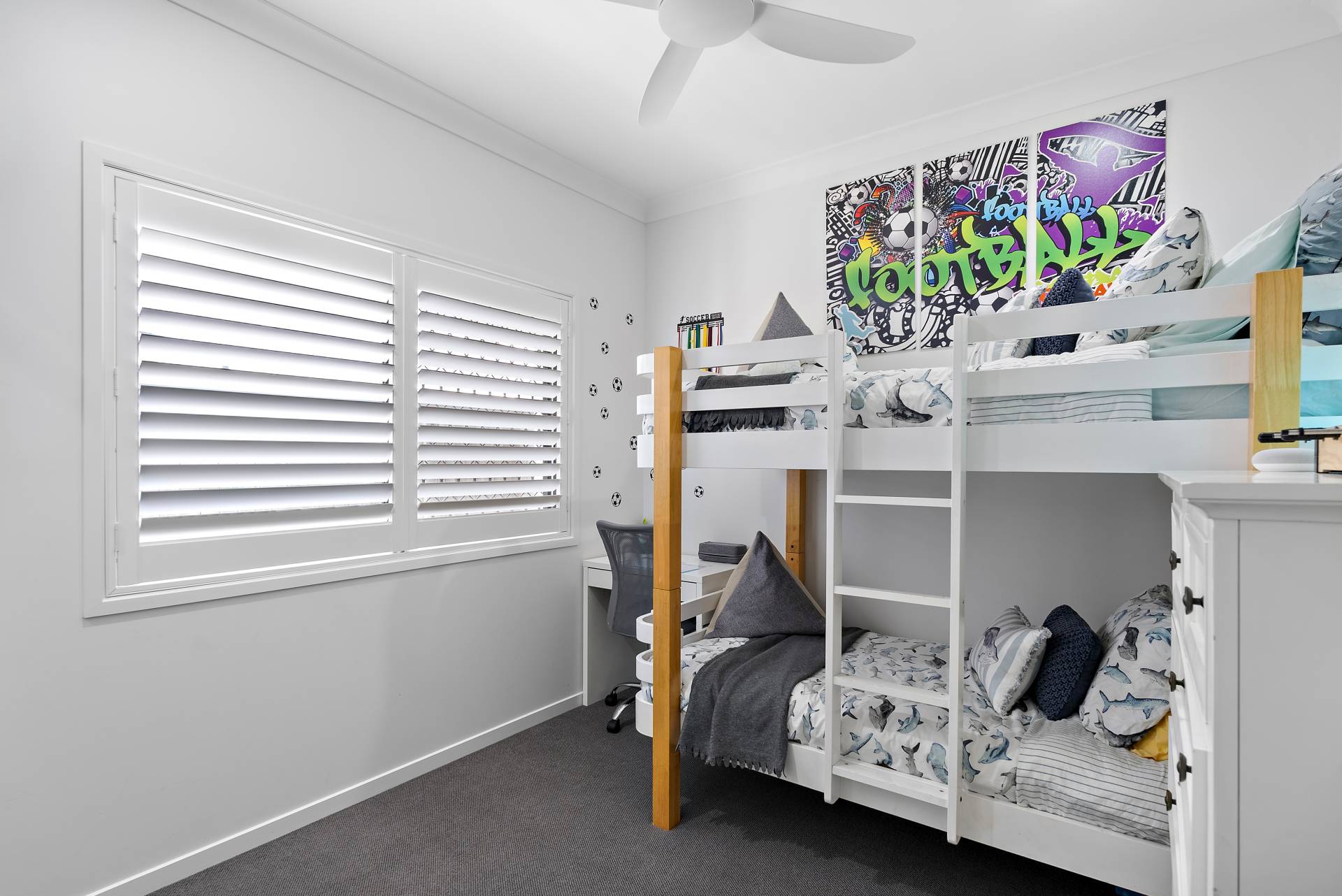 - Five generously sized bedrooms, each with built-in wardrobes and ceiling fans. Bedroom five features a sliding door opening onto the alfresco area