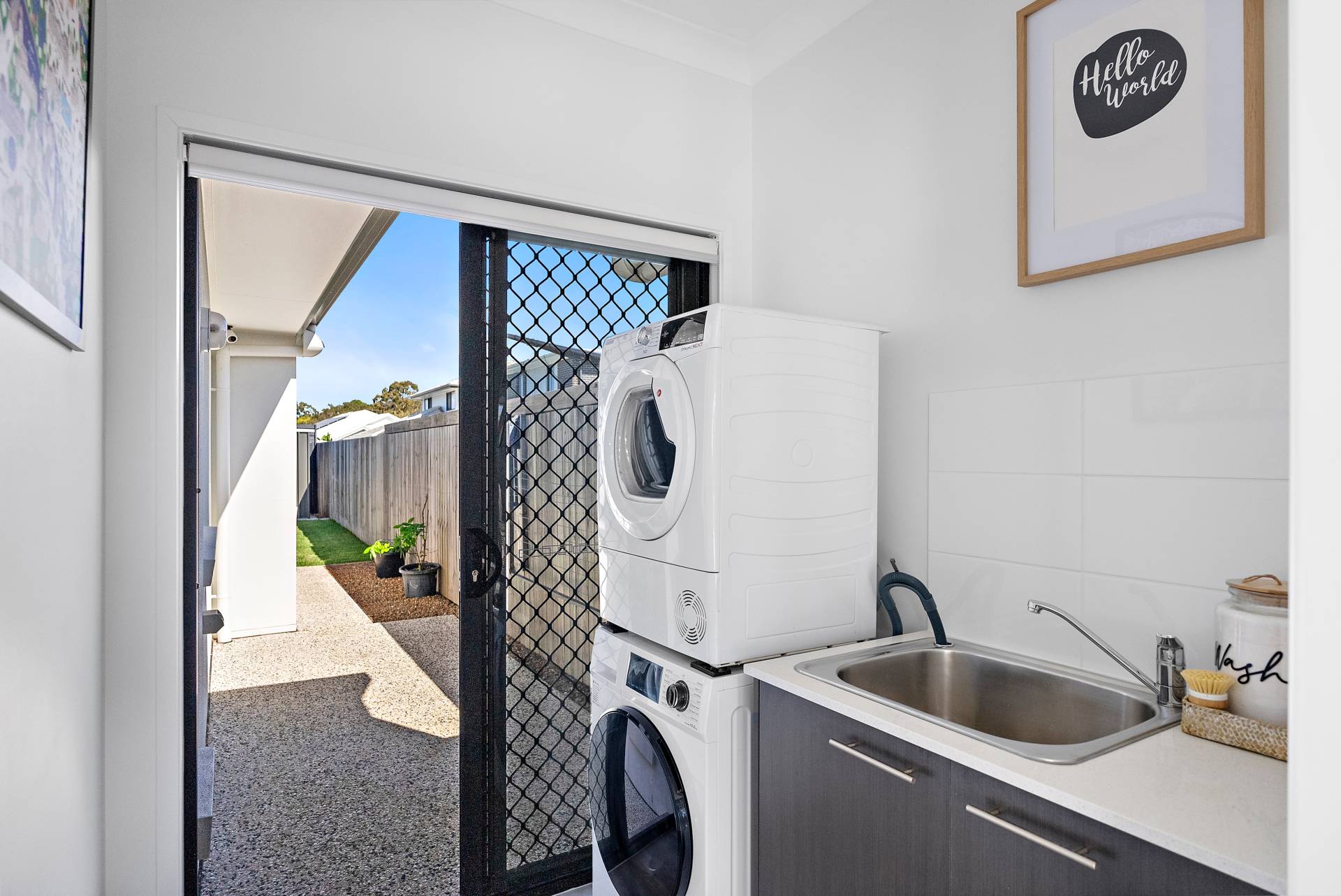 - Laundry with direct access to the outdoors, leading to the clothesline and side of the house