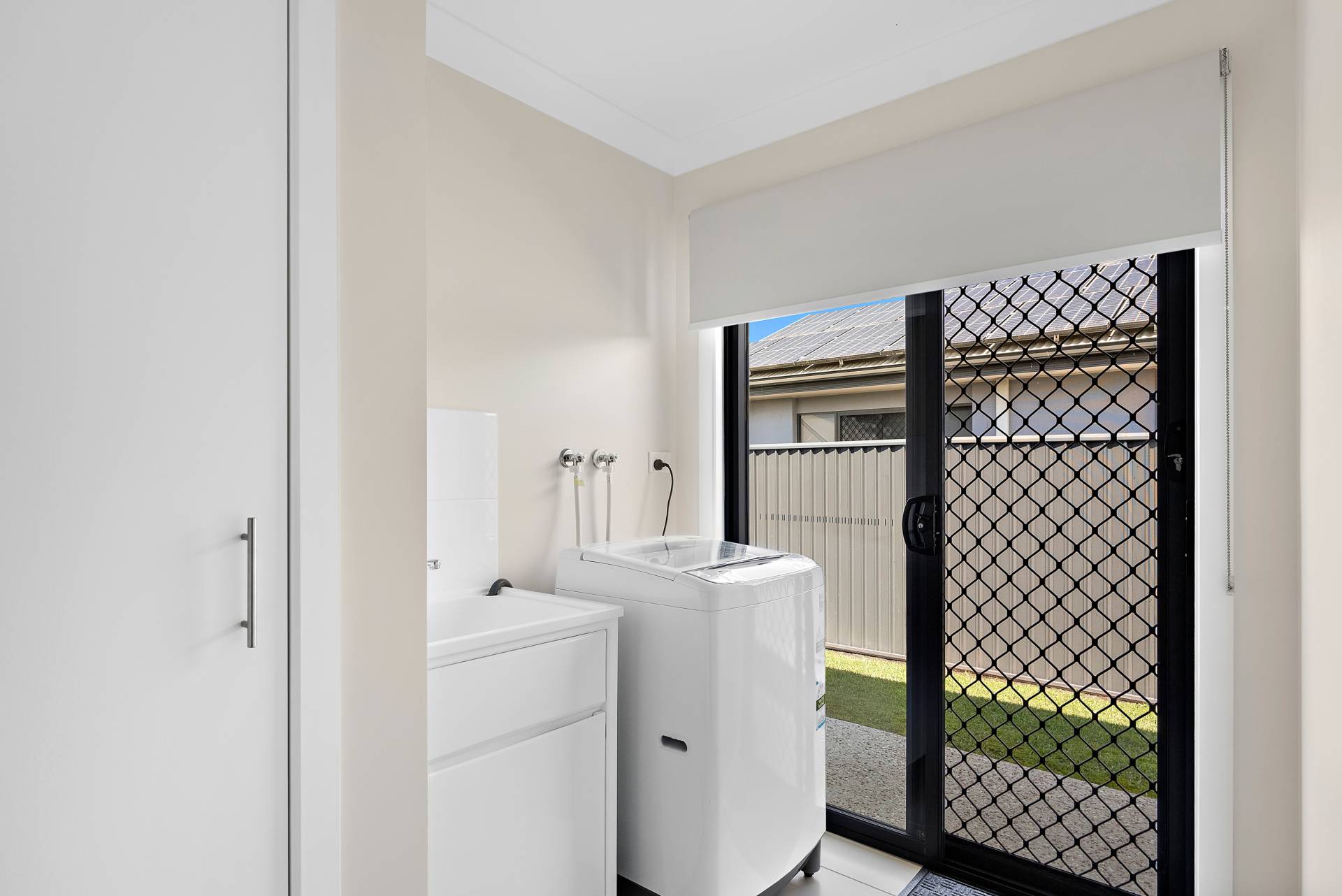 - Laundry equipped with direct access to clothesline, cabinetry, and ample storage