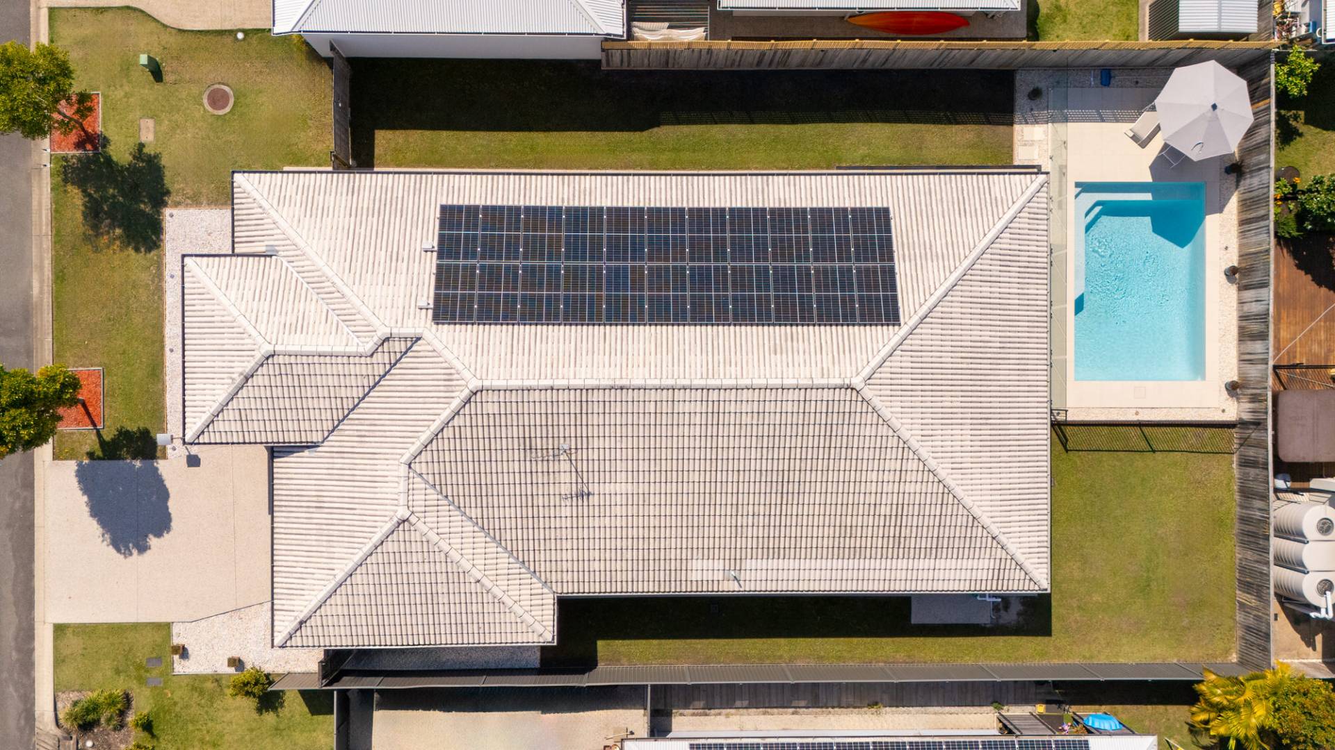 Fenced Outdoor entertainment area in-Ground Pool Solar Panels
