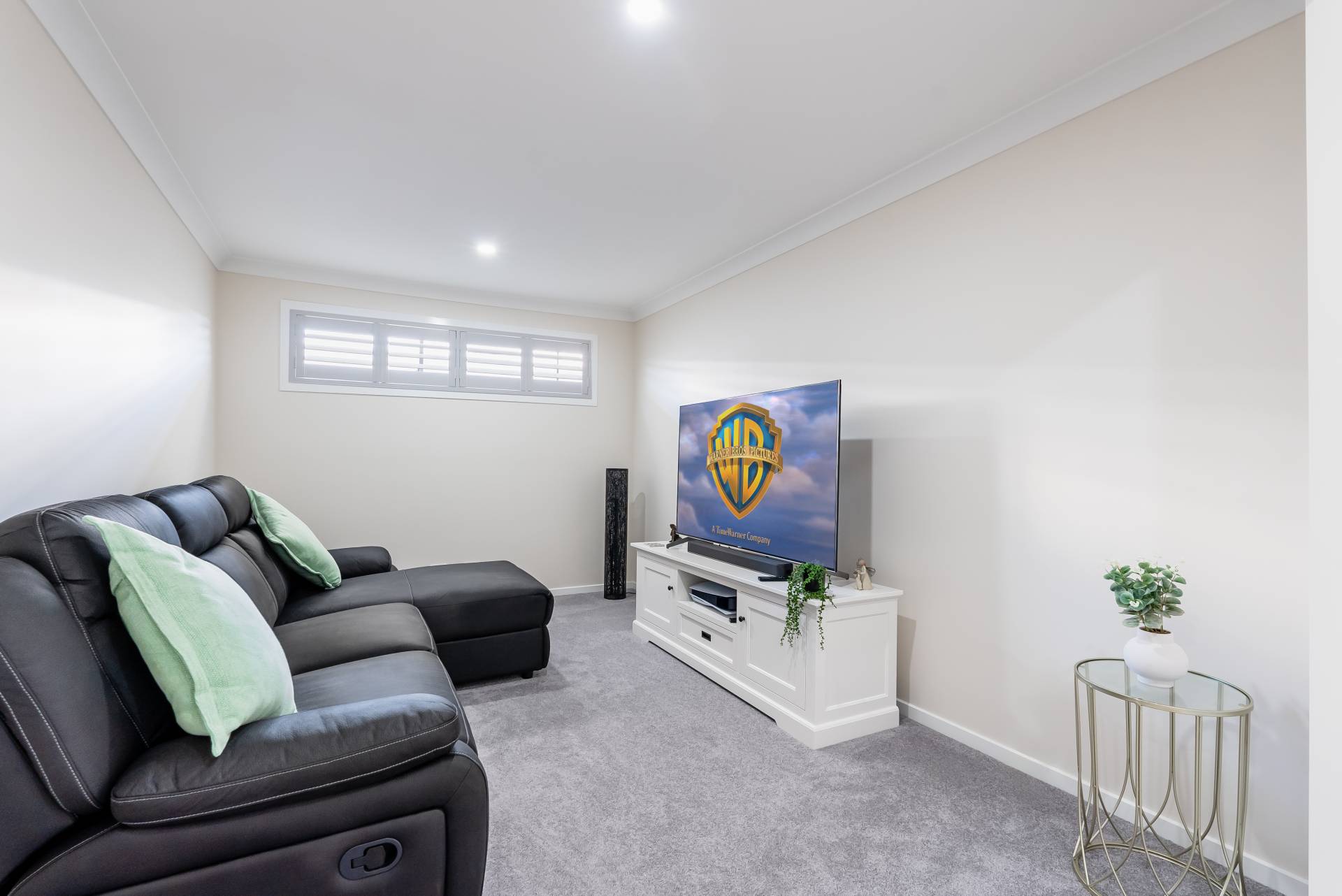 A cozy media room awaits your family movie nights or a space for the adults to unwind. The dedicated children's retreat space is perfectly situated with easy access to the three further bedrooms, each complete with built-in wardrobes and ceiling fans. Also sectioned off in this wing of the house, the main bathroom is designed for convenience with both a bath and shower, plus a separate toilet. The primary suite is a true sanctuary featuring a walk-in robe and ensuite.