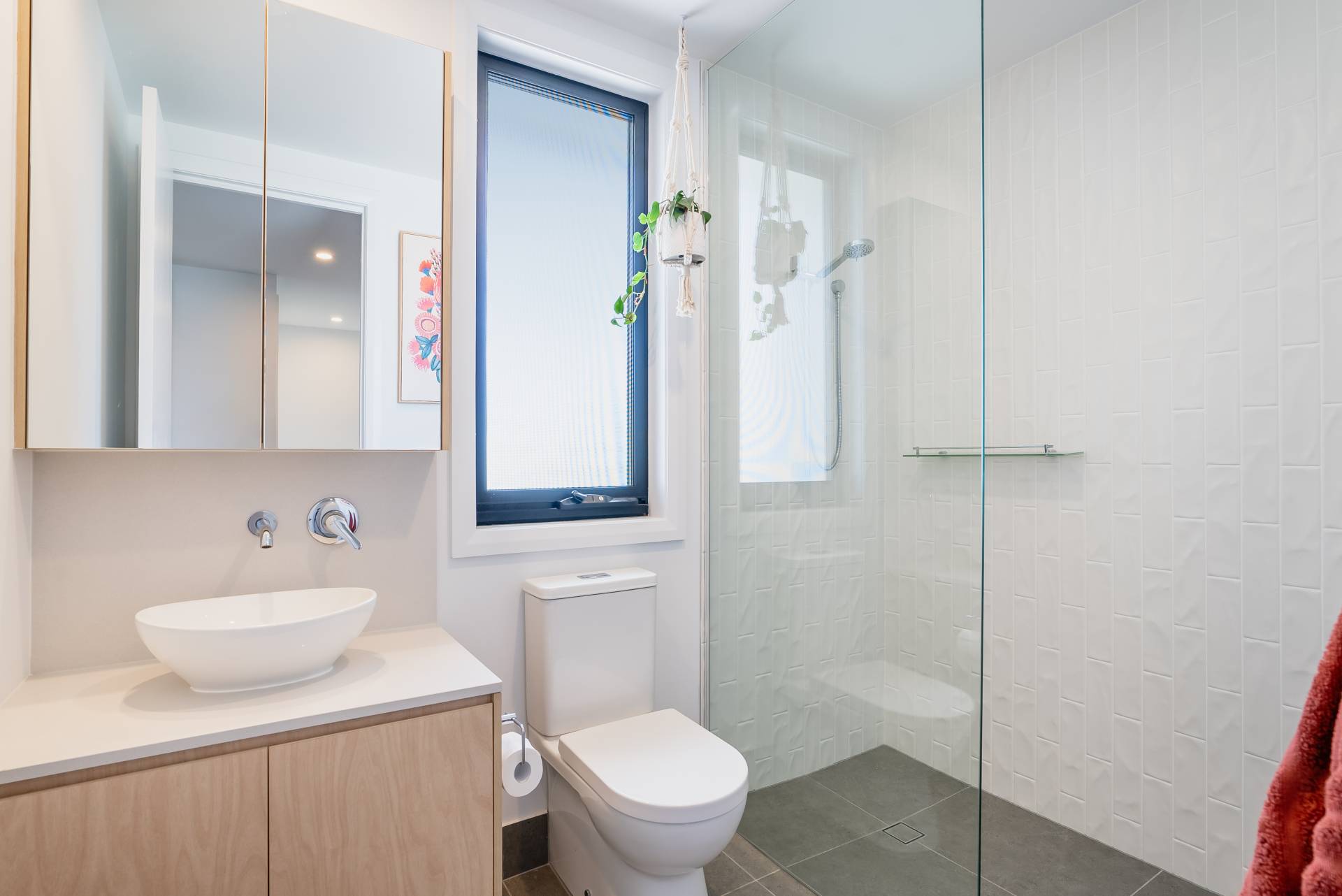 - Both bathrooms finished with contemporary tiles, black tap-ware and bespoke cabinetry