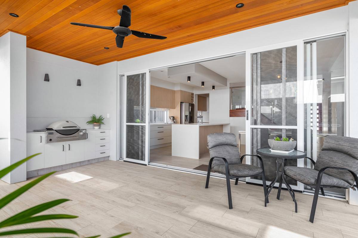 The three-year-old property is solar powered, with six-zone ducted aircon and ceiling fans ensuring efficient cooling throughout. Screened doors and windows allow the water breezes to flow.