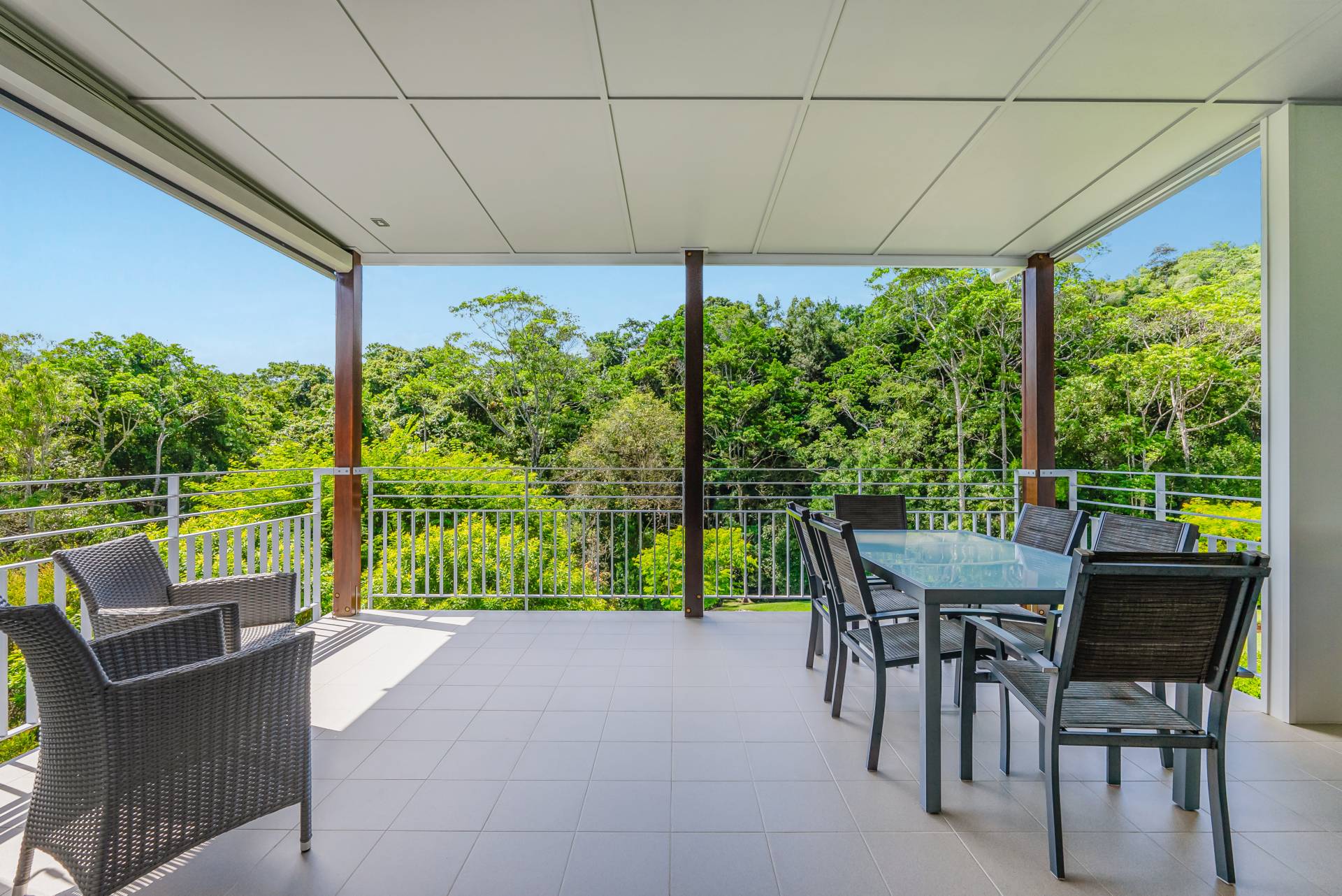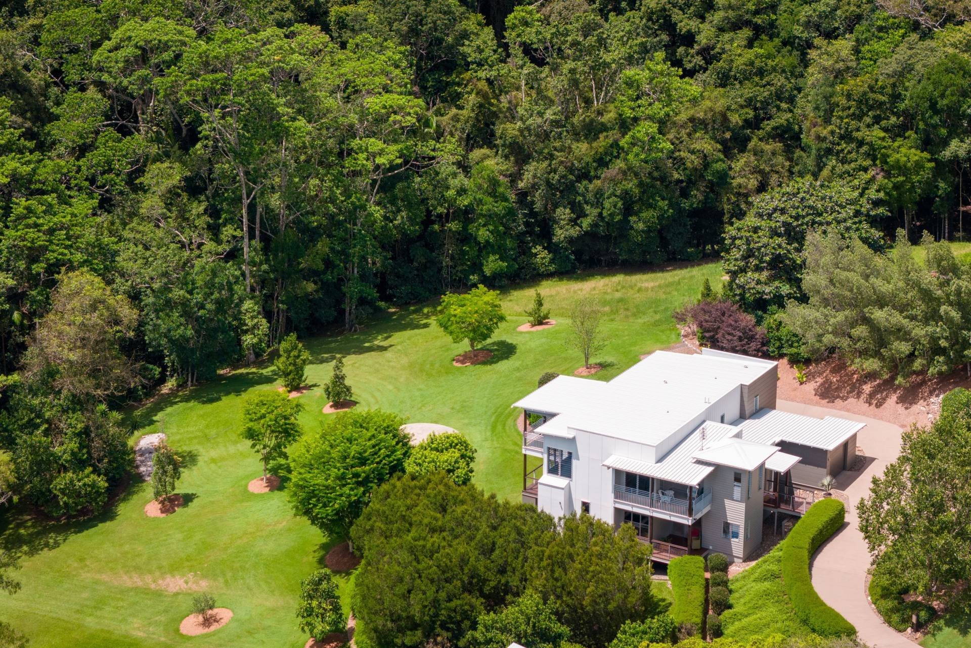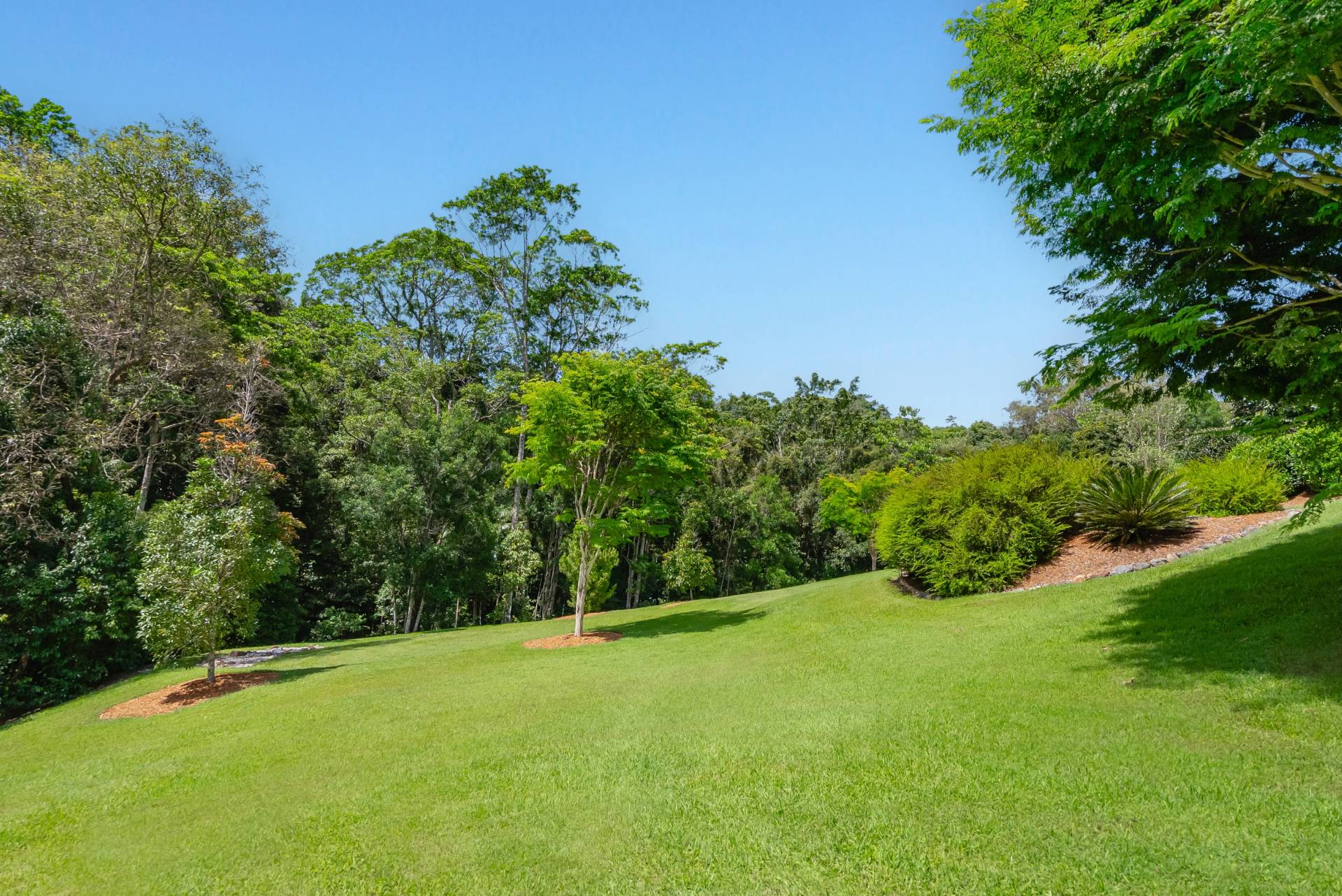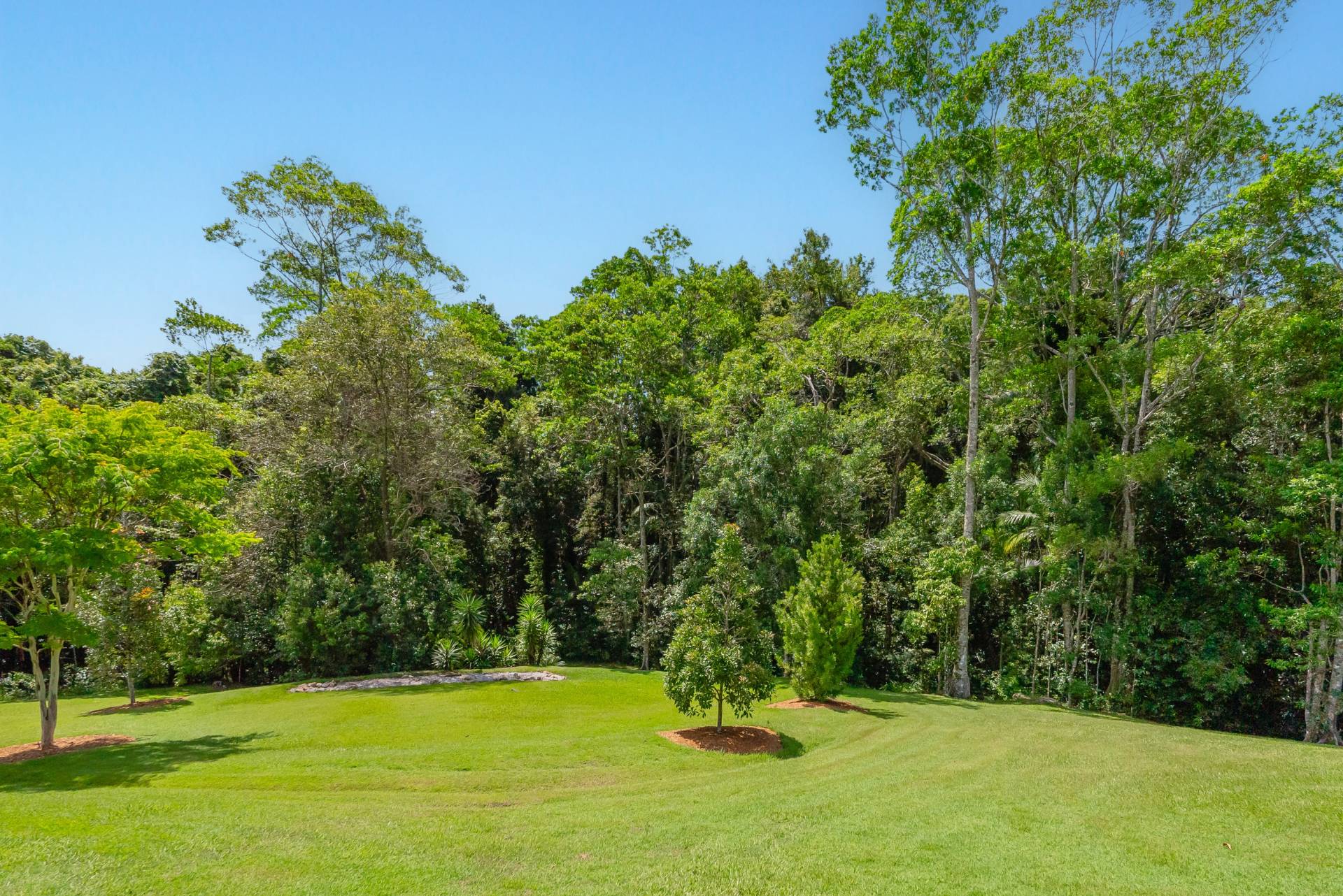 - Low-maintenance gardens featuring cleared lawns and sheltering trees set against a stunning rainforest backdrop - perfect for children and pets