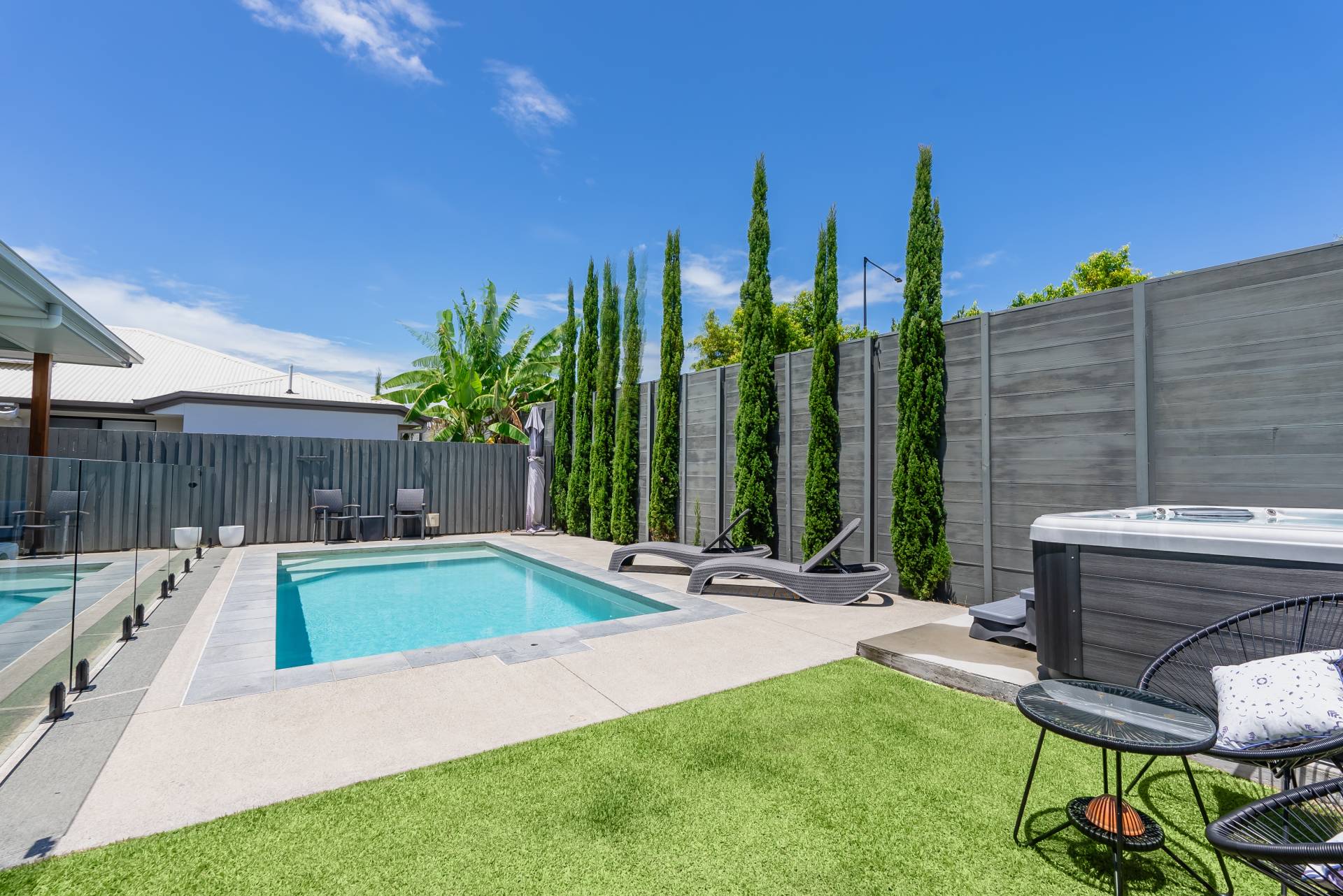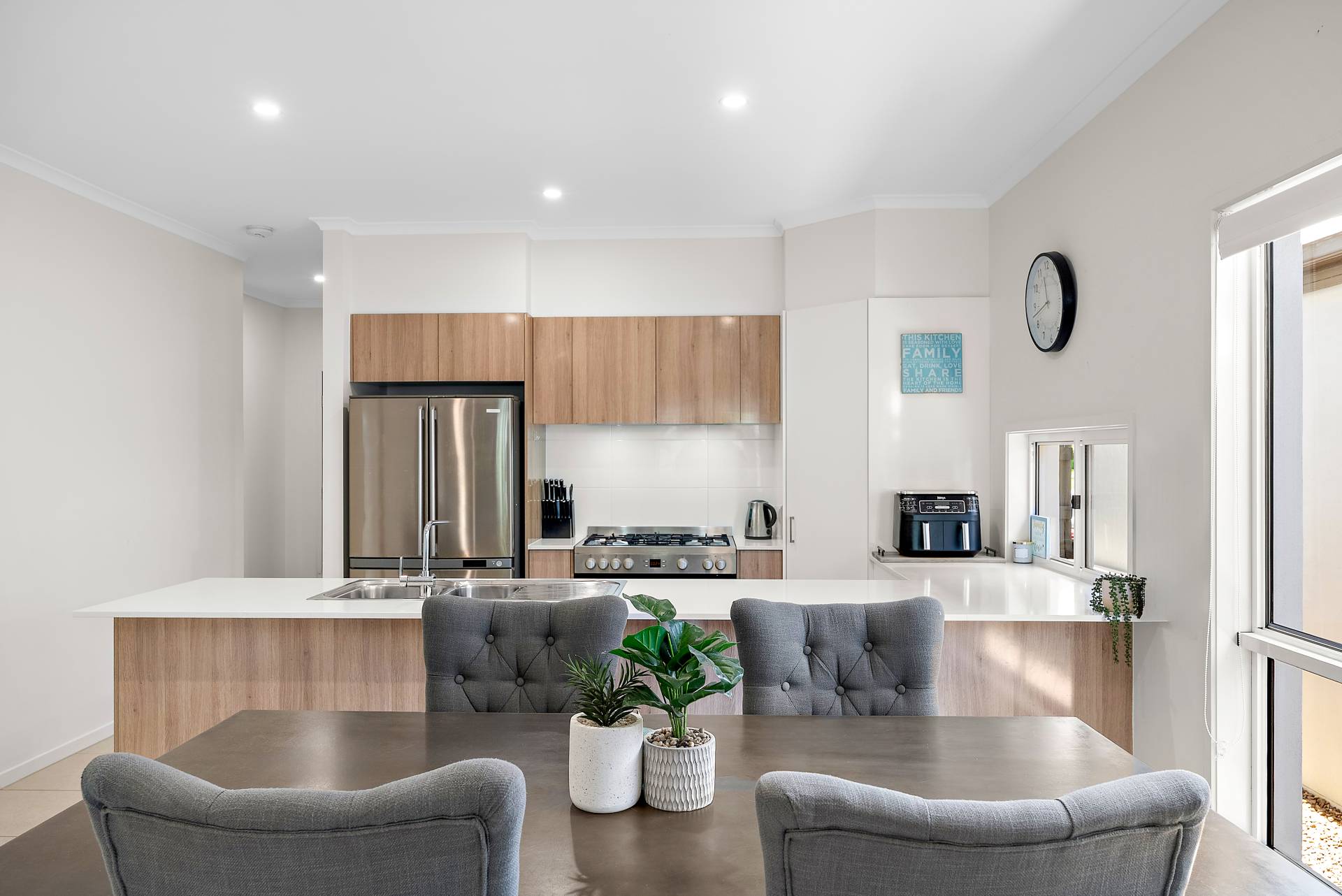 Boasting an inviting open-plan kitchen, living, and dining area that flows effortlessly to a covered alfresco, this space is perfect for sun-soaked gatherings with family and friends. Picture yourself firing up the barbecue with built-in cabinetry and stone bench-top while overlooking the stunning pool and spa. Whether you're hosting lively summer barbecues or enjoying quiet family nights, this property is designed for ideal indoor-outdoor flow and entertaining.