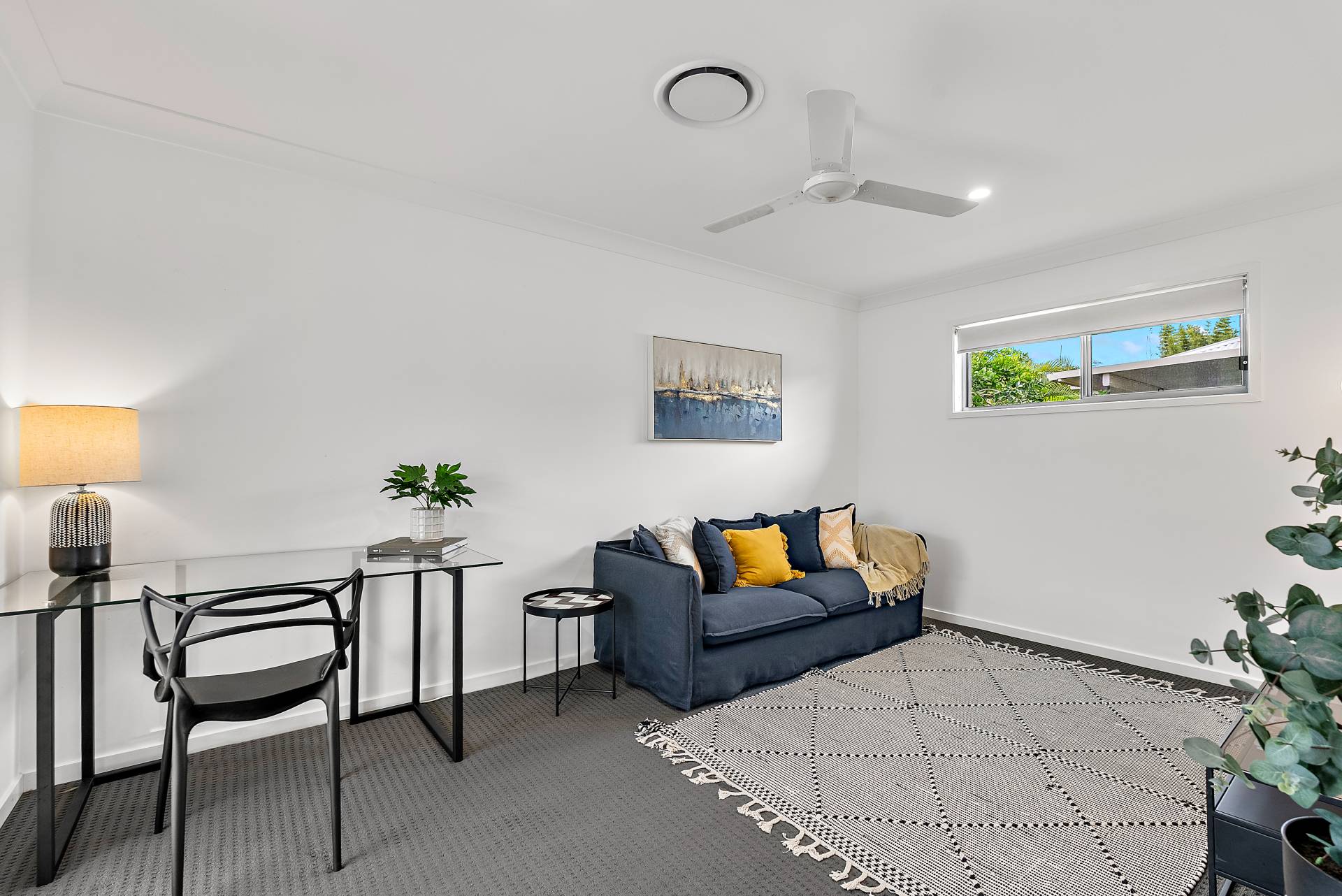 Two of the four bedrooms include private ensuites, ensuring everyone has their own space and comfort. All bedrooms are equipped with ceiling fans, and the entire home features ducted, zoned air-conditioning to keep you cool during those warm coastal days.