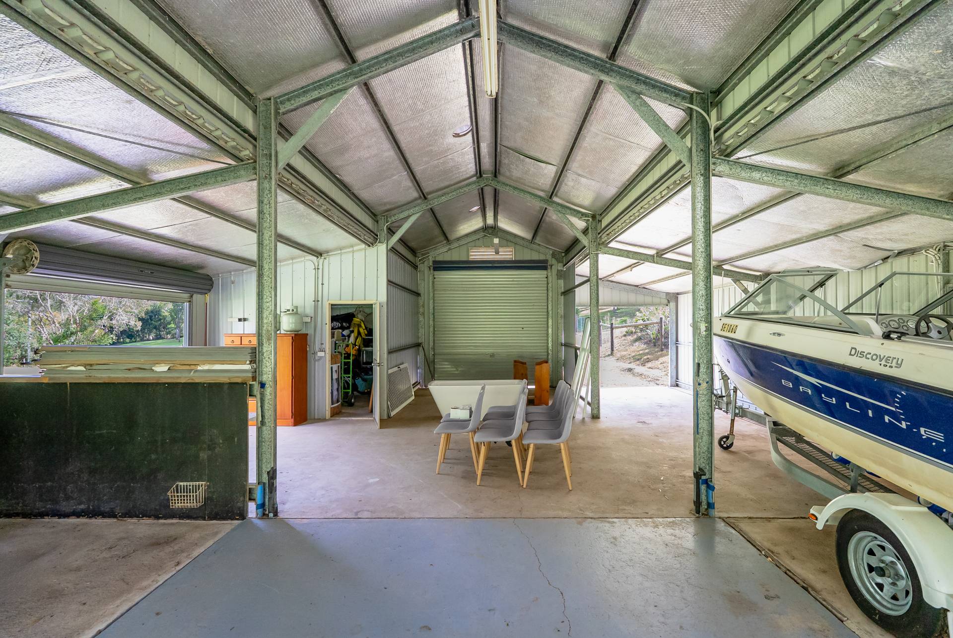 The huge 15 x 10m shed comes with concrete slab, storage room, power and 22,500L water tank with inside tap. You can convert it into a spacious 'shouse' and save on rent while you build, or decide the shed life is for you and not bother with building at all.