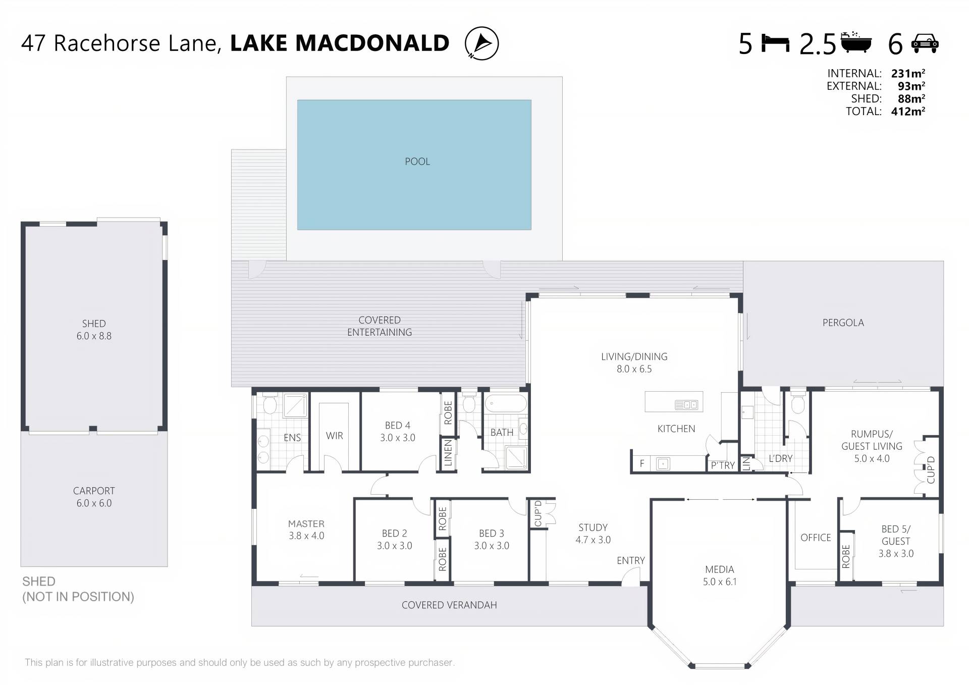 At the other end is a fifth bedroom, rumpus room, office, laundry and powder room, creating dual living opportunity or the perfect guest accommodation or teen retreat.