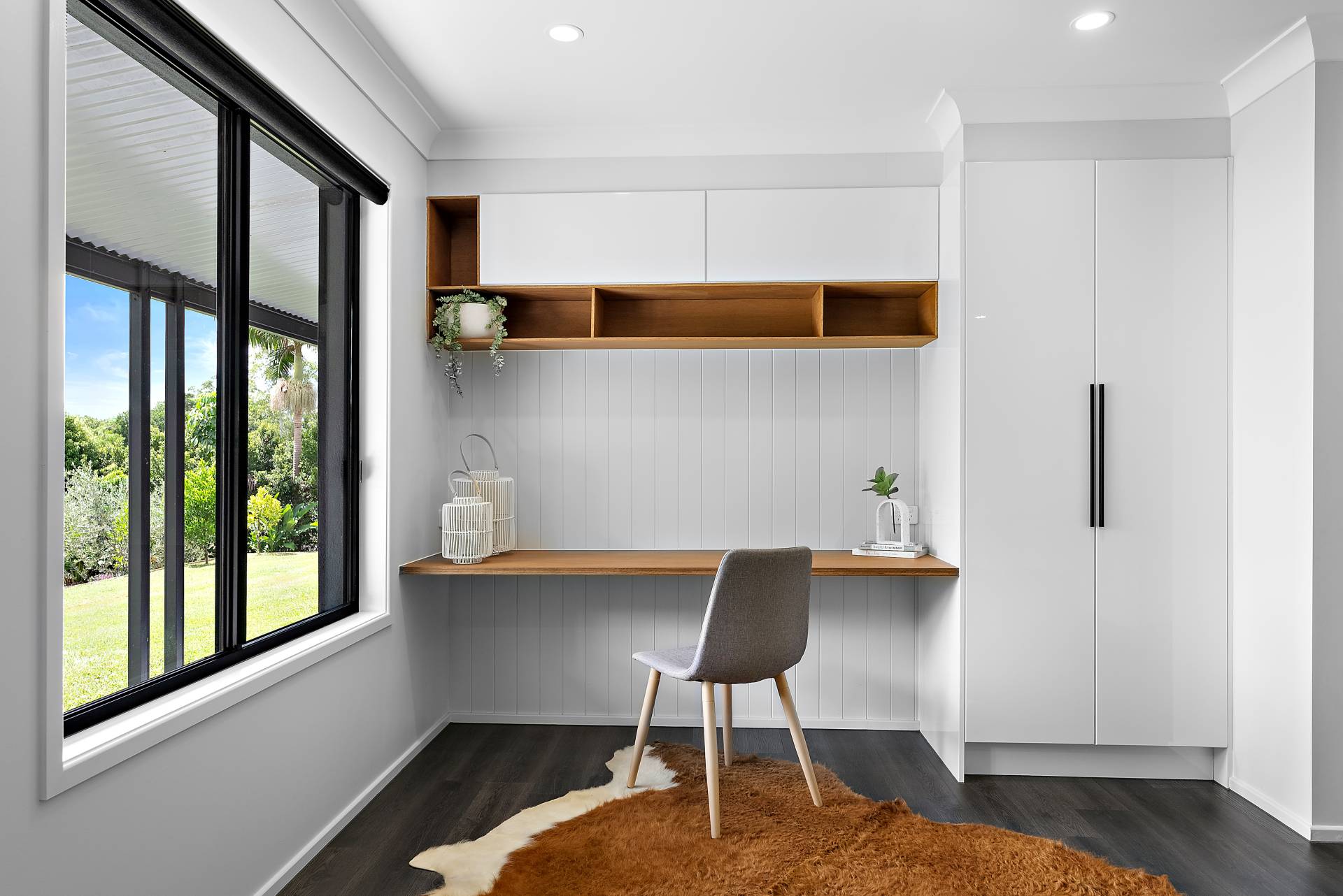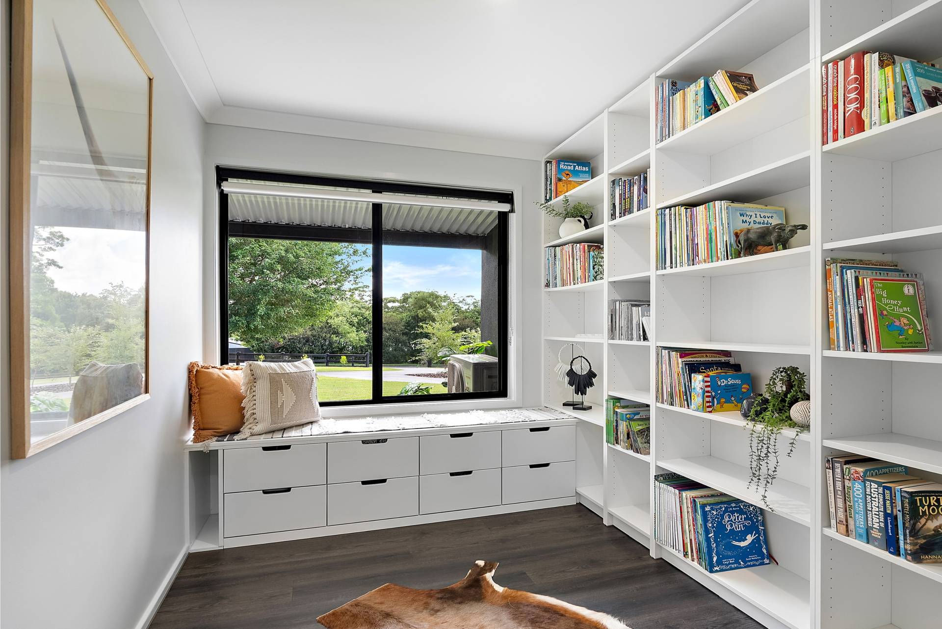 A separate media room with bay window provides excellent separation for busy families, and a built-in study area provides handy filing and storage capacity.