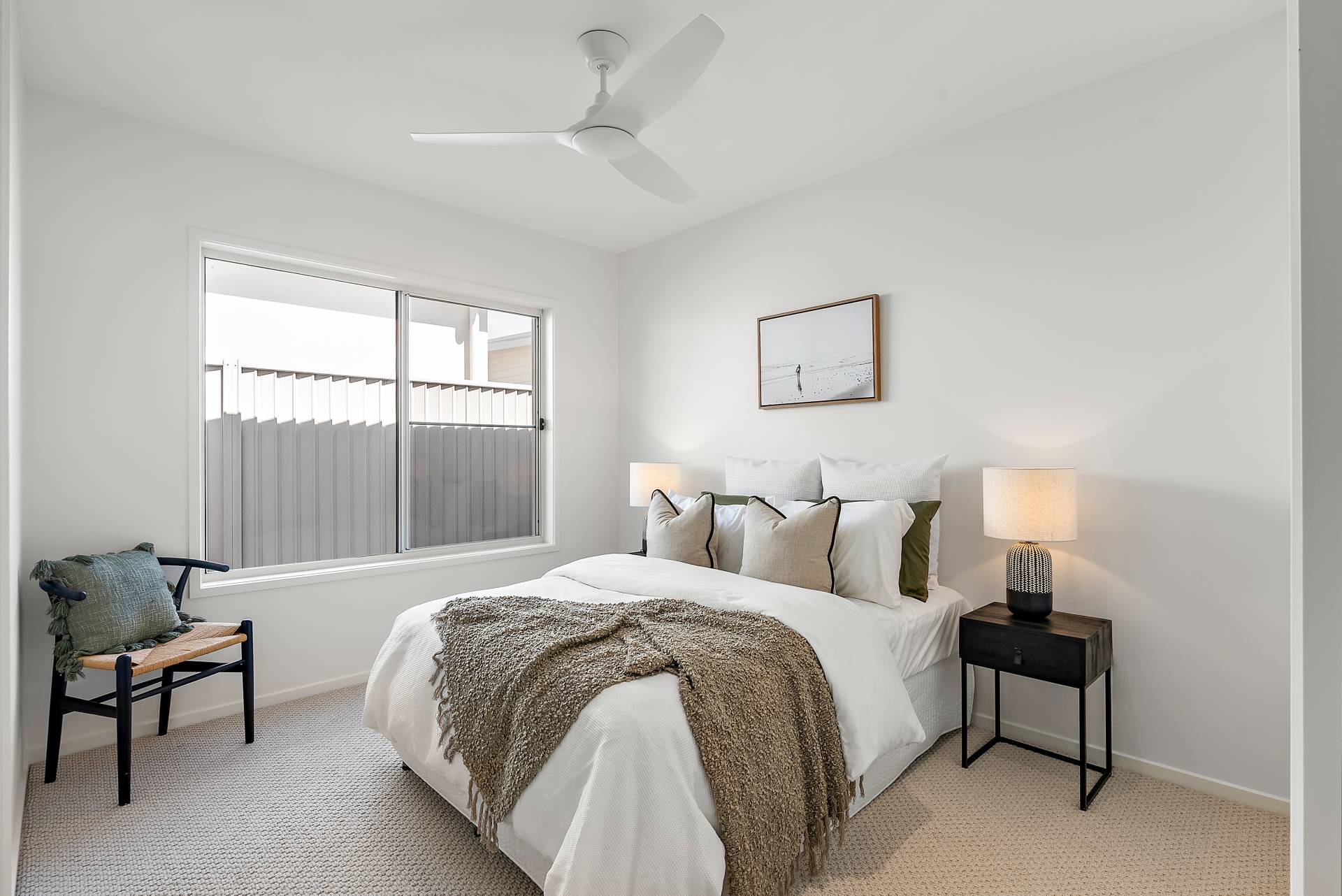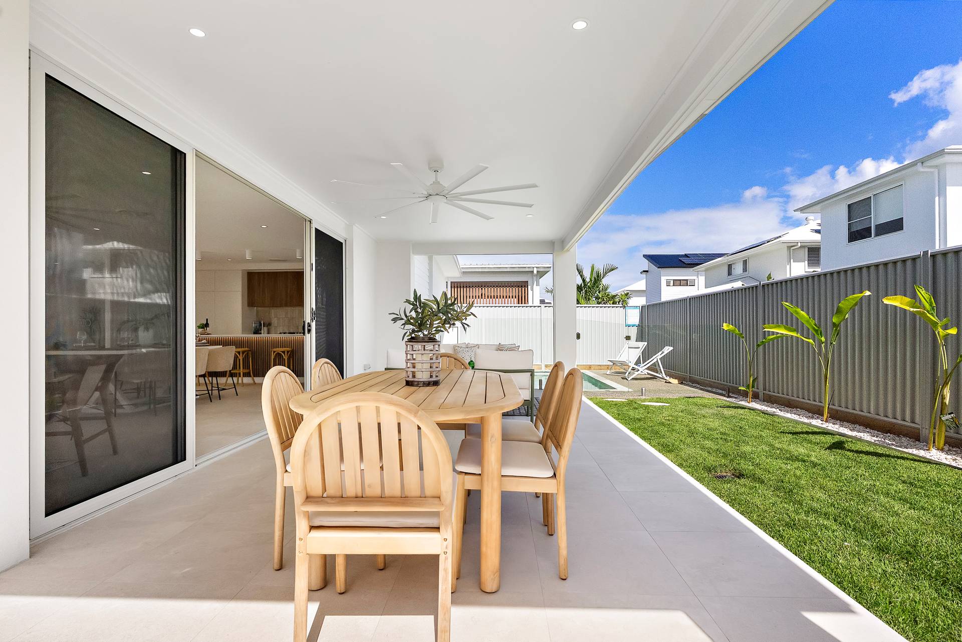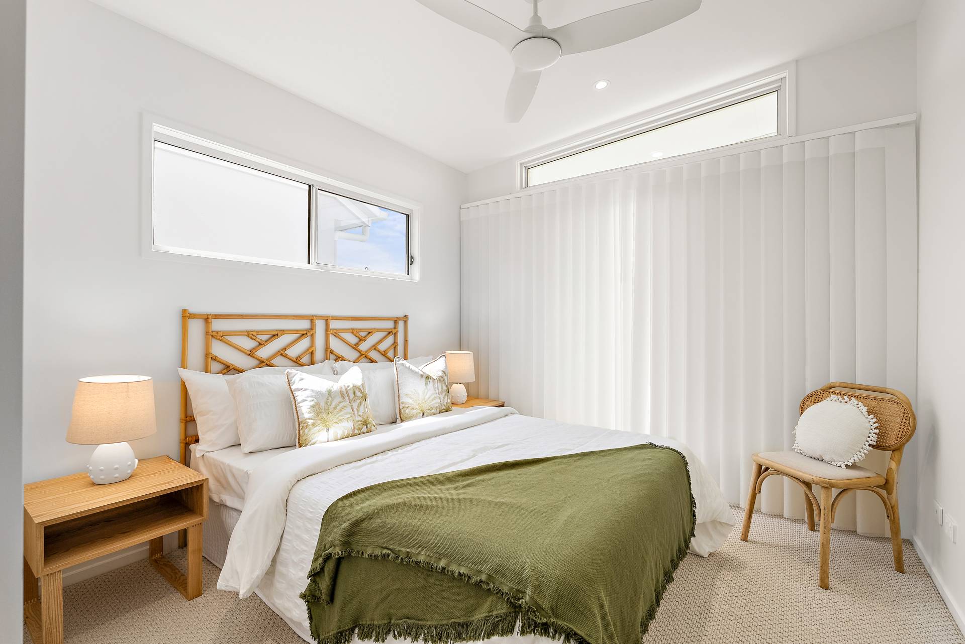 Two of the four bedrooms include private ensuites, ensuring everyone has their own space and comfort. All bedrooms are equipped with ceiling fans, and the entire home features ducted, zoned air-conditioning to keep you cool during those warm coastal days.