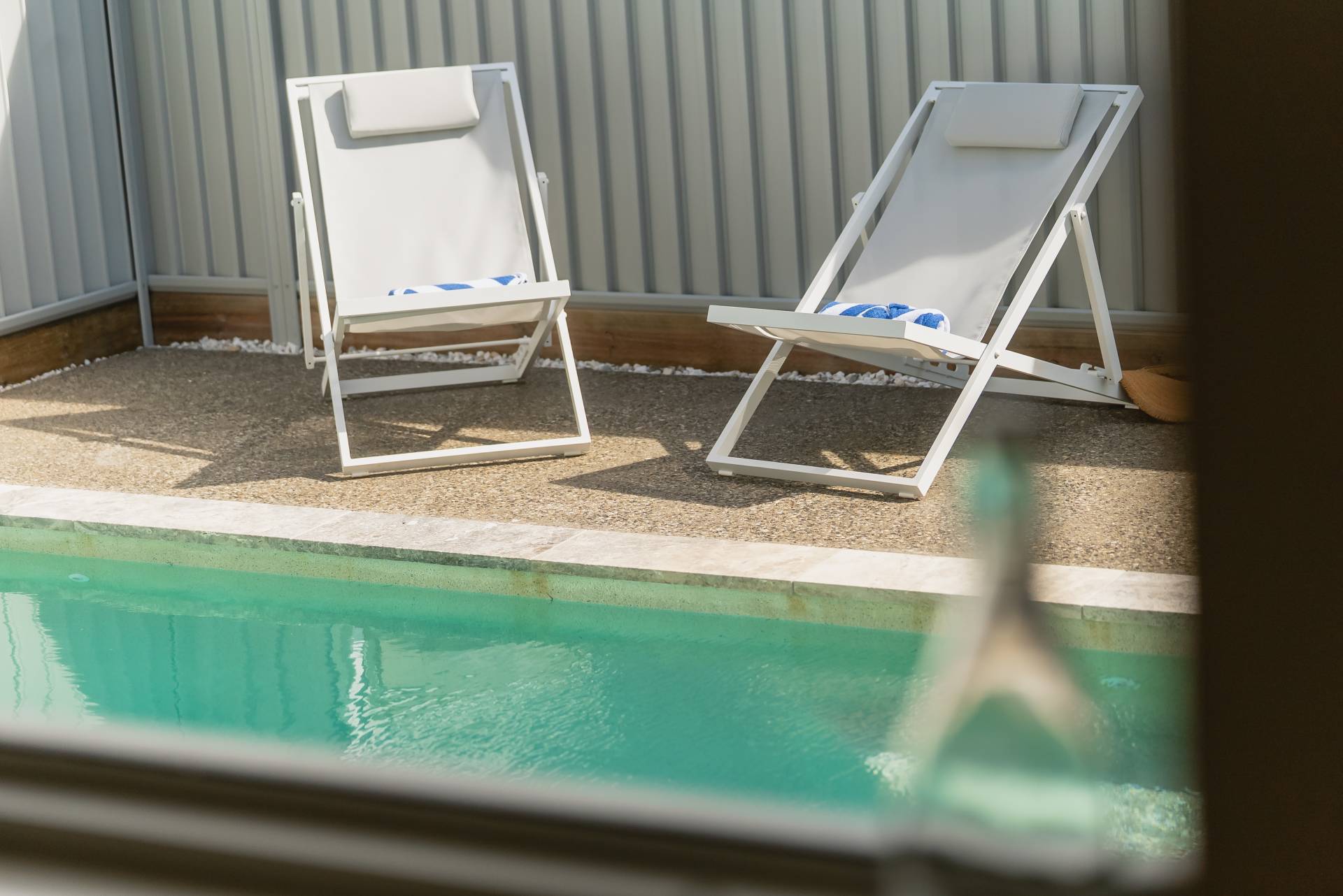 Courtyard Fenced Outdoor entertainment area in-Ground Pool