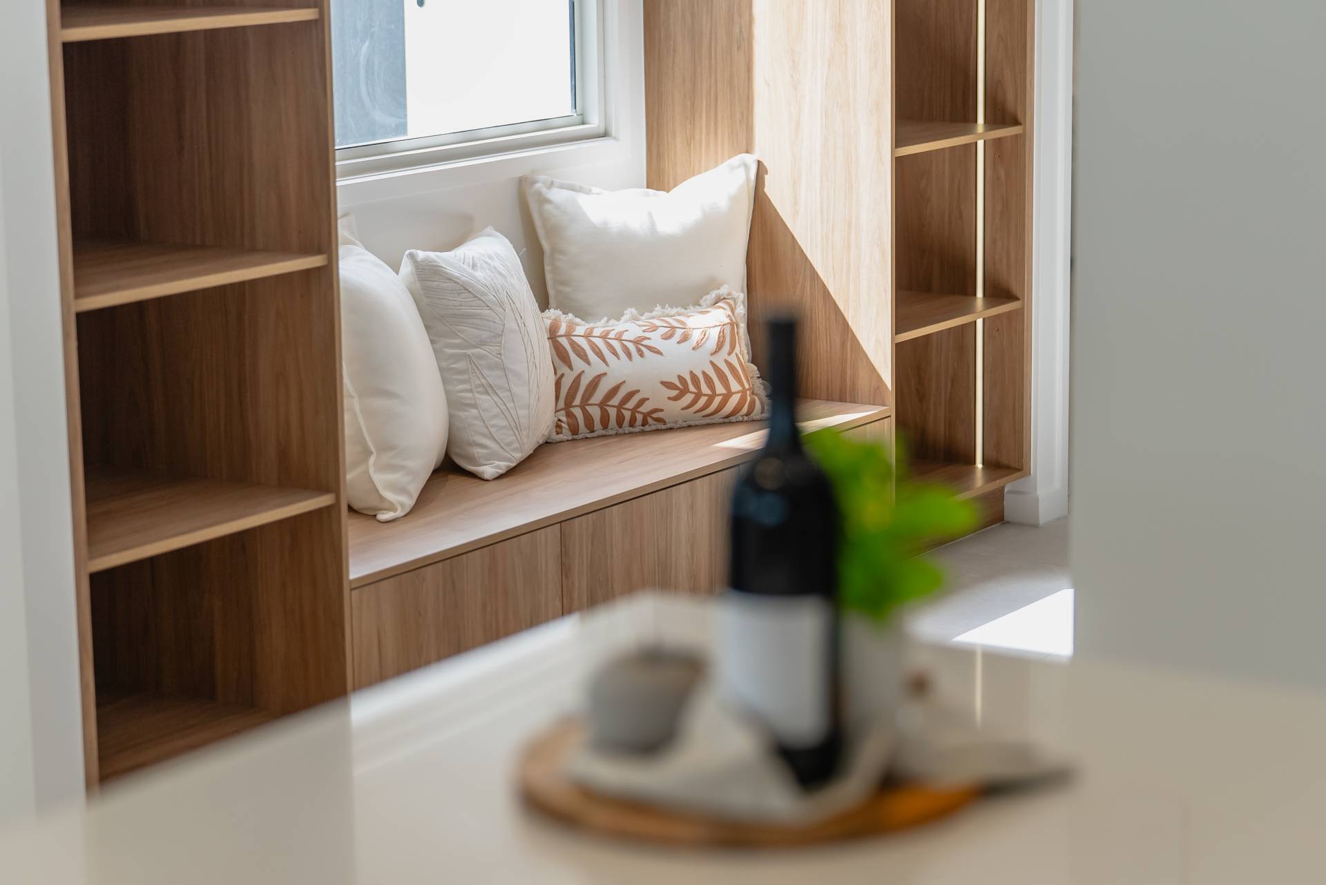 - Stunning window seat overlooking the courtyard with built-in bookcase and LED lighting