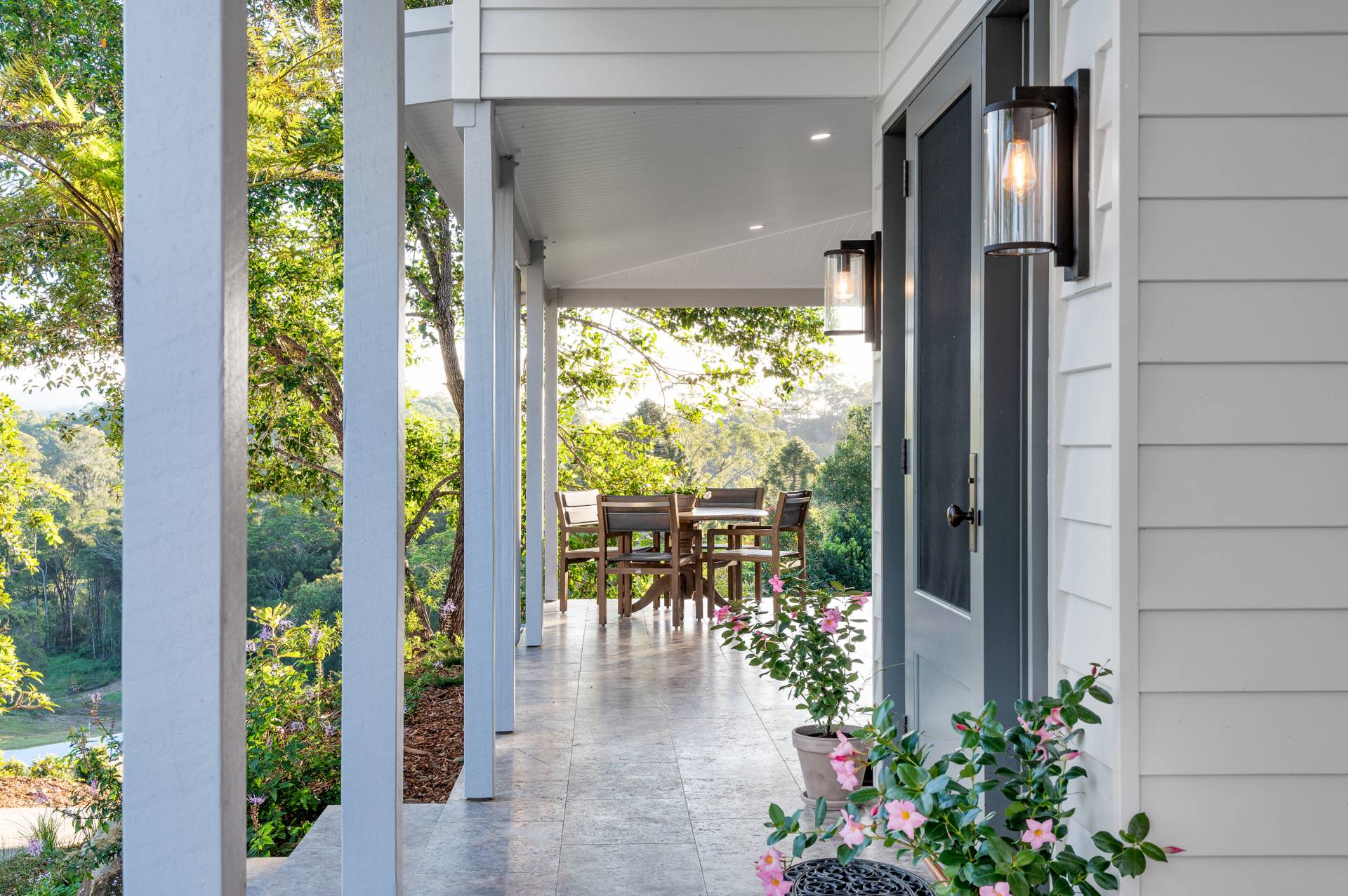 - Shaded travertine-tiled wraparound verandahs maximising the hinterland vistas