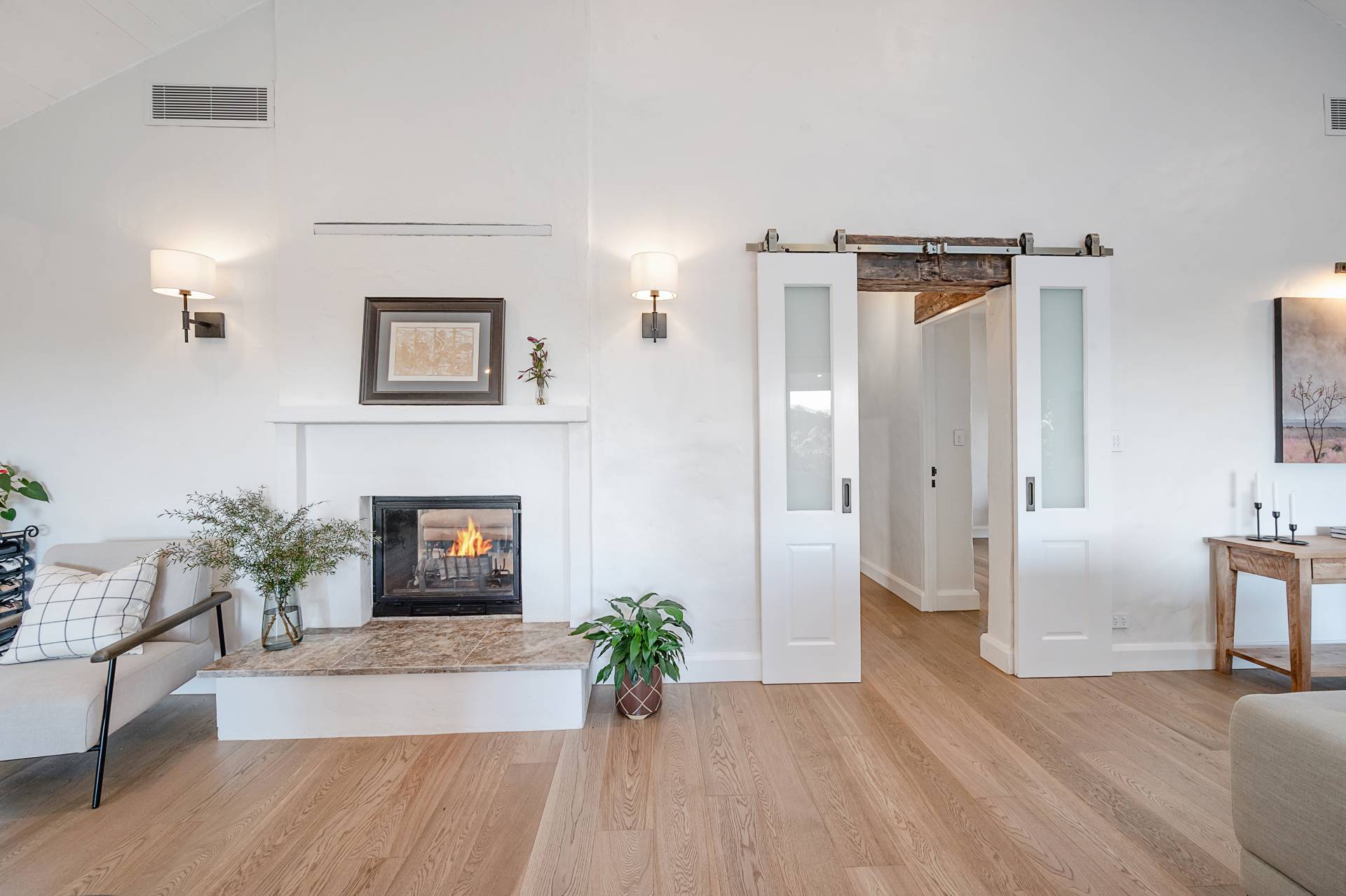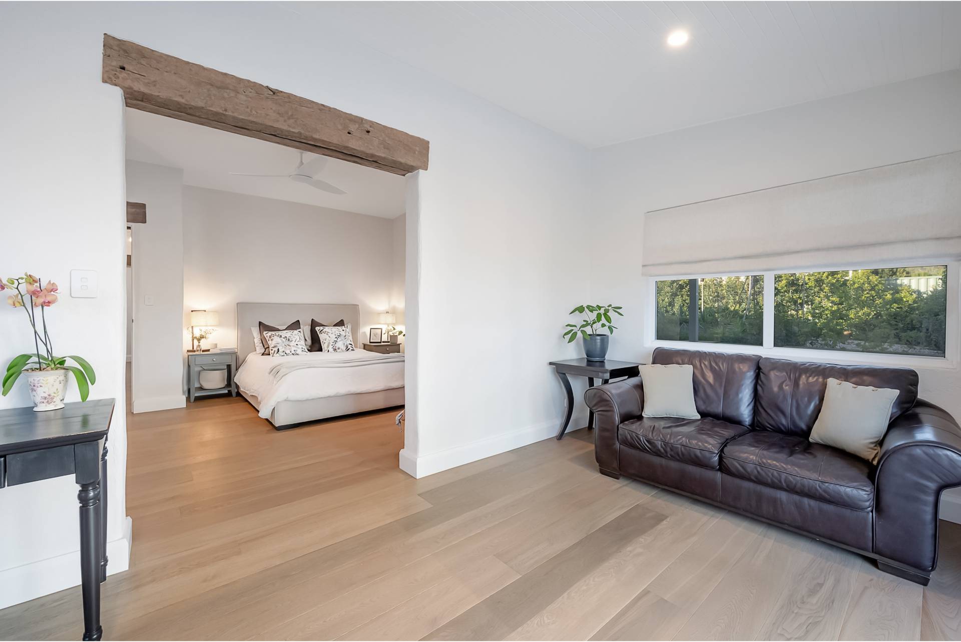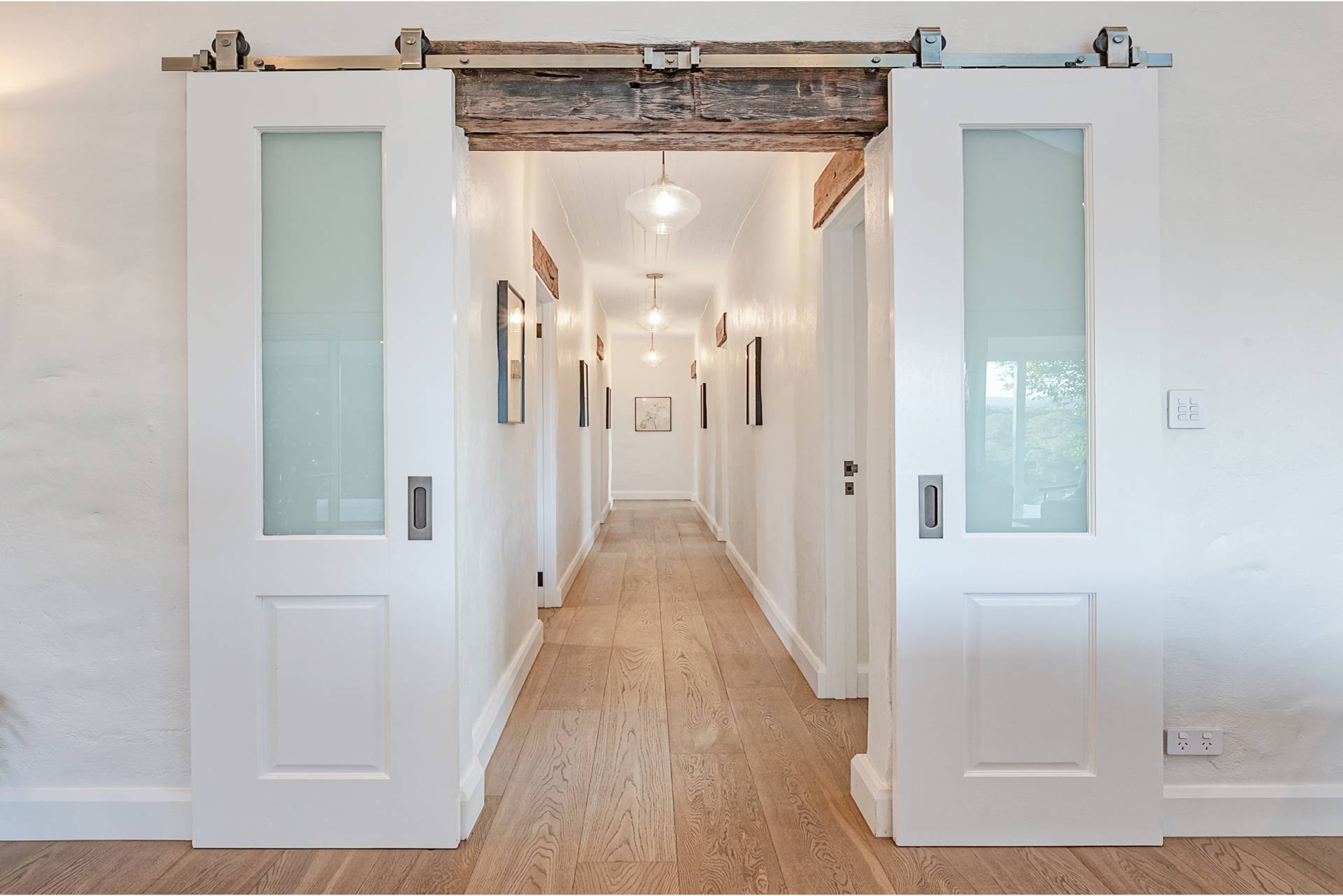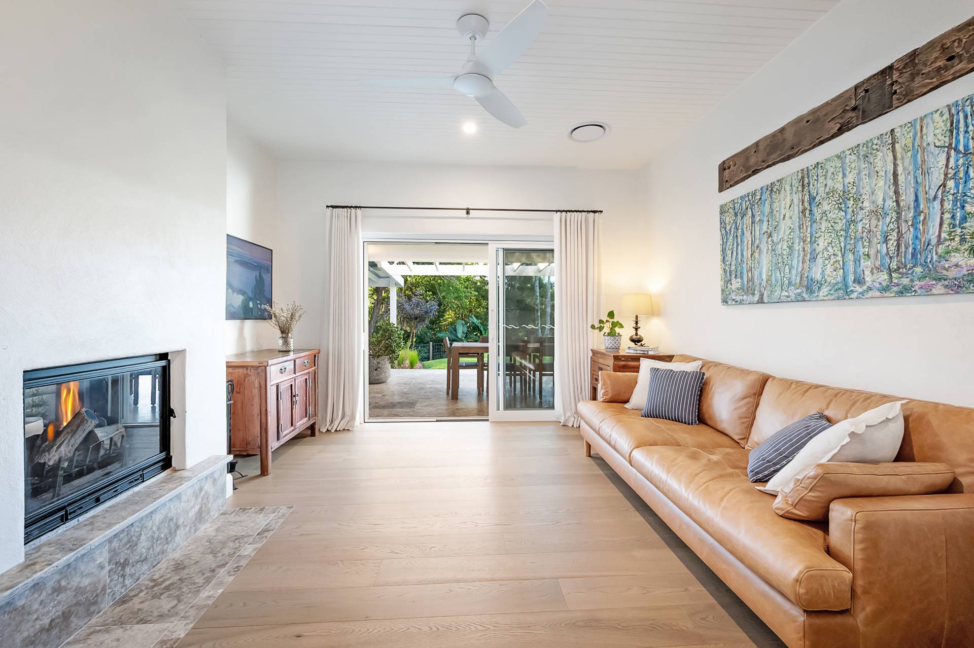 Renovated from the ground up, its European-inspired farmhouse origins are embraced through original rough rendered walls, solid timber lintels, 5m living room ceilings and a gorgeous double-sided fireplace.