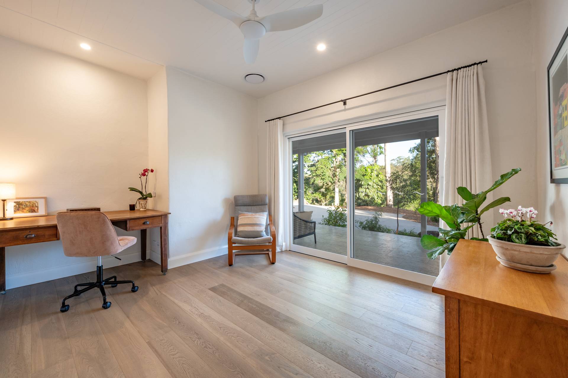 Sandstone retaining walls, level lawns and native planting all feature, while a vegetable garden including irrigated raised beds and an orchard of 15 fruit varieties ensure the opportunity to cultivate your home-grown harvest. There's room for a substantial pool within your fully-fenced back garden.