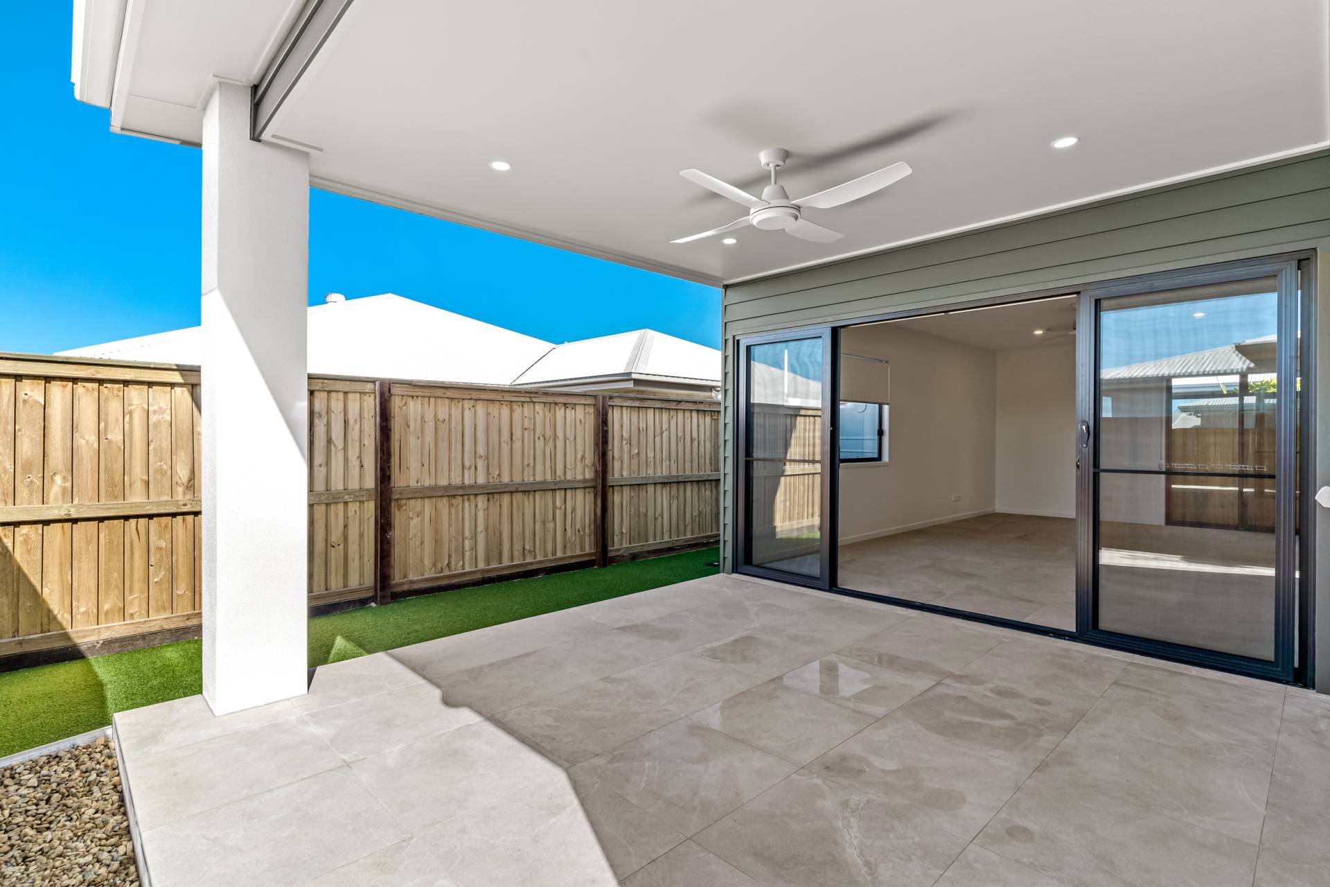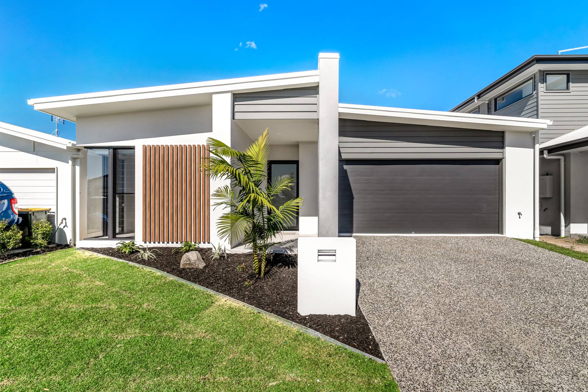 • Striking modern facade with welcoming patio entry