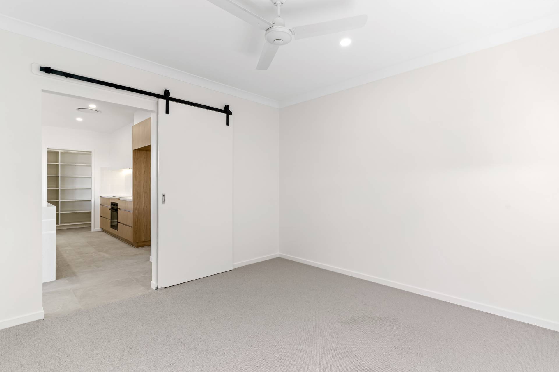 The kitchen is a standout, complete with waterfall-edge stone benchtops, quality appliances, backlit splashback, and a spacious walk-in pantry with power and pocket sliding door. A separate media room adds extra flexibility for movie nights or quiet retreat with barn door and black hardware. A custom study nook provides a beautiful space to work or study from home.