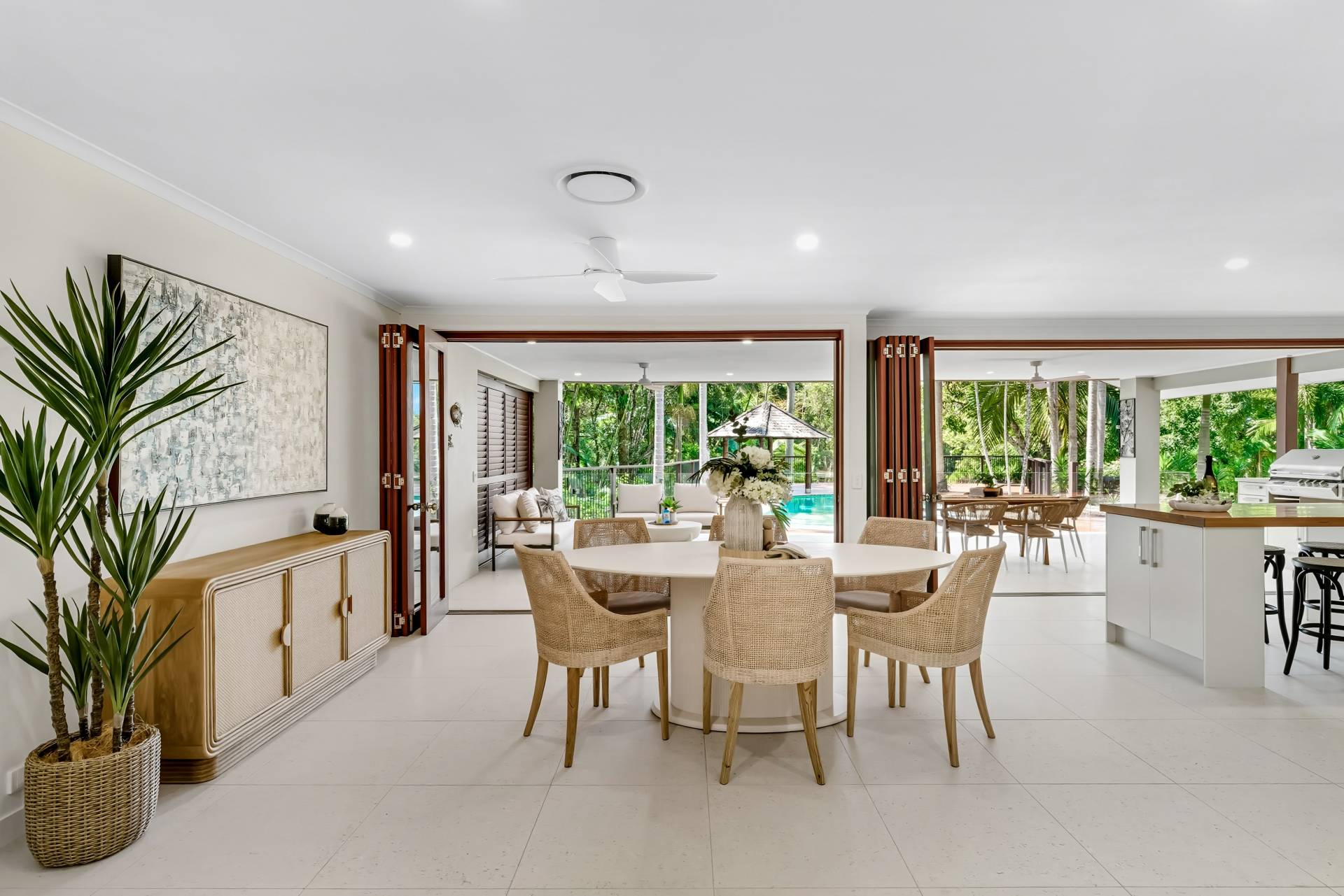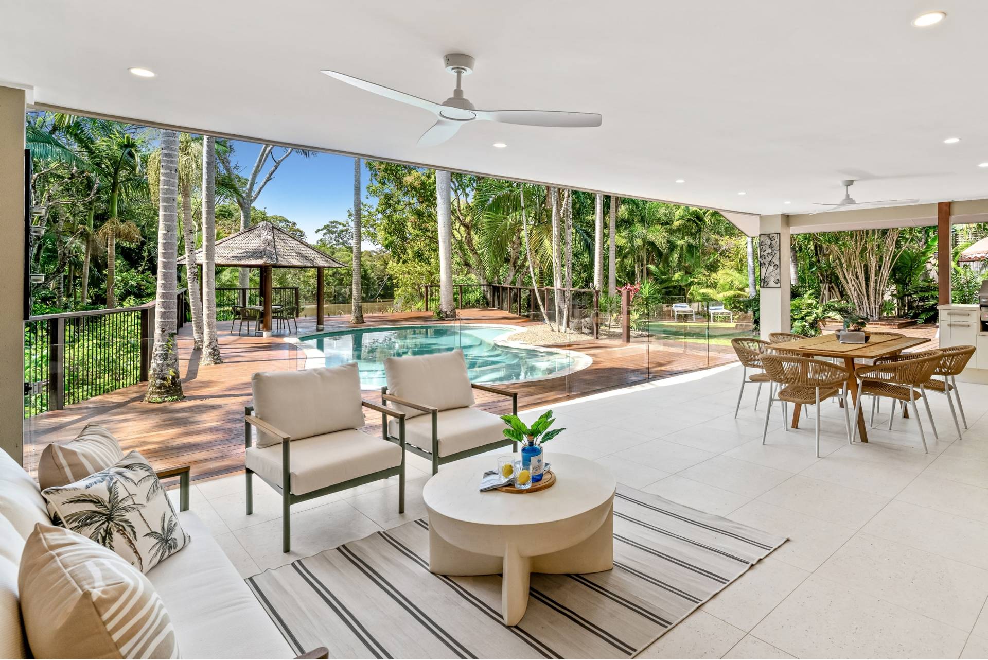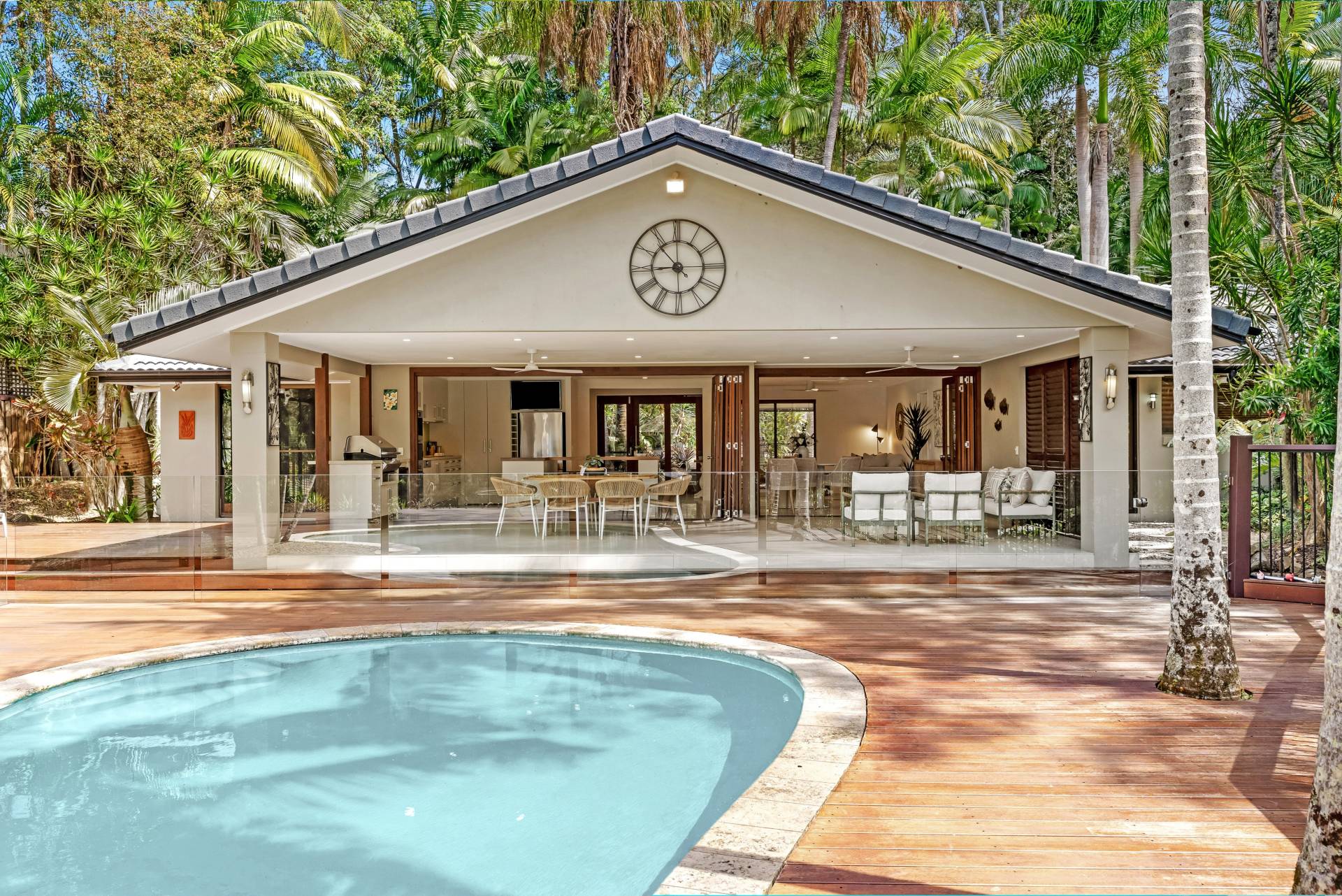 You can entertain family and friends around the outdoor kitchen and lagoon-style saltwater pool while taking in views across the Noosa Valley Golf Course and your private forest backdrop.
