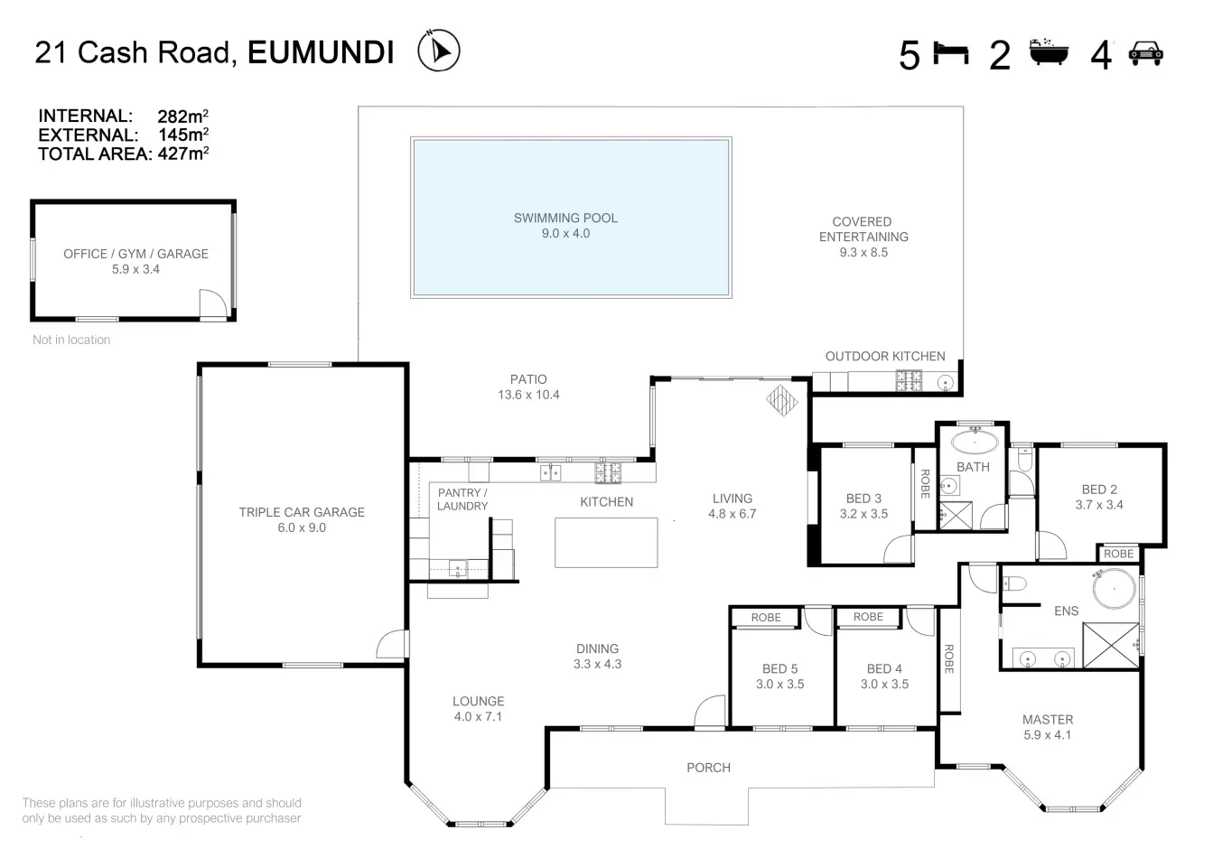 - 5 bedrooms with garden outlooks and built-in robes, including a master retreat with sumptuous ensuite