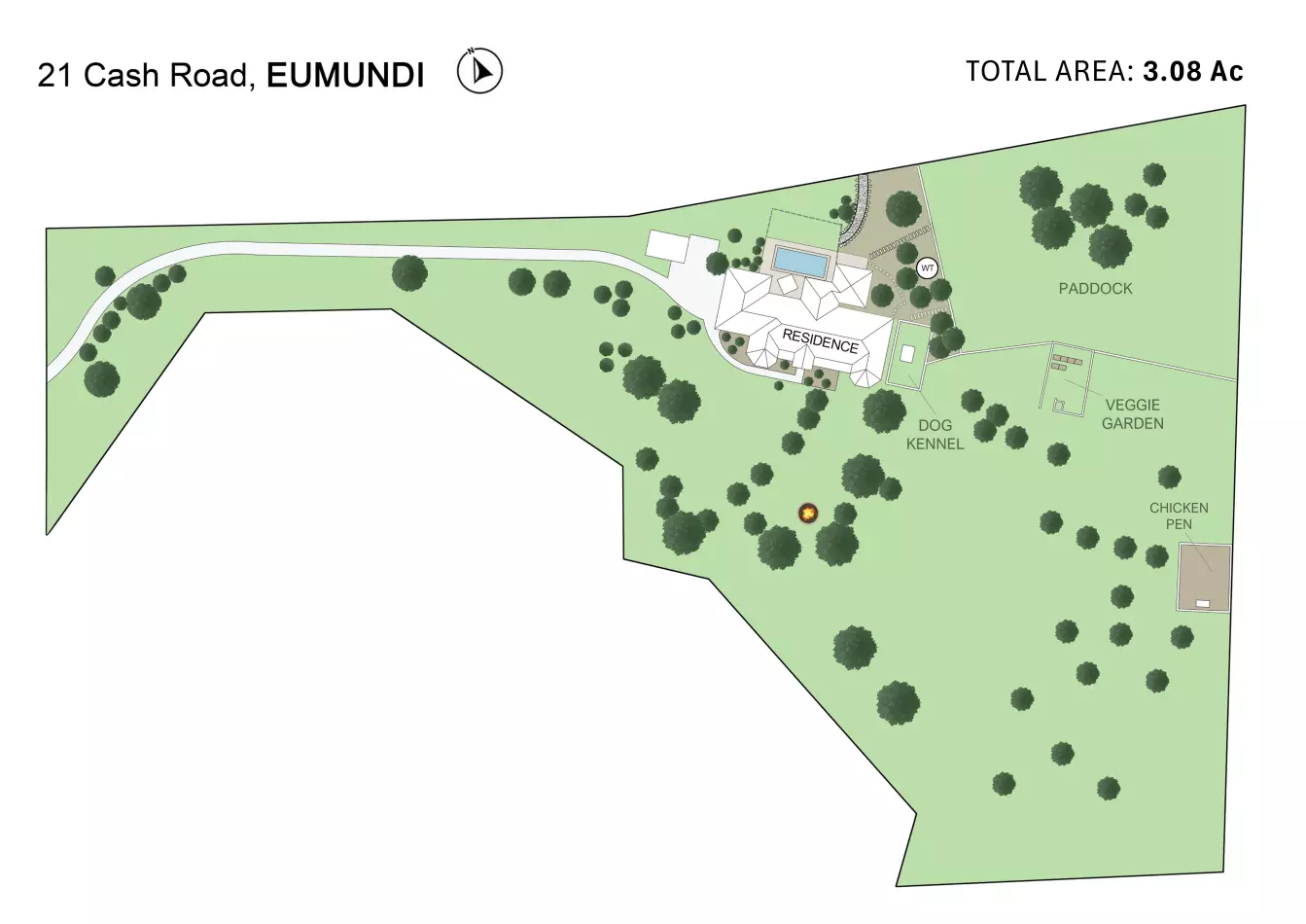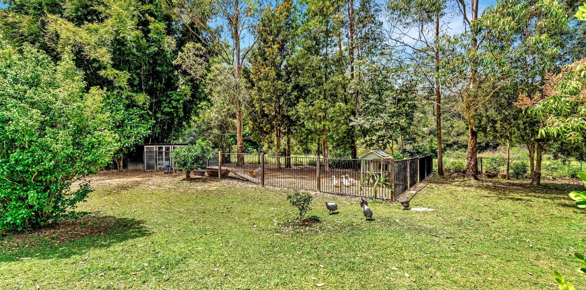 - Expansive fenced and lawned garden with established trees, dog run and kennel, paddock, chook enclosure and firepit