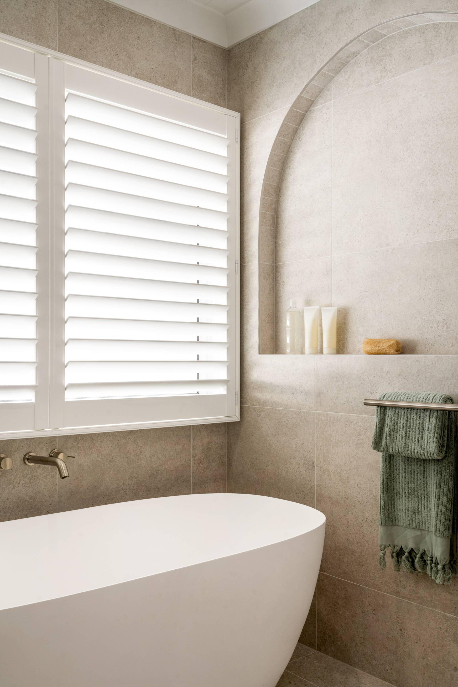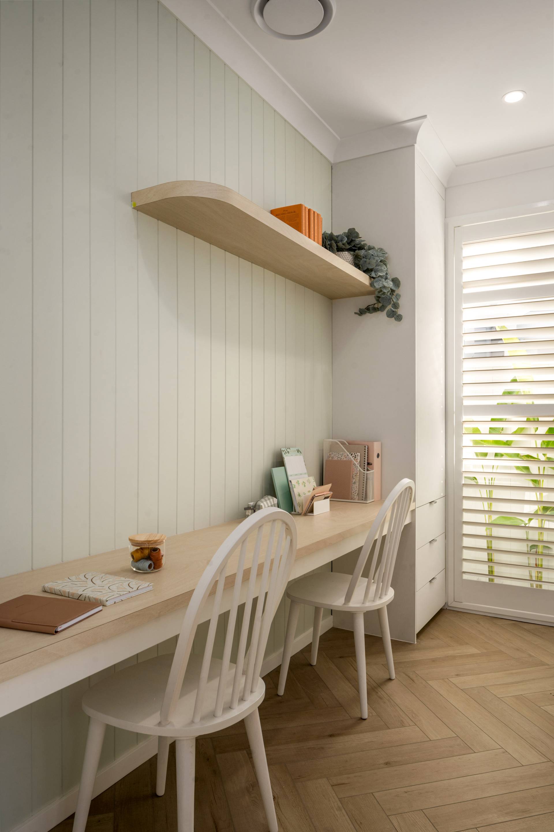 • Beautiful window furnishings, including floor-to-ceiling sheers and plantation shutters