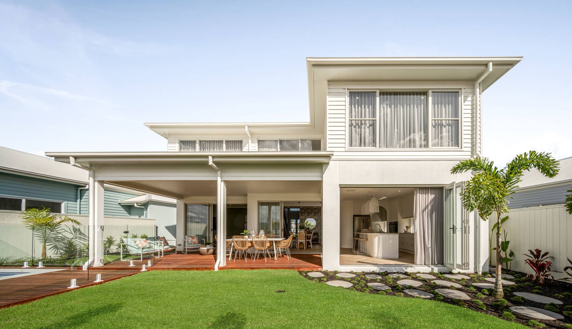 • Bright and airy open-plan living enhanced by the design's large void ceiling and seamless connection to the expansive outdoor entertaining area and pool