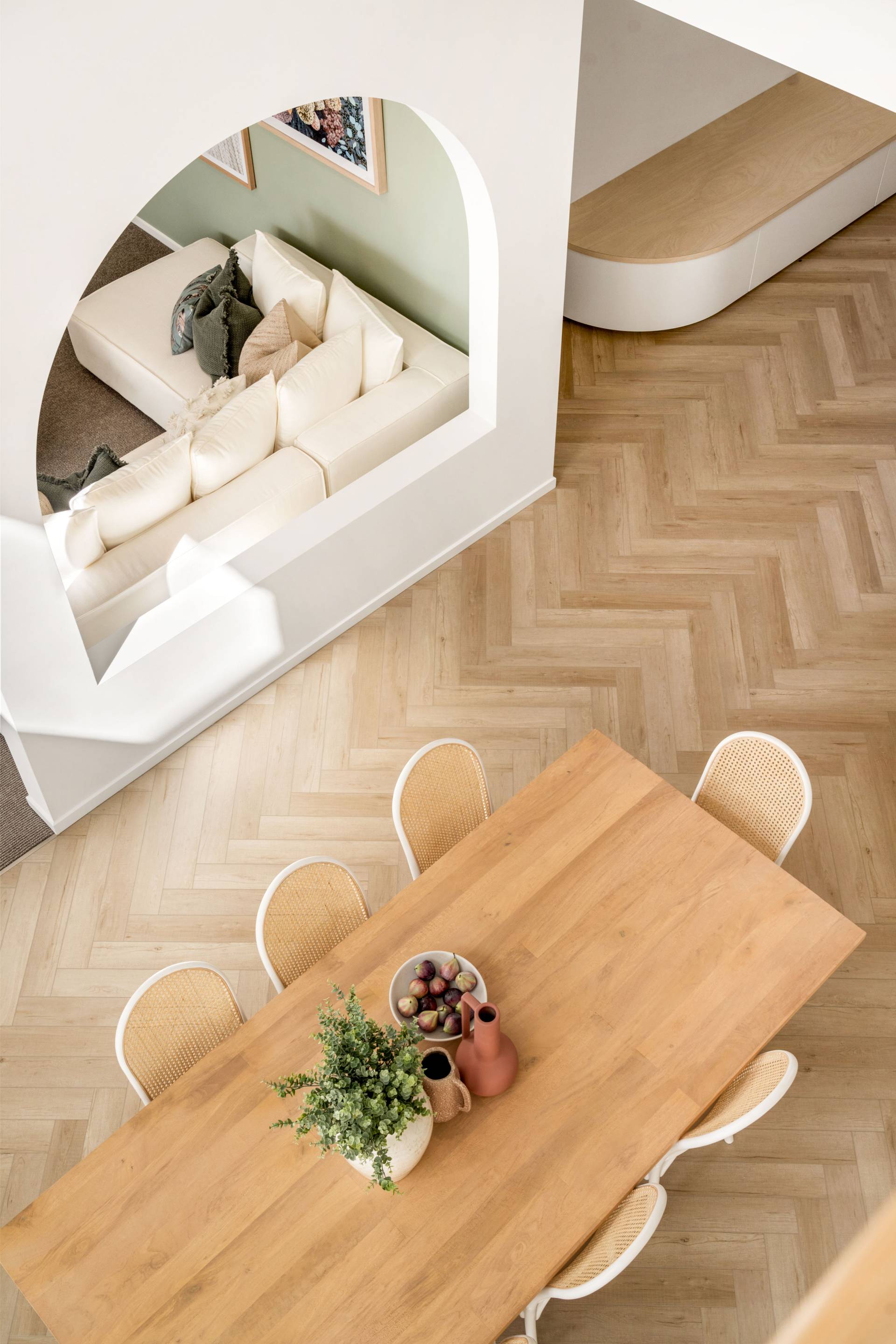 • Wood-effect herringbone flooring through main living areas