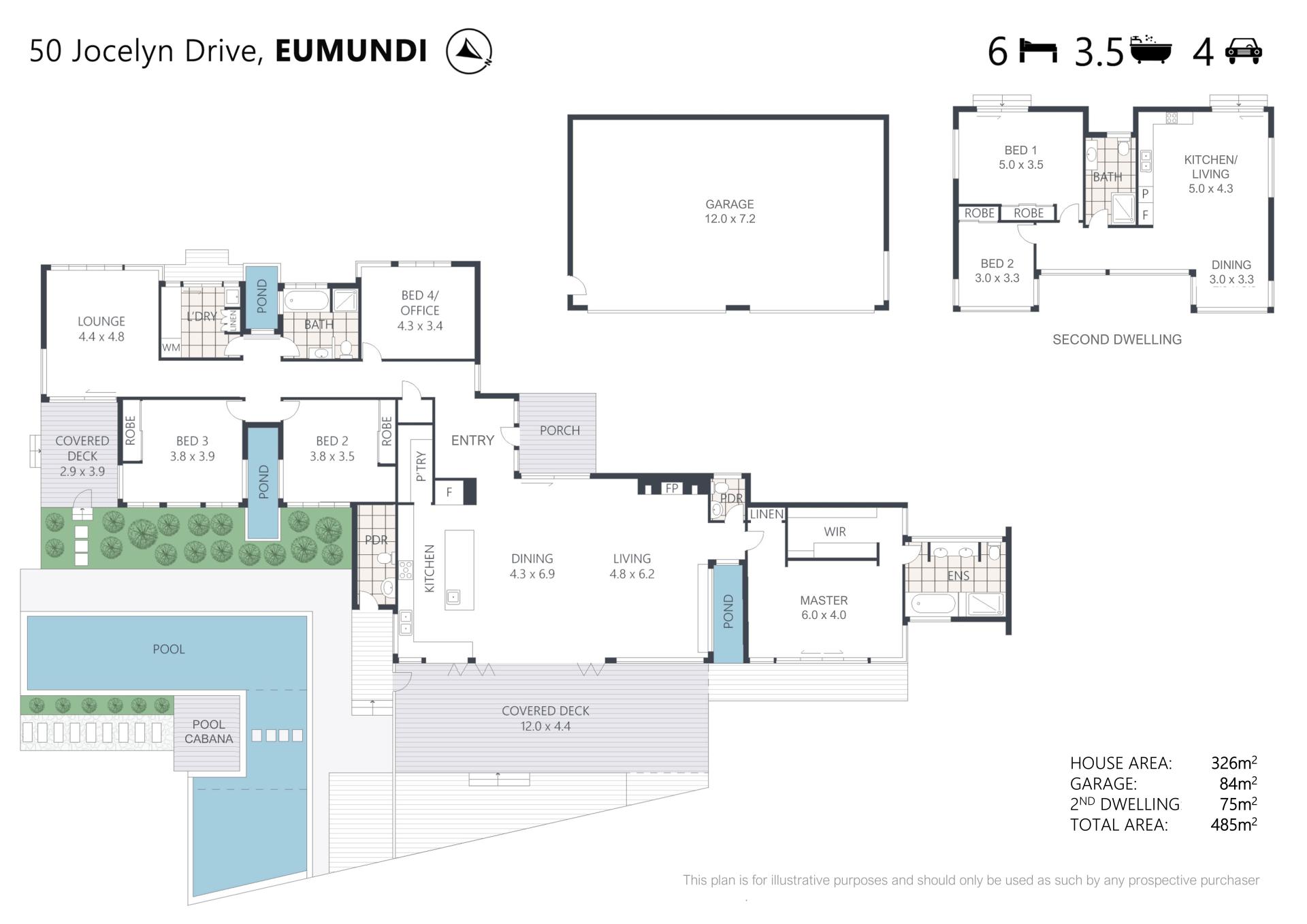 The separate two-bedroom apartment, again designed to capture natural light and breezes, provides perfect dual living, guest accommodation, home office space or income generation potential.
