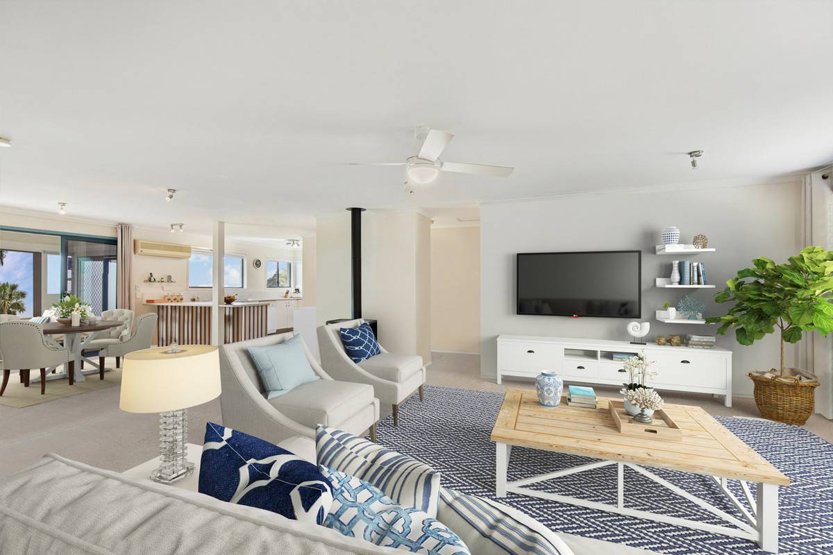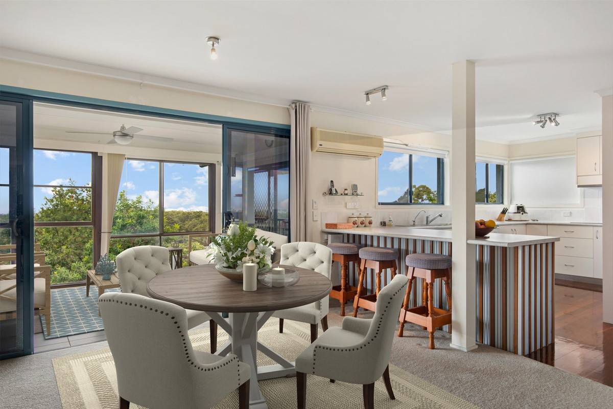 Offering spectacular 180-degree country and coastal views, the four-bedroom, two-bathroom home presents a series of well-proportioned spaces which provide ultimate flexibility.