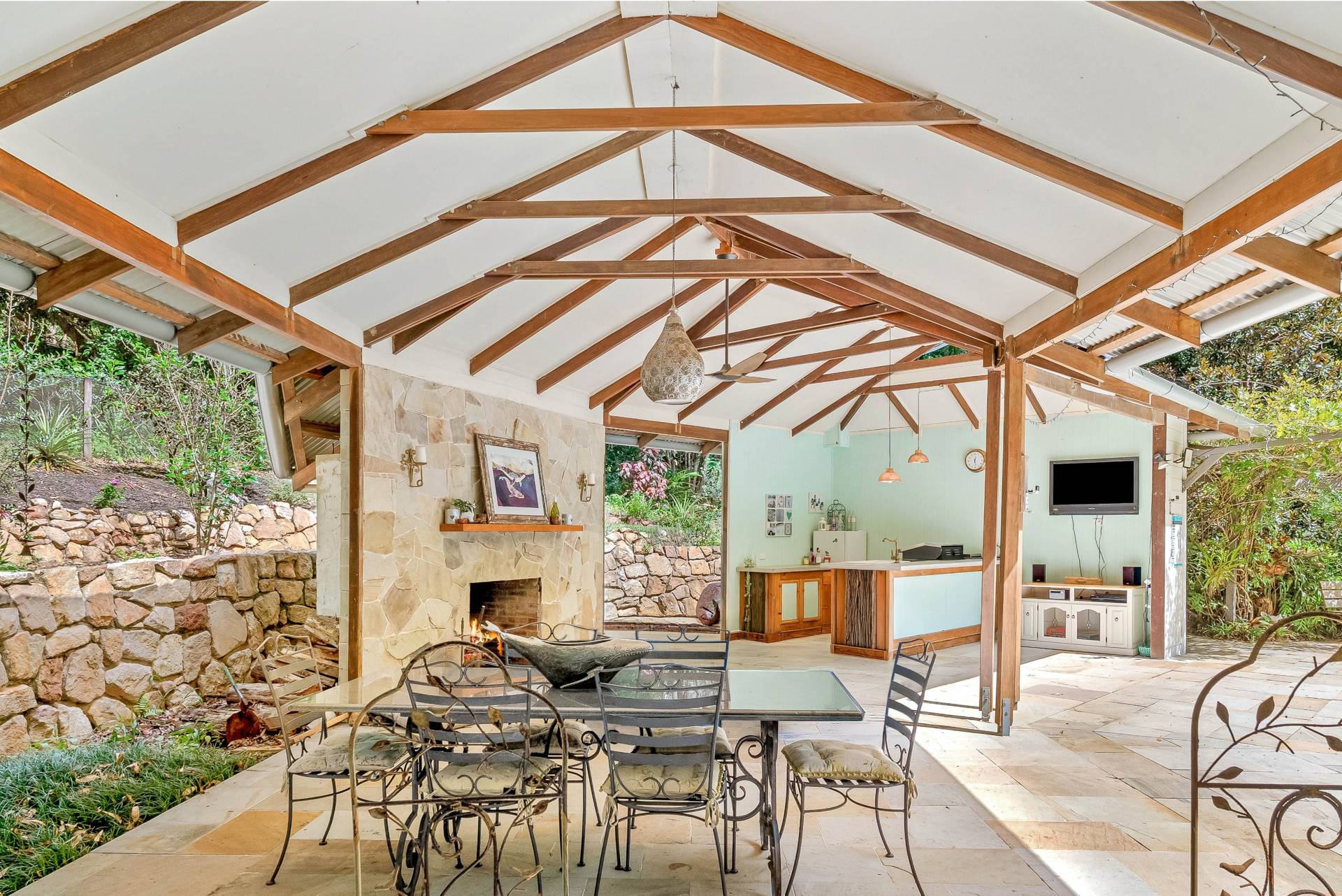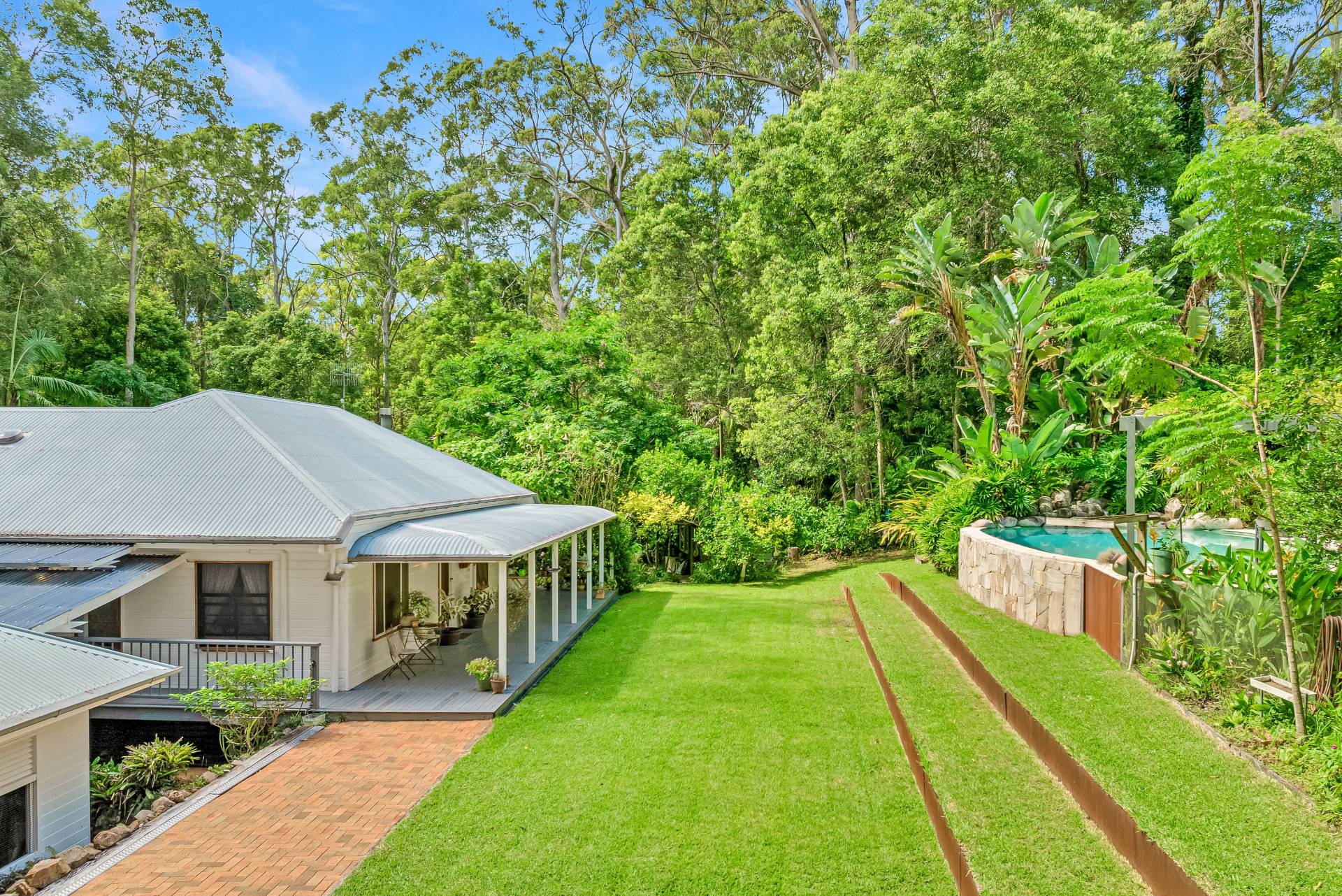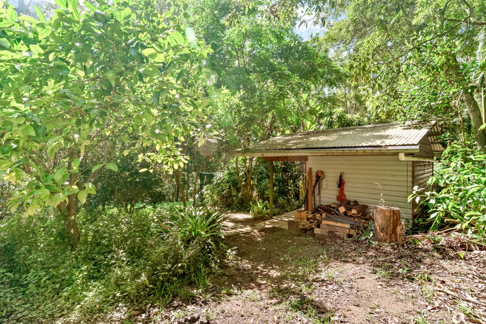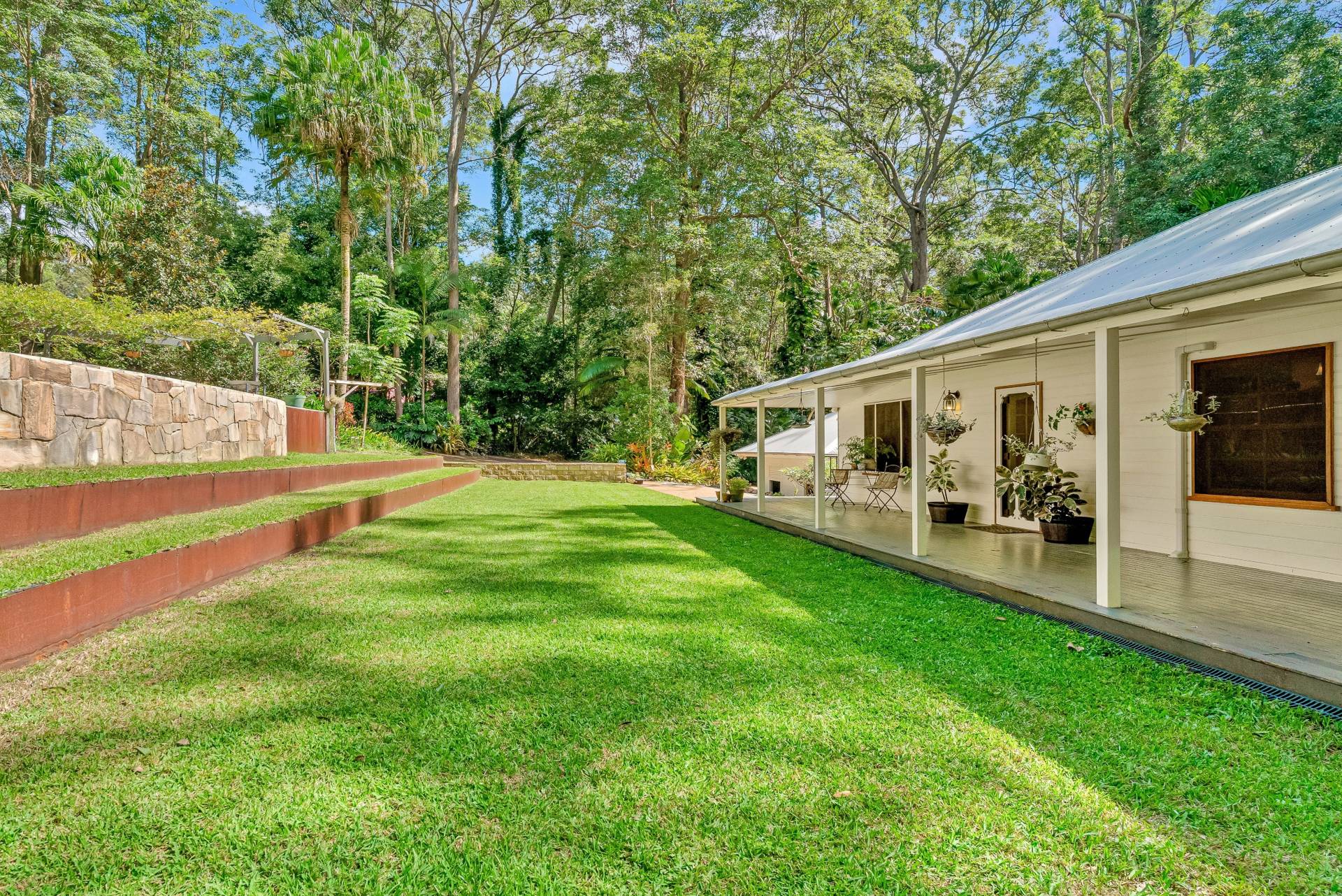 Outside, the gardens are a delightful mix of cleared lawns, natural bush and fruit trees including mandarin, orange, lemon, lime, mulberry, pineapple, blueberry and pomegranate. There's room for footy, trampolines and a reasonable cricket pitch here!