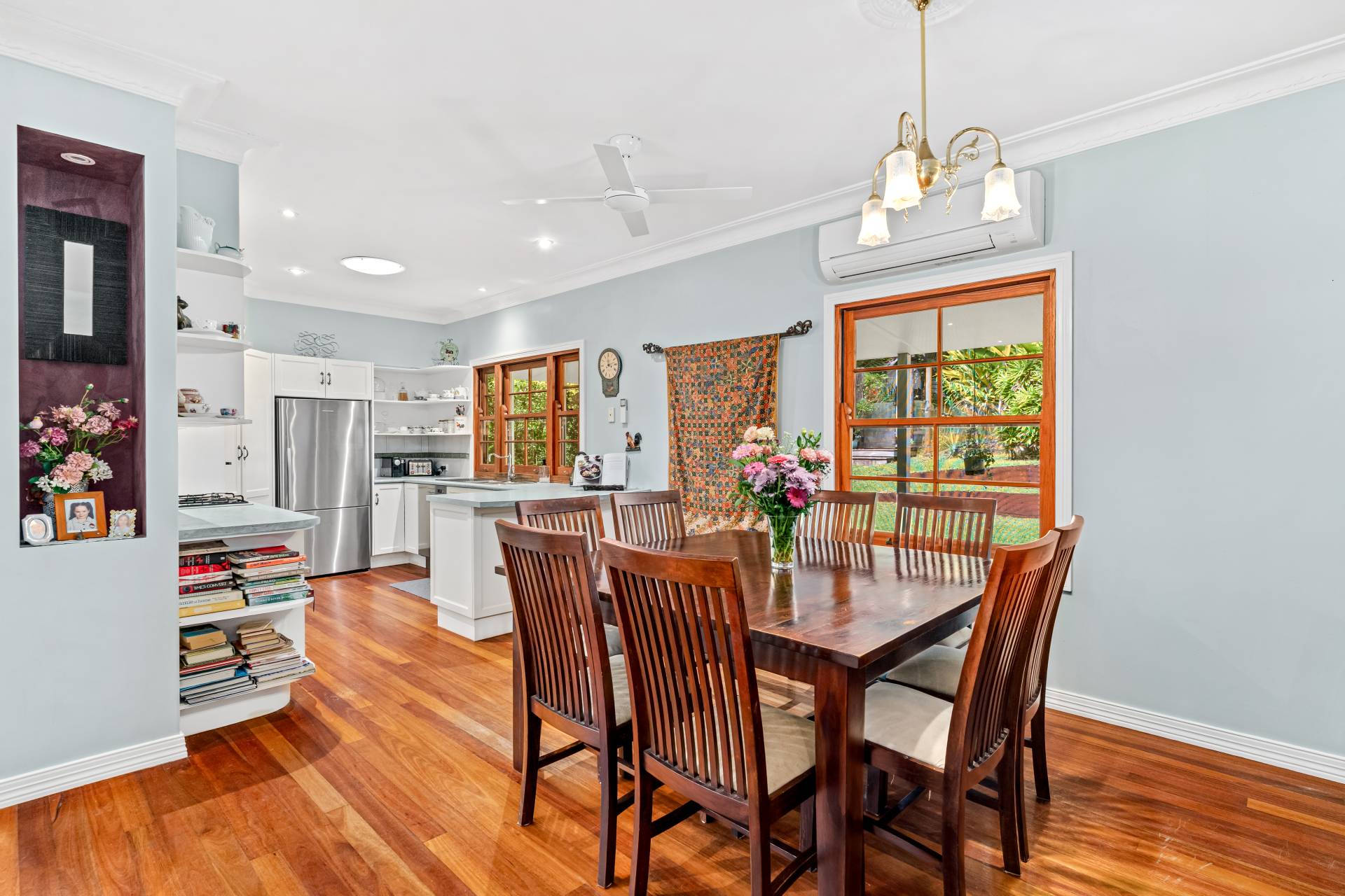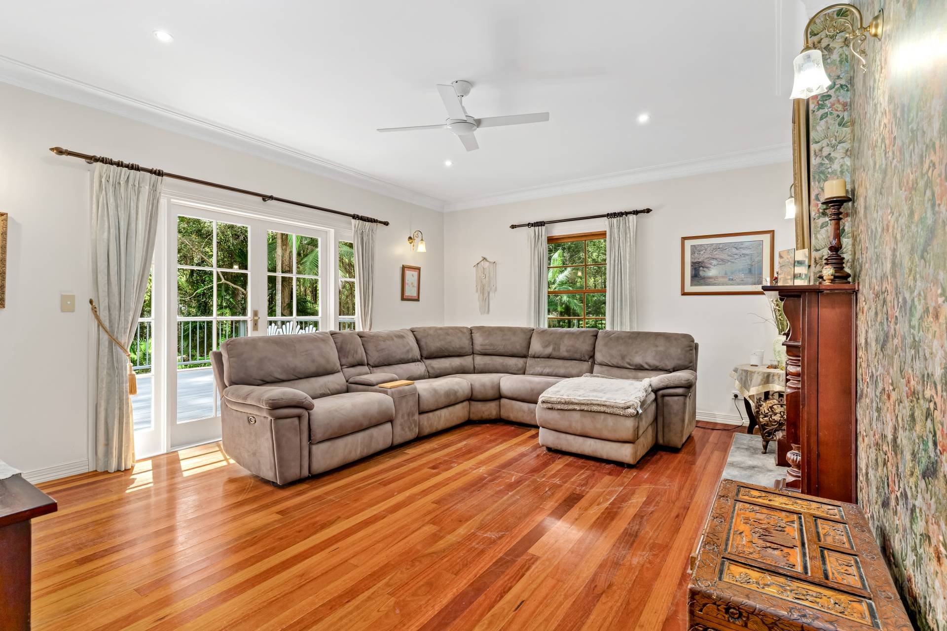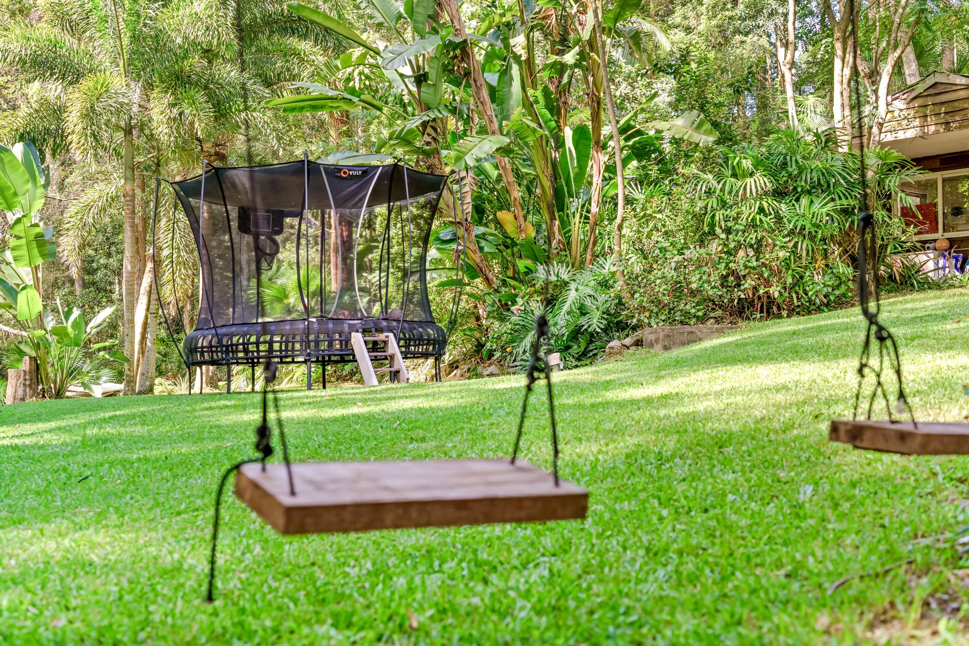 Outside, the gardens are a delightful mix of cleared lawns, natural bush and fruit trees including mandarin, orange, lemon, lime, mulberry, pineapple, blueberry and pomegranate. There's room for footy, trampolines and a reasonable cricket pitch here!