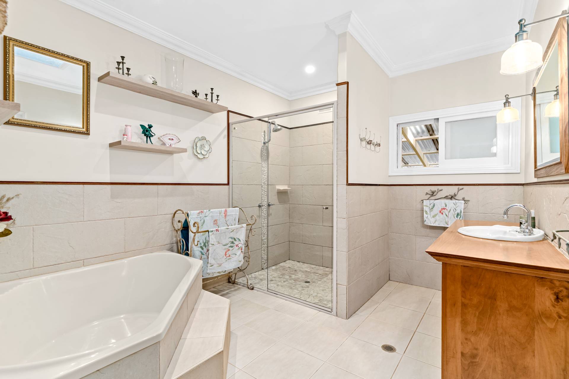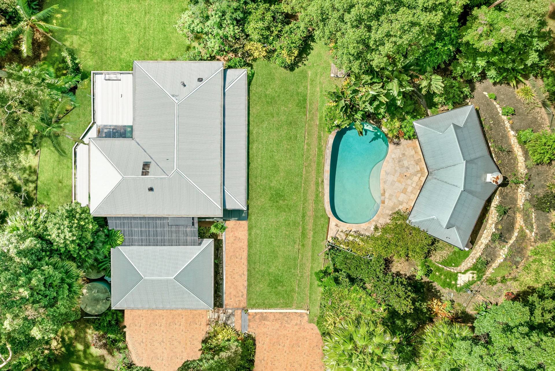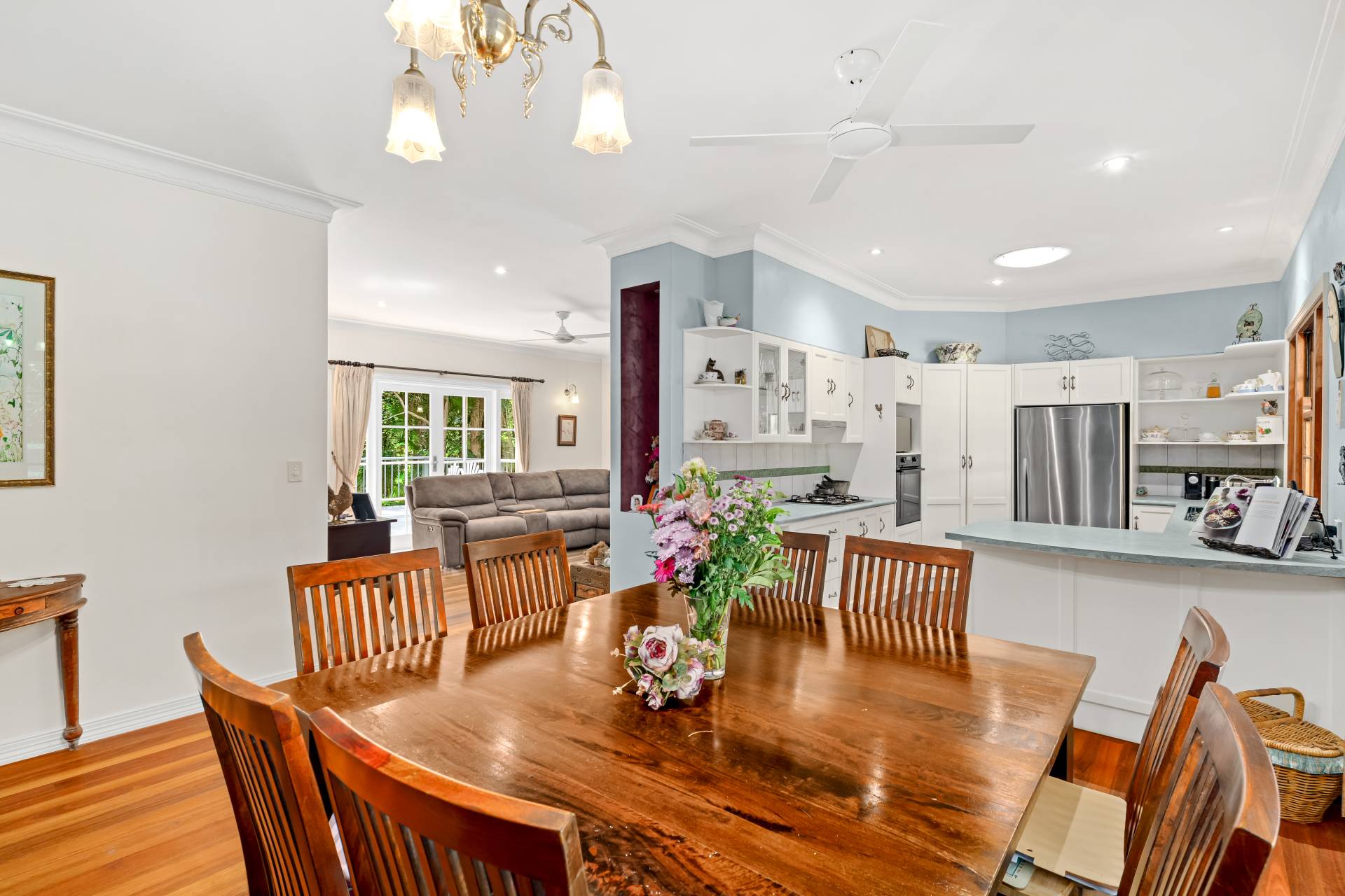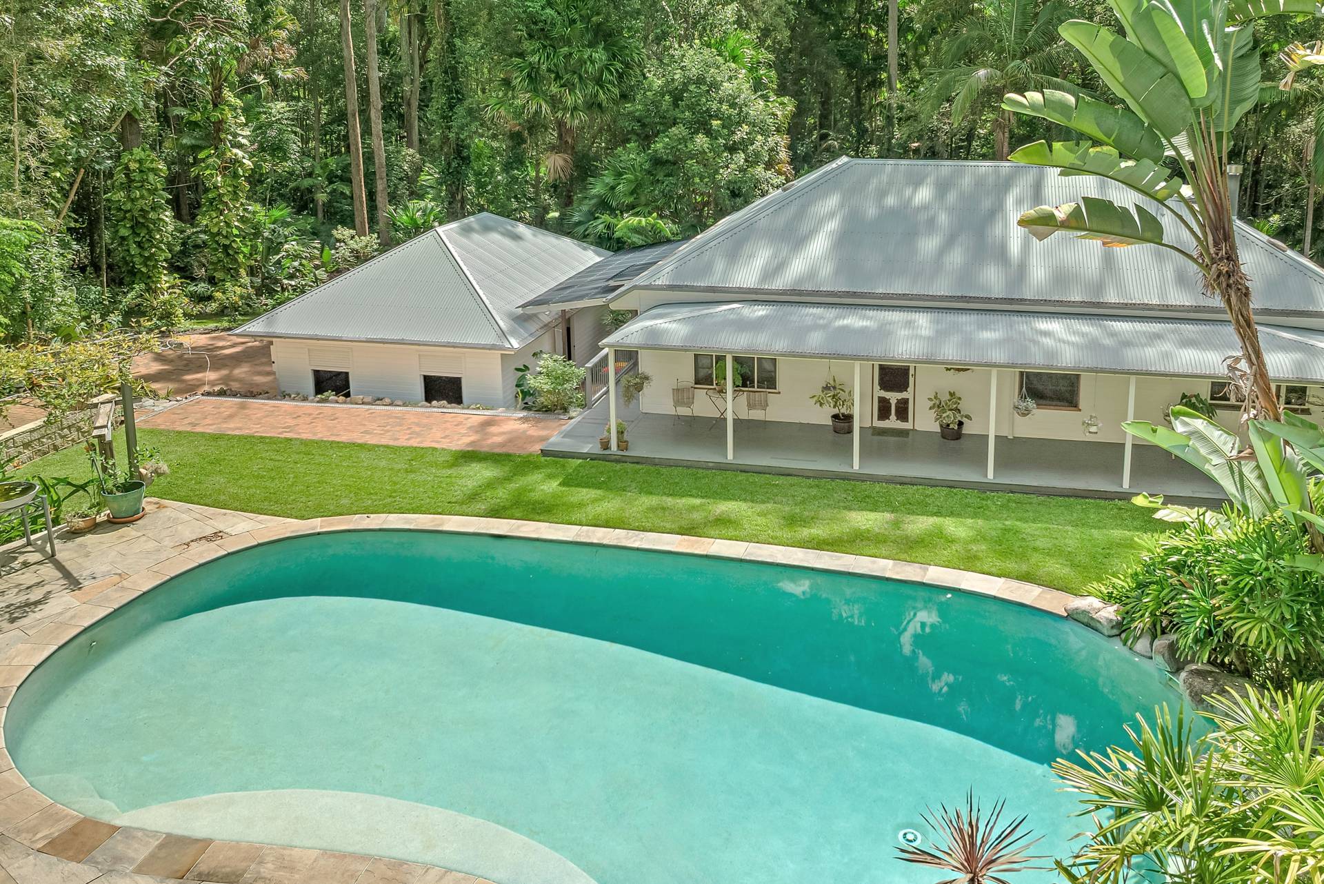 Outside, the gardens are a delightful mix of cleared lawns, natural bush and fruit trees including mandarin, orange, lemon, lime, mulberry, pineapple, blueberry and pomegranate. There's room for footy, trampolines and a reasonable cricket pitch here!