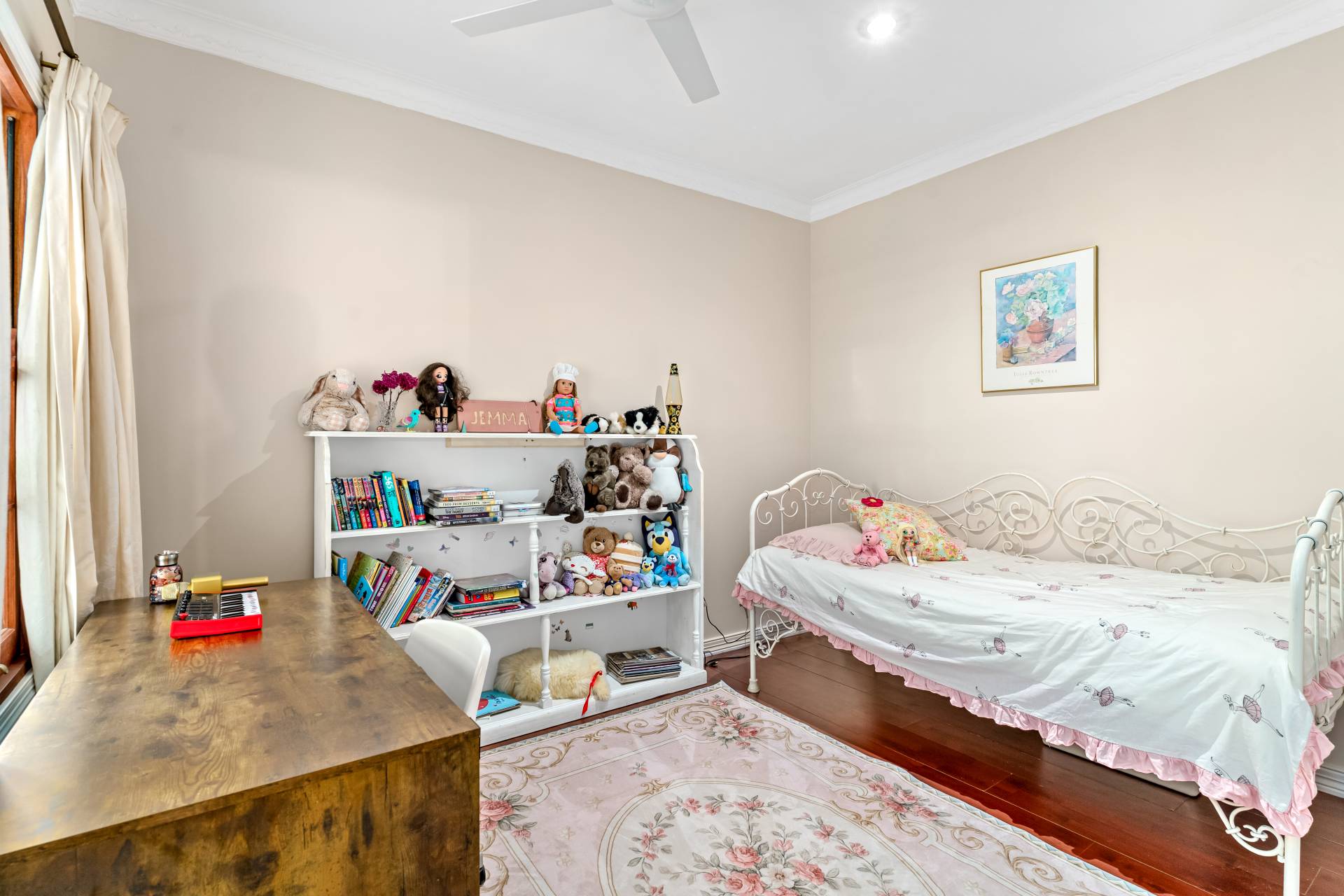 Set back from the street along a substantial paved driveway, its country cottage appeal translates into high ceilings, spotted gum timber floors and sash windows within a main house styled to embrace an enduring charm.