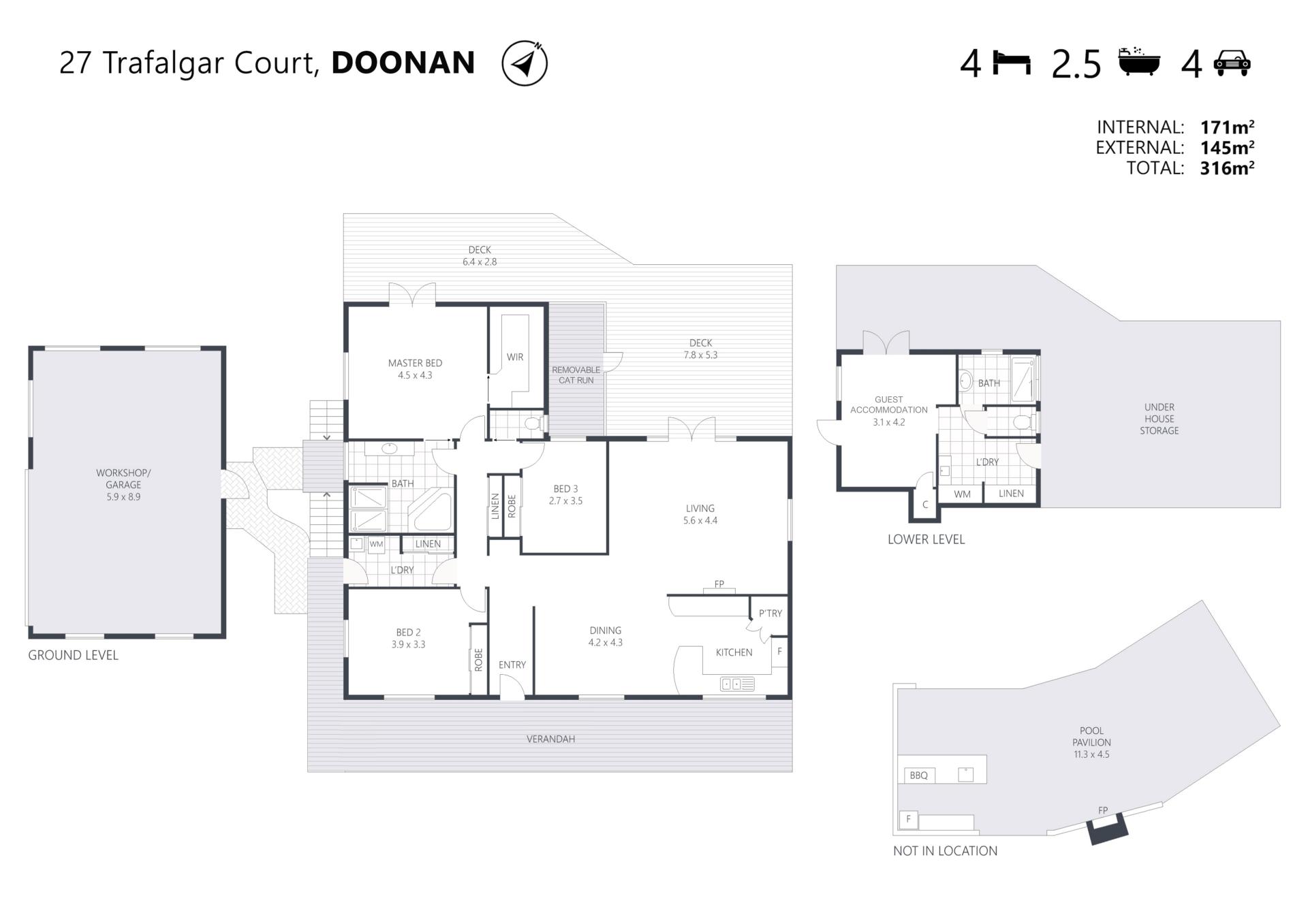 27 Trafalgar Court is situated just minutes from The Doonan family restaurant and Fruits of Noosa organic supermarket - a peaceful and private character home with the coast's best beaches, bush trails, schools and amenities all on its doorstep.