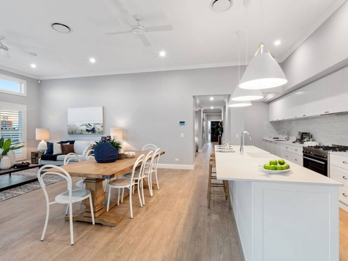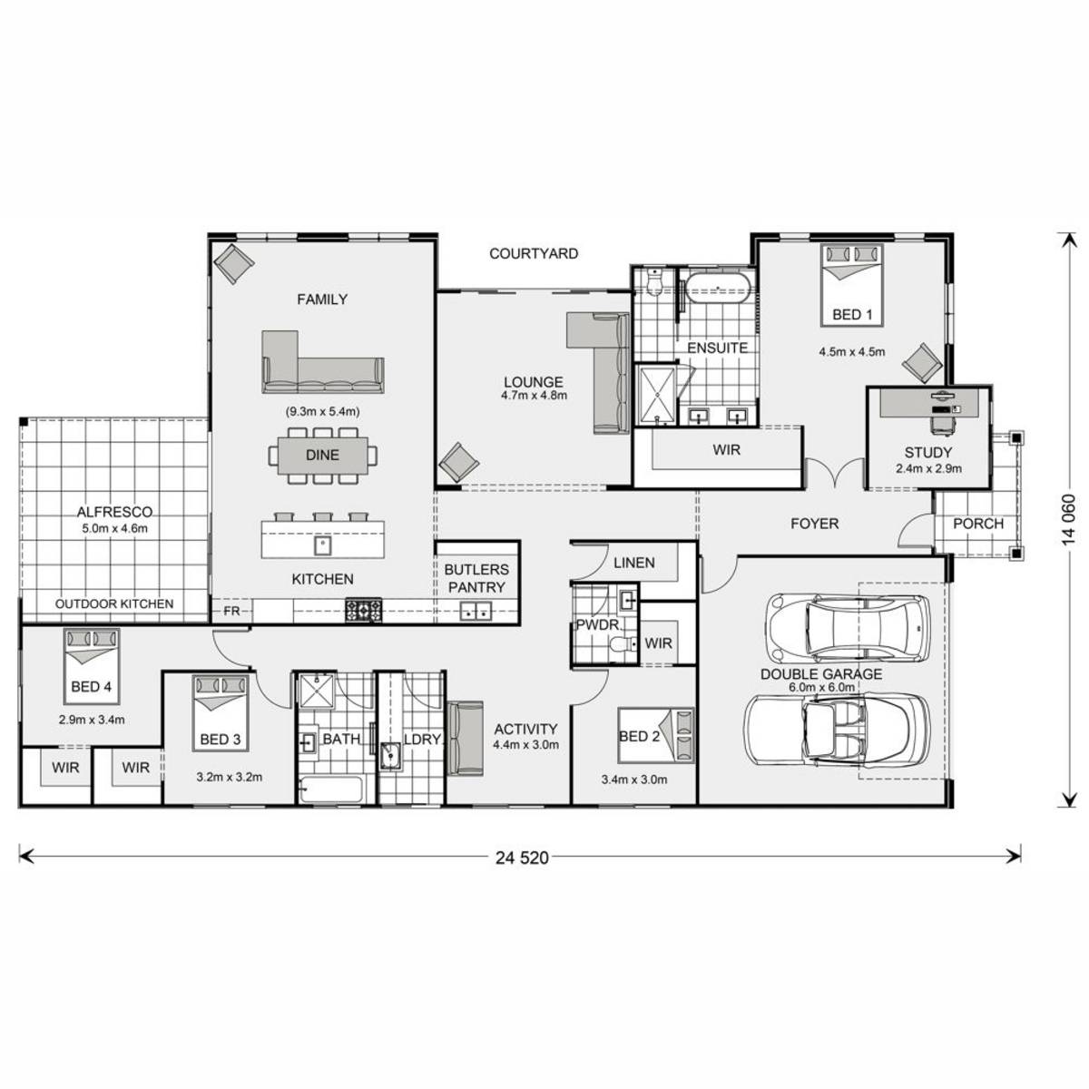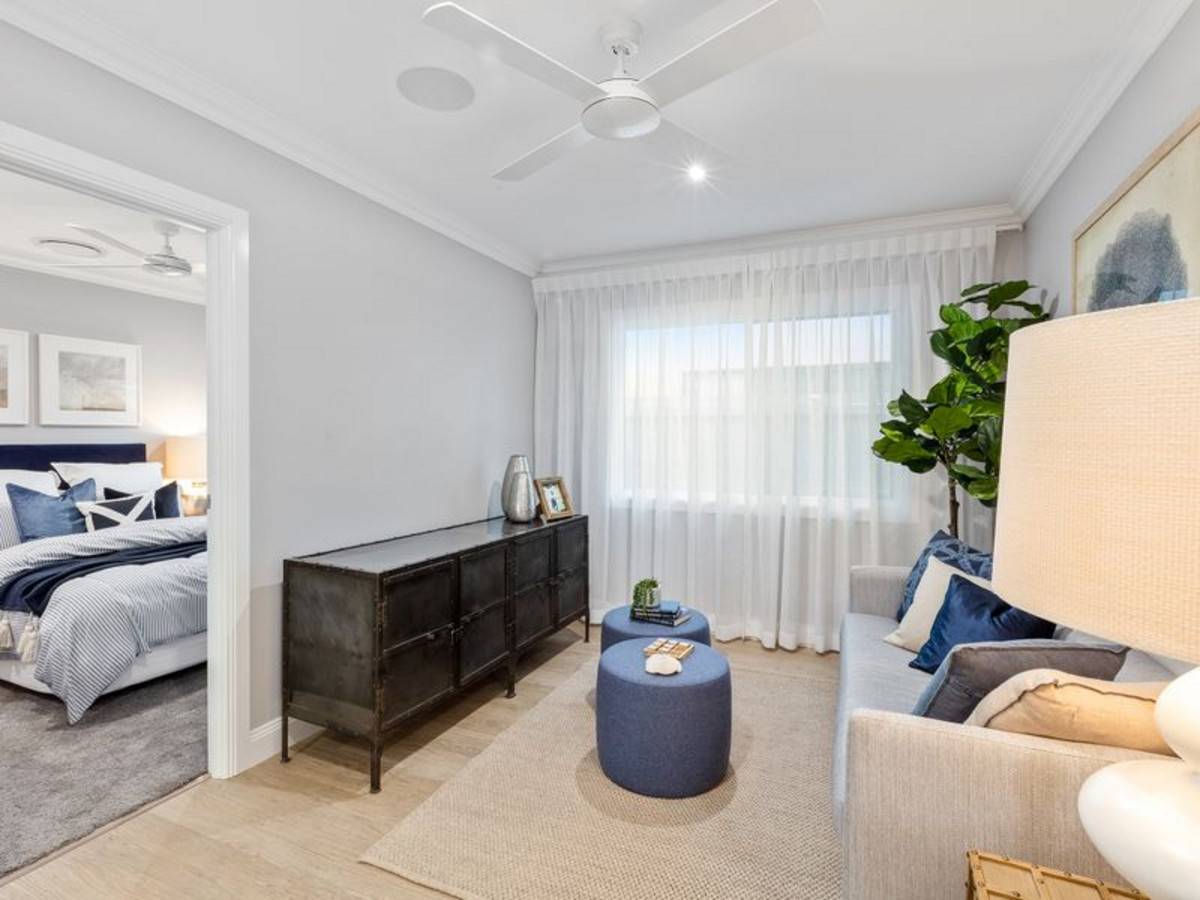 Entering into the foyer and study, wide hallways entice you through to the expansive main living space. The heart of this home boasts high ceilings with windows masterfully featured in the extra height capturing the light and emphasising the luxury of space. This main living space is masterfully arranged in an open-plan, comprising of kitchen, dining and family room. Sliding doors stack back to unfurl an extended grand alfresco overlooking the pool. The contemporary kitchen spares no luxury, complete with large island bench, modern appliances, bespoke finishes and butlers pantry. The separate lounge boasts access to the courtyard, built-in shelving and coffered ceiling that further adds a sense of sophistication and elegance.