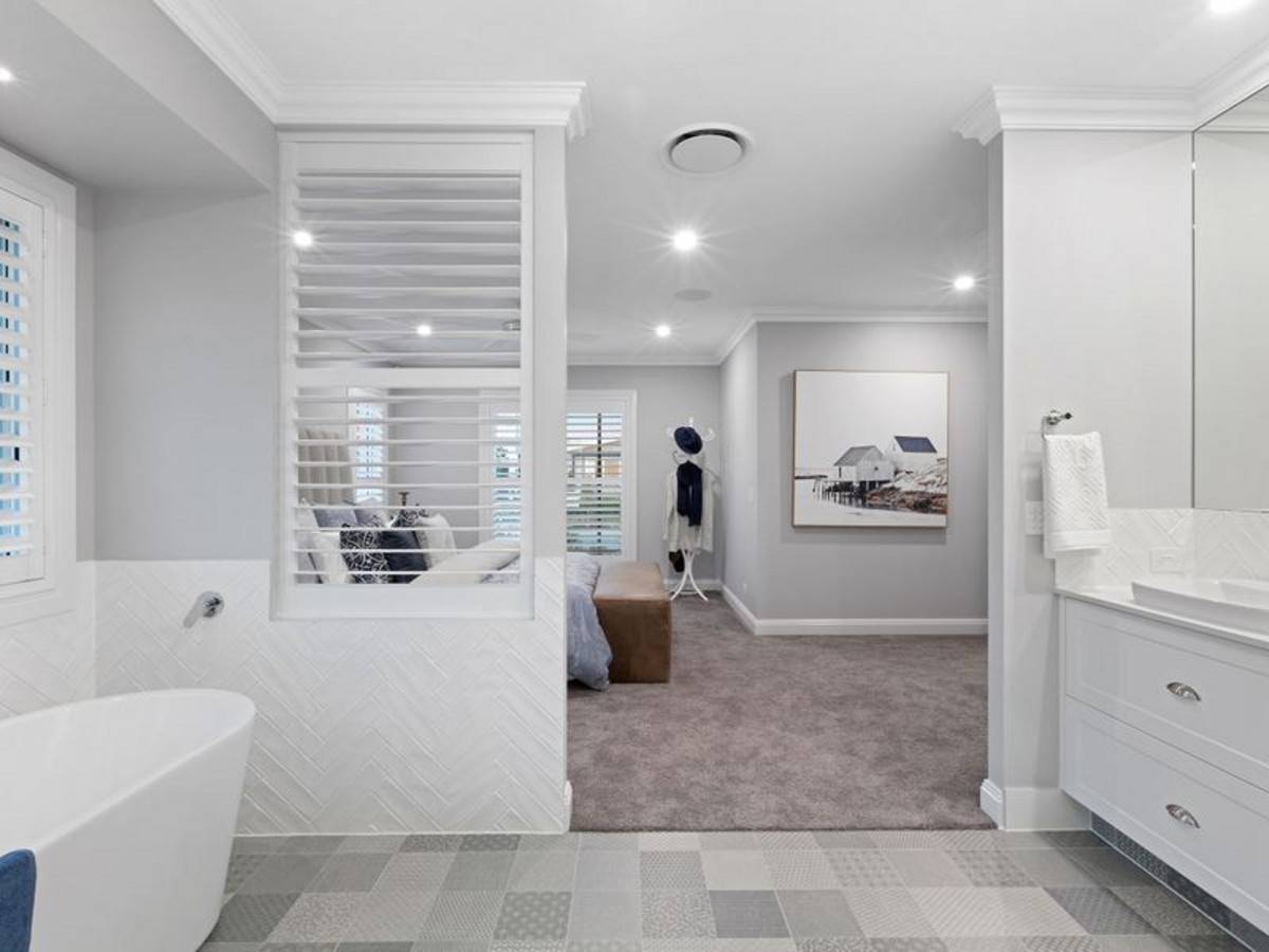 This master suite boasts every luxury. Accessed via beautiful double doors that open onto the generous space, the master is equipped with a large walk-in wardrobe and ensuite. The ensuite prides a double vanity and glamorous freestanding bath tub.