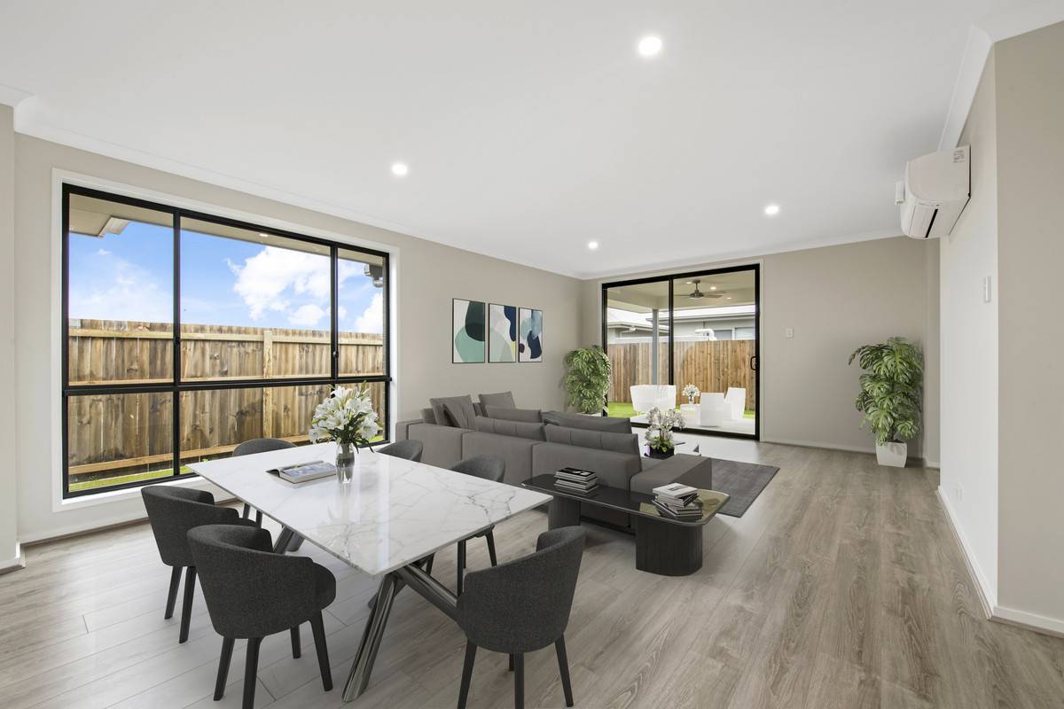 This fantastic property is brand new and finished to perfection. Boasting a flowing open-plan layout, this immaculate Plantation built property is ready for its new owner. Arranged across two levels, this exceptional home is perfect for the growing family, with four generously sized bedrooms and a retreat for ample space and comfort. The open-plan living, kitchen and dining area flows out onto the alfresco entertaining space. The entertainers kitchen is well-equipped with wide, reconstituted stone benchtops, walk-in pantry and highly-regarded 'Smeg' appliances including free-standing oven, rangehood and dishwasher. The master suite is privately positioned at the rear of the property boasting double vanity ensuite and walk-in wardrobe. The further three bedrooms feature built-in wardrobes and are also of generous proportions. This beautiful home combines style and functionality with wood-effect flooring, high ceilings throughout as well as a grand facade.