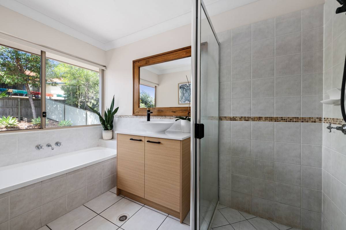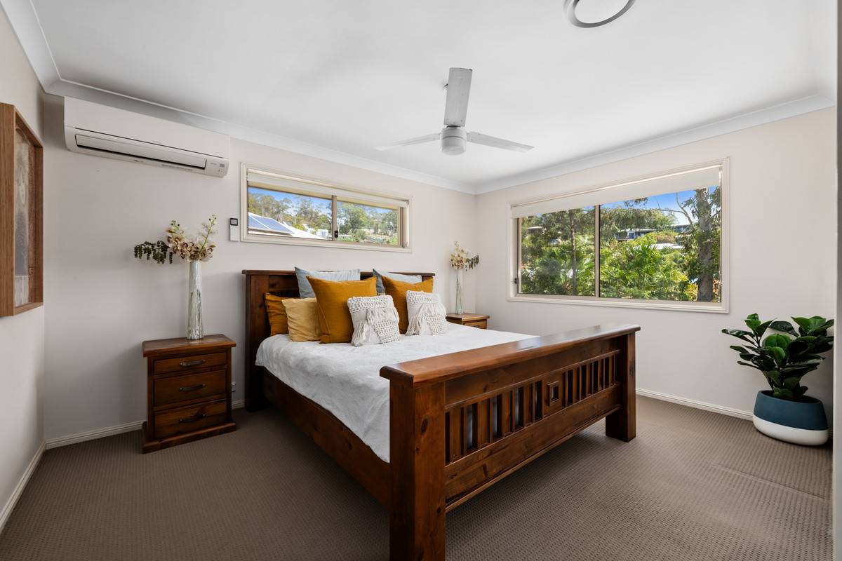 Four generously sized bedrooms are located on the upper level, accessed by a stunning wooden staircase. All bedrooms benefit from built in robes, ceiling fans and leafy views of the quiet family neighbourhood. The master suite also features a spacious en-suite. Large windows throughout invite natural light and airflow through this stunning home.
