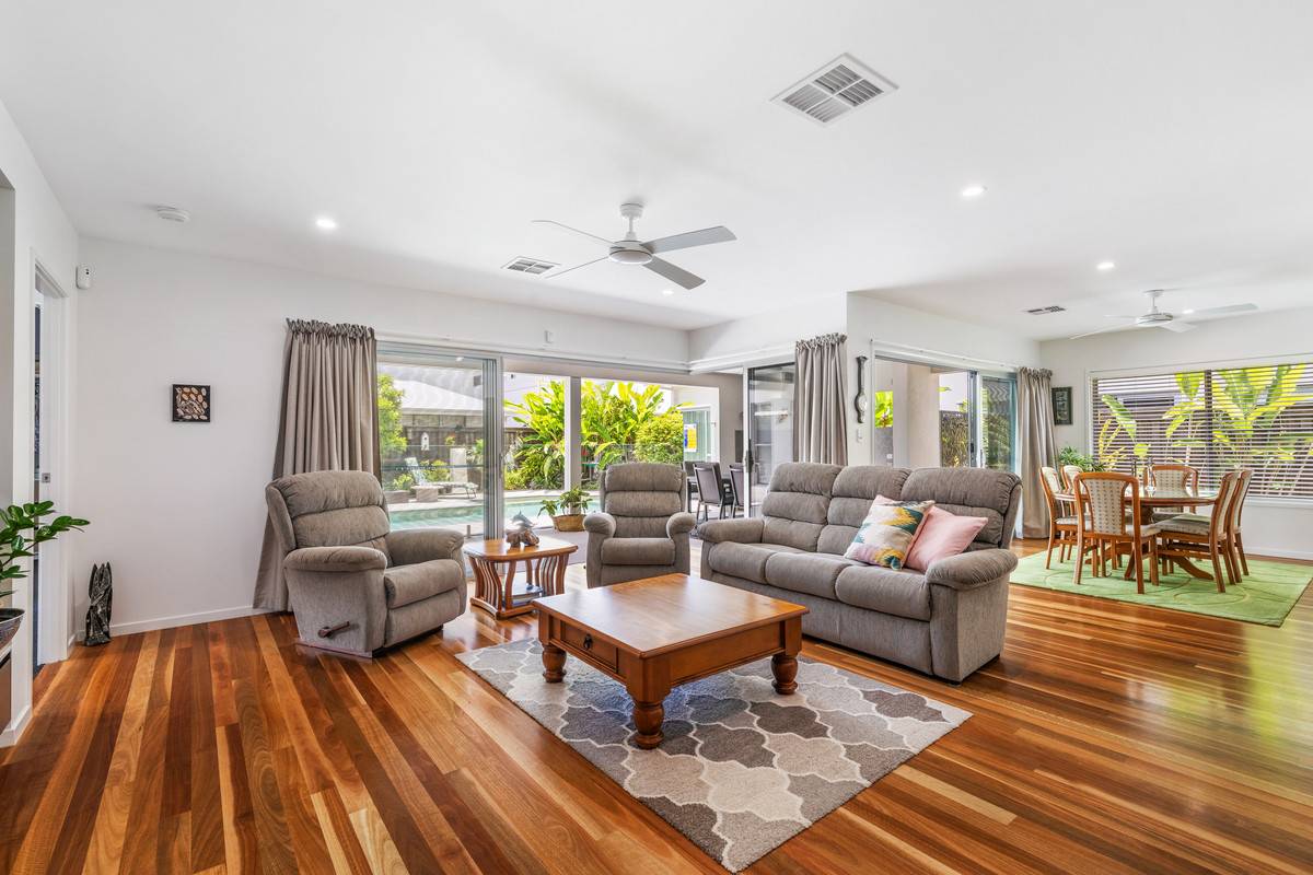 Grand in size, stature and style, this magnificent property was previously a Morcraft display home. Spanning an impressive 282 sqm accommodation over a 576 sqm block, this remarkable property offers the very best of the Sunshine Coast lifestyle with space for the whole family. With immaculate presentation and welcoming ambience throughout, be instantly charmed by the high ceilings, wide hallways, and seasoned hardwood flooring.